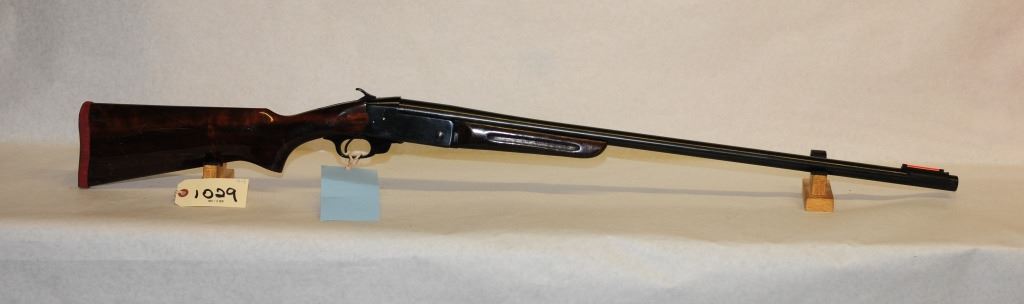 Non Restricted, single shot 12 ga x 2 3/4 in, 30 barrel with full fixed choke, S/N 21785, wood has marks and scratches, bluing is fair, bore is excellent.
