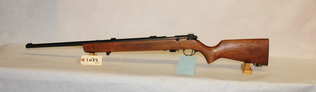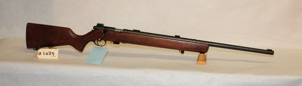 Non Restricted, bolt action 5 shot, 22LR 26 inch barrel, S/N 257, stock has scratches and dents, bluing has pitting, bore is good, safety is not functioning properly, missing front an rear sights.