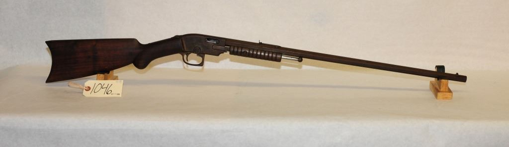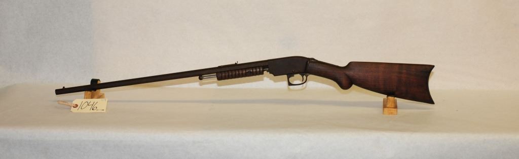 Non-restricted, pump action, 22 lr, 24" barrel, SN none, wood is good, bluing is brown, bore is poor with pitting and weak rifling, has no mag.