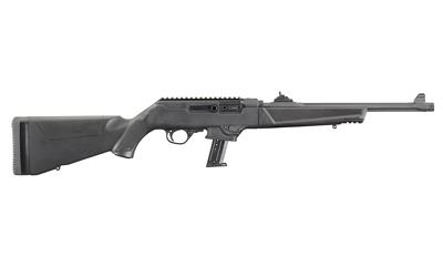 Ruger, Pistol Caliber Carbine, Semi-automatic, Rifle, 9MM, 16.12" Heavy Barrel, Fluted and Threaded, Black Finish, Synthetic Stock, 17 Round, Takedown, Adjustable Ghost Ring Rear Sight and Protected Blade Front Sight