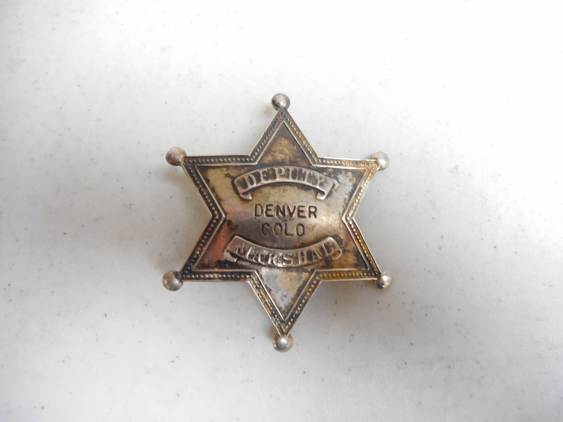 U.S. DEPUTY MARSHAL STAR BADGE, SIX POINT STAR - DENVER COLORADO WITH PIN BACK