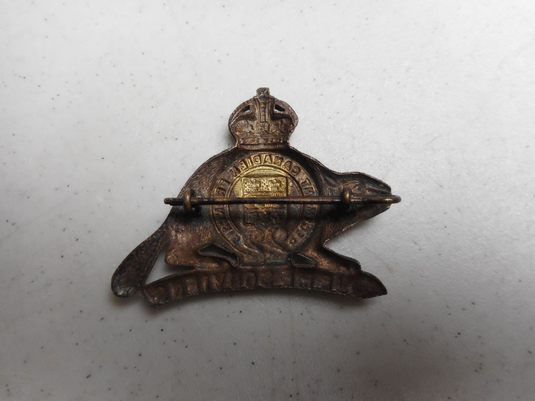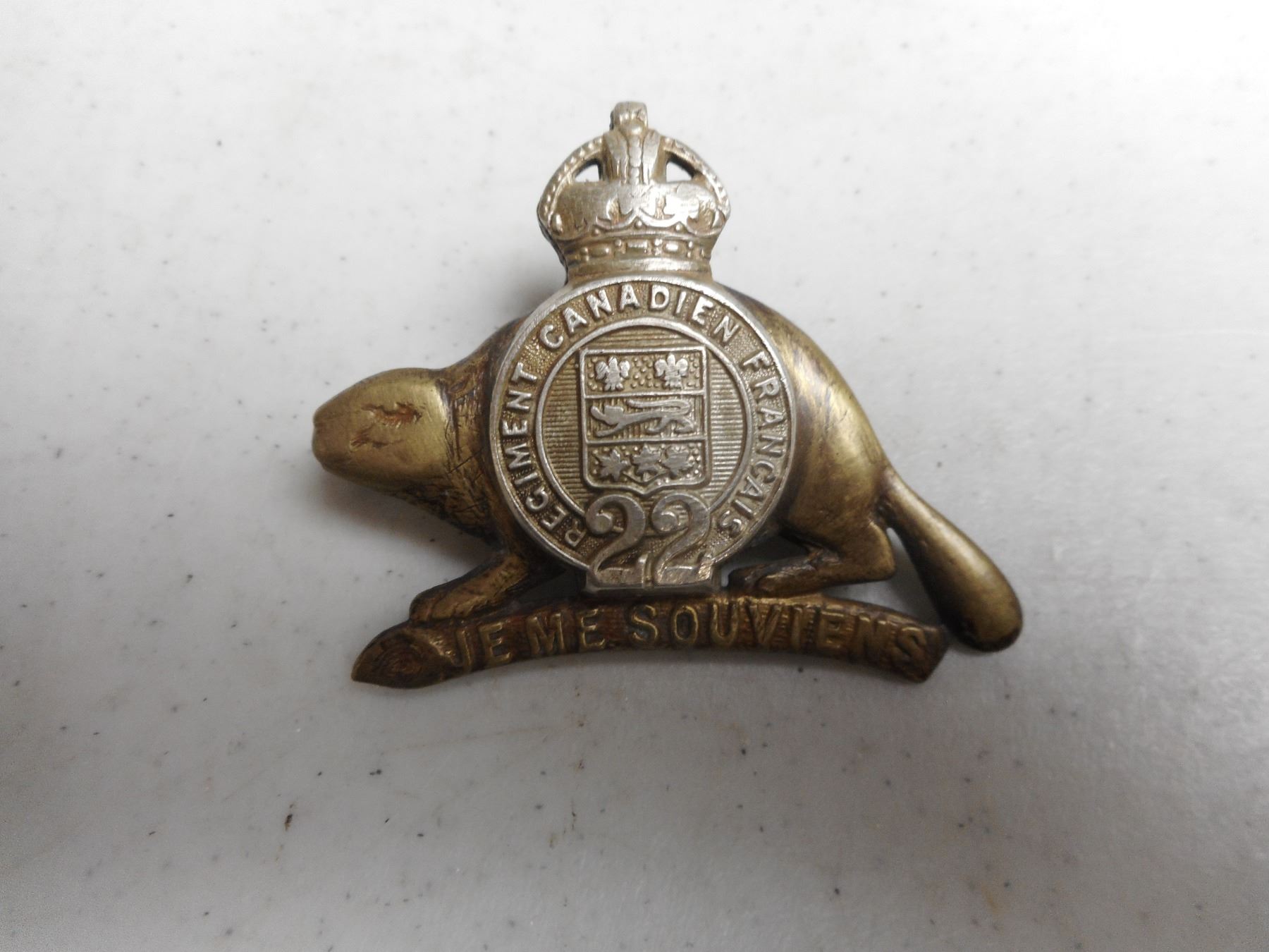 CANADIAN WWII ERA ROYAL 22ND REGIMENT CAP BADGE , "VAN DOO'S" LUG BACK WITH PIN