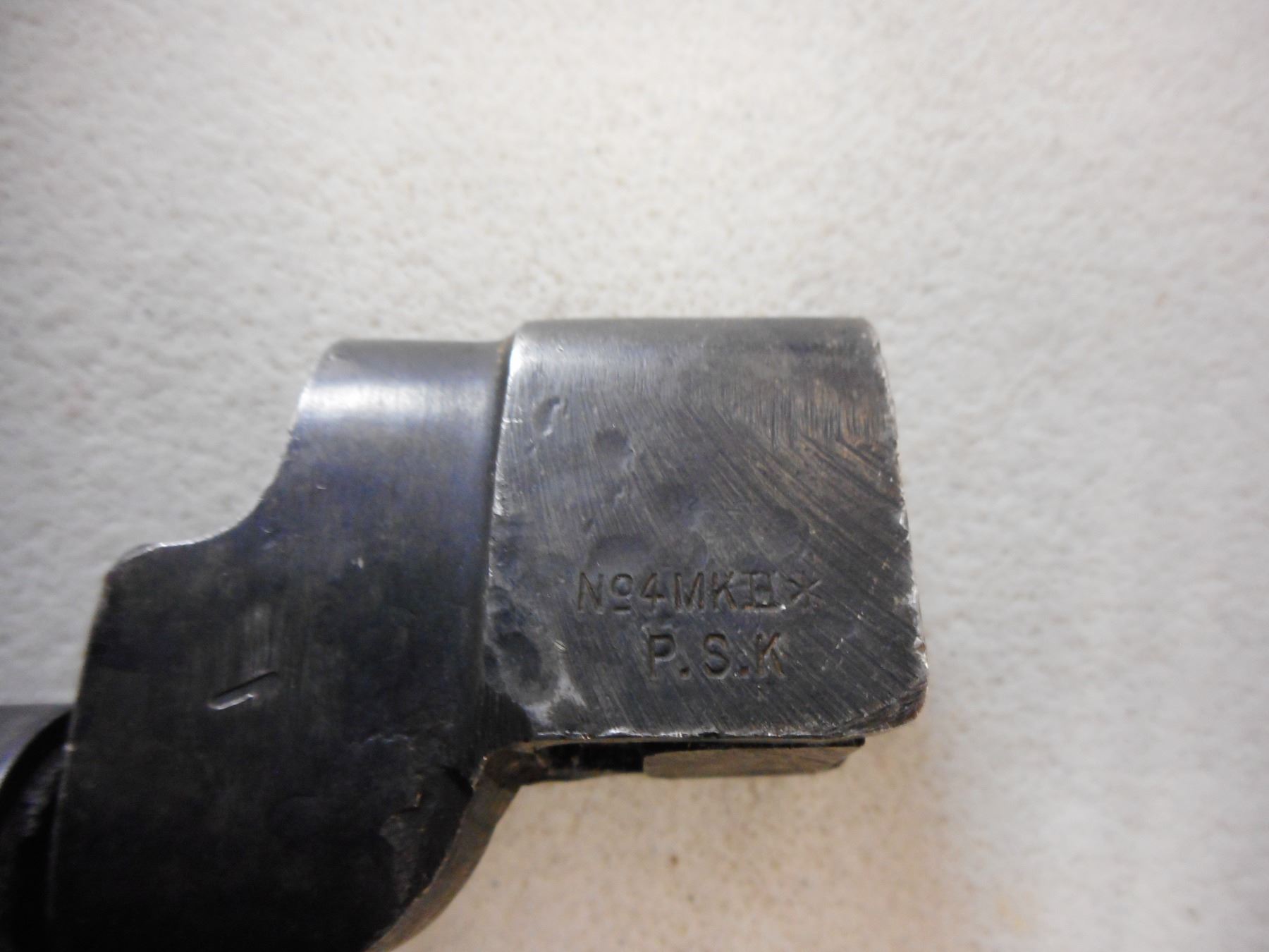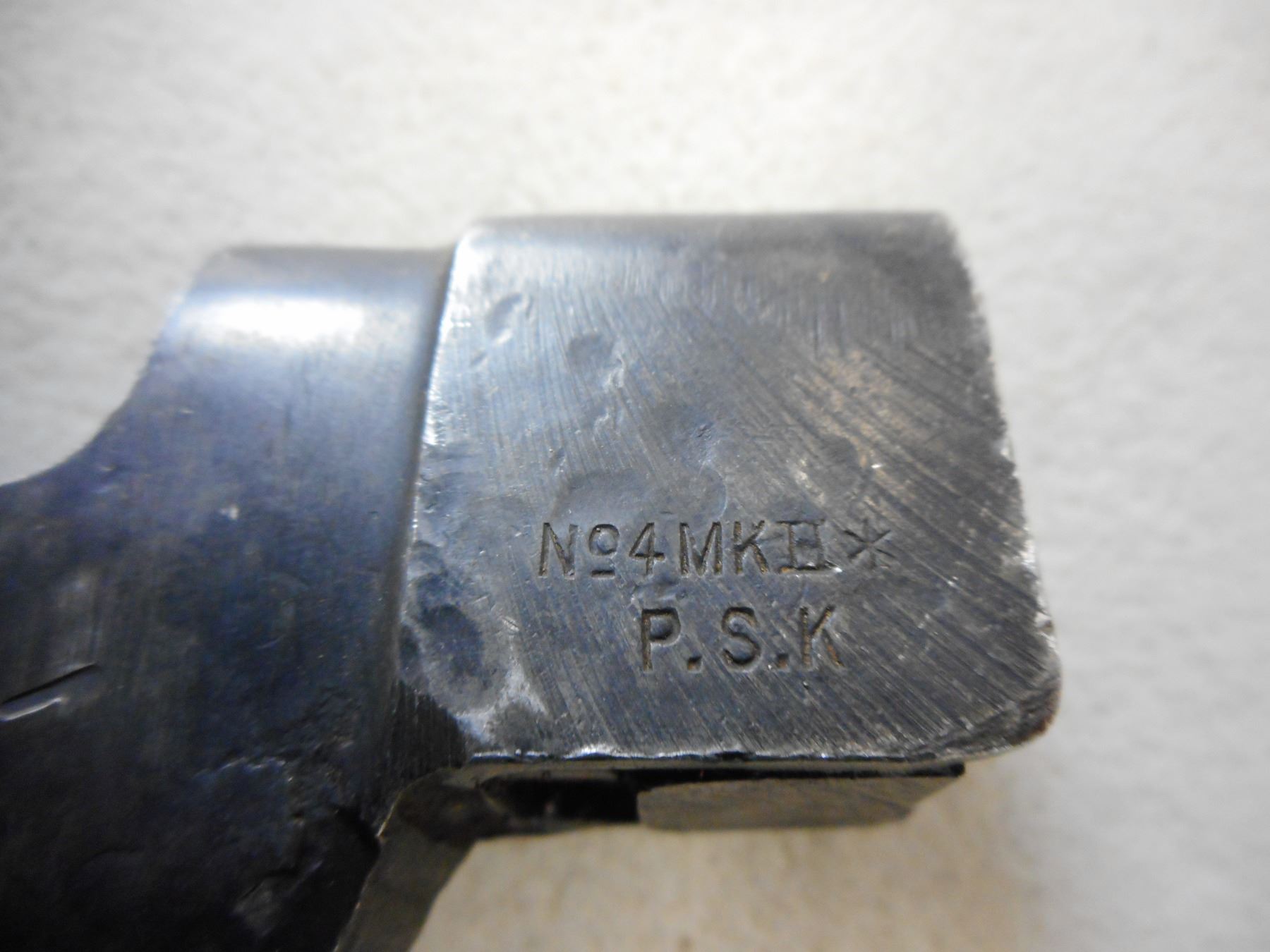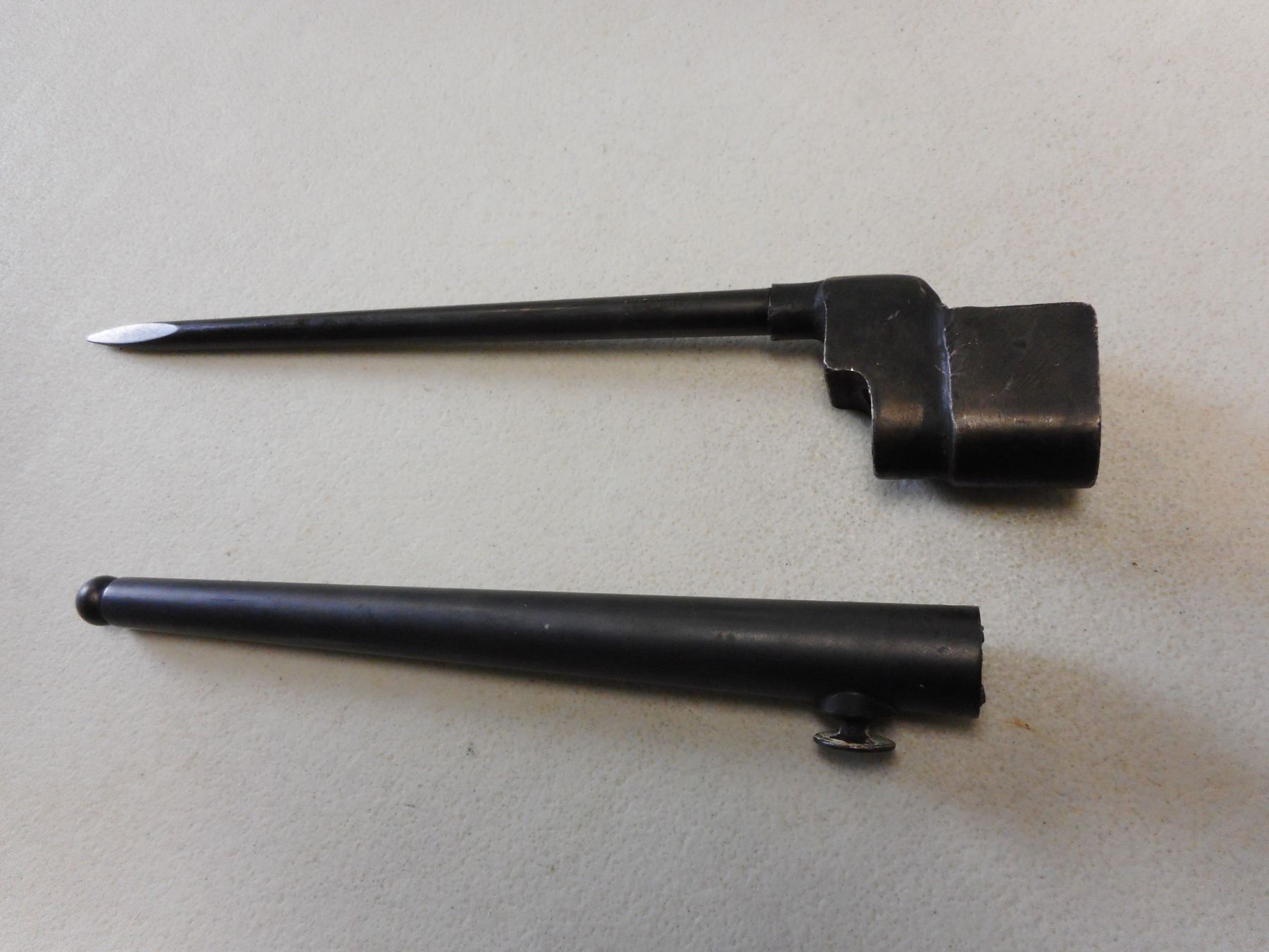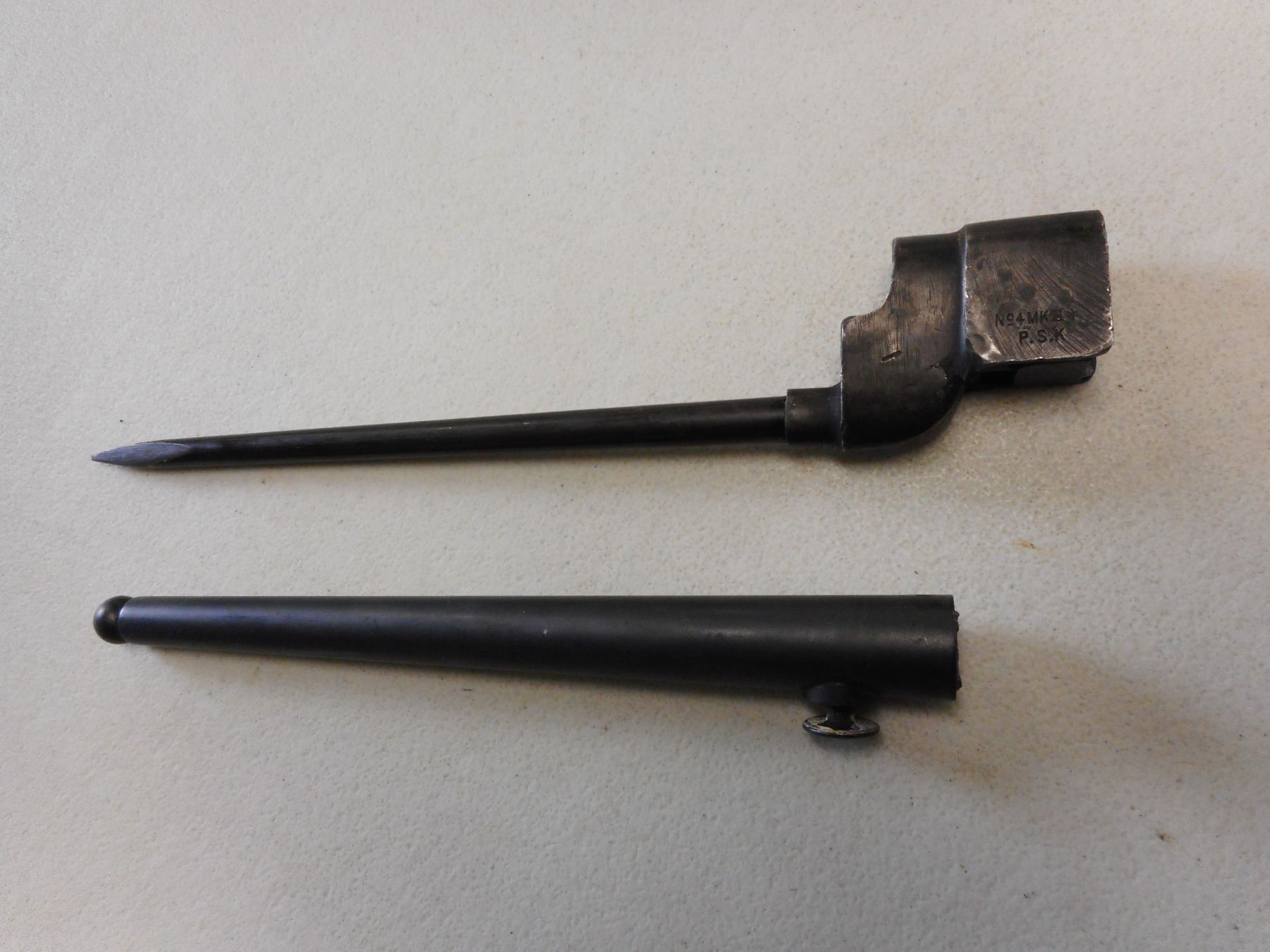 ENFIELD SPIKE BAYONET WITH SCABBARD, NO4 MKII P.S.K., SCABBARD HAS BROKEN THROAT