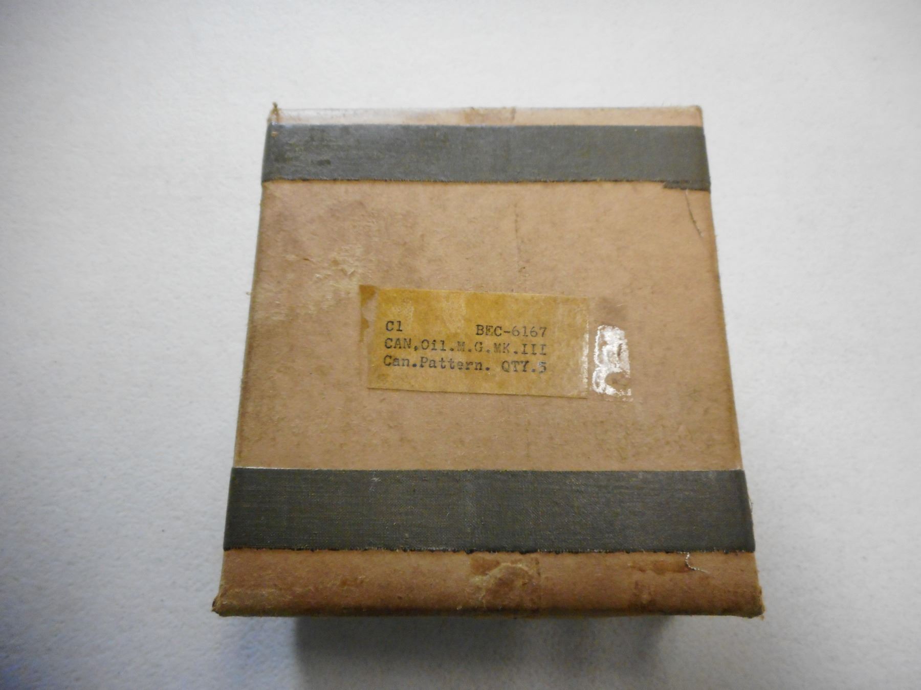 CANADIAN M.G. MK II OILERS IN BOX, BOX LABELED CAN. OIL. M.G. MKIII CAN. PATTERN. QTY. 5, FOR BREN GUN