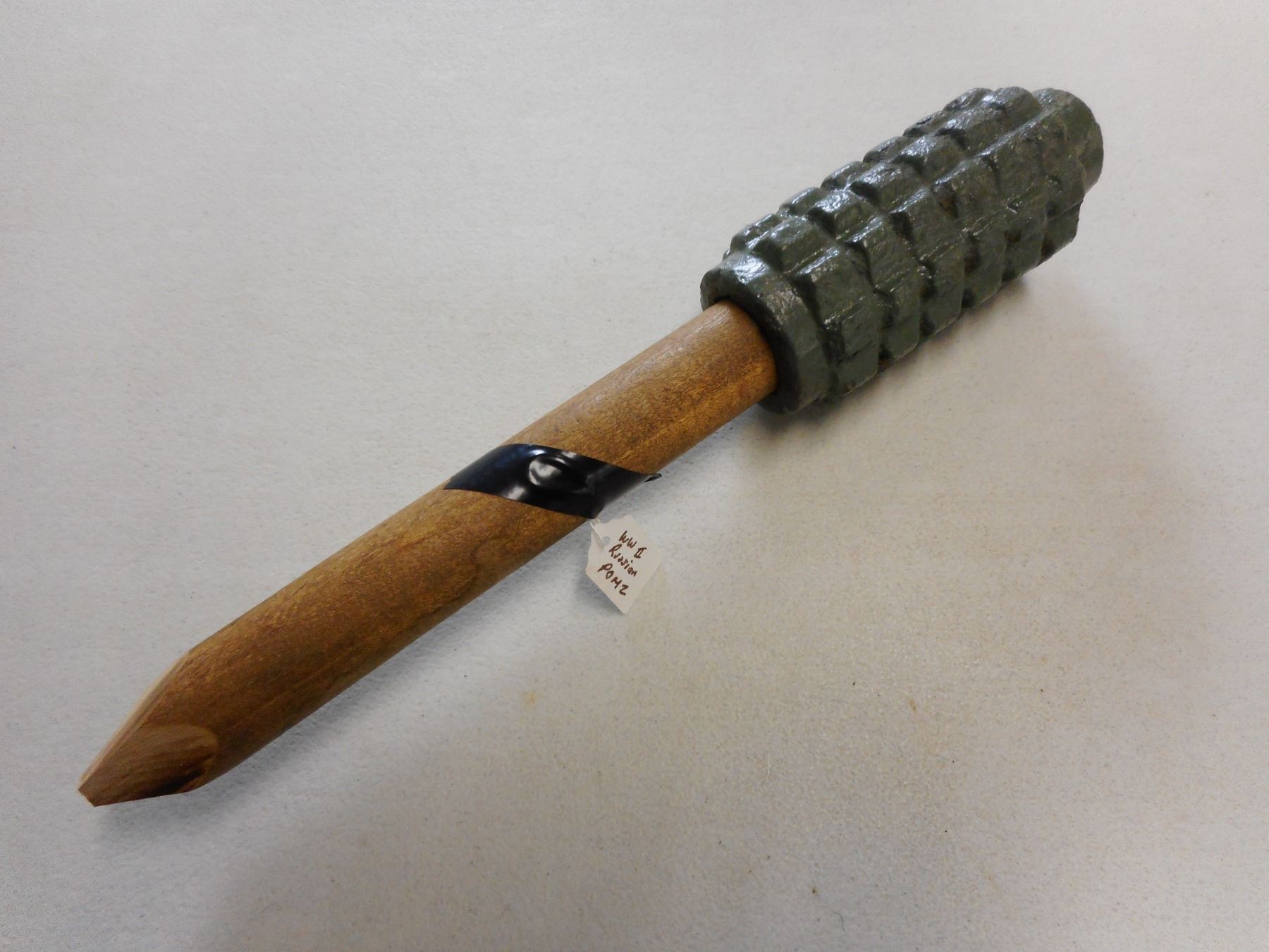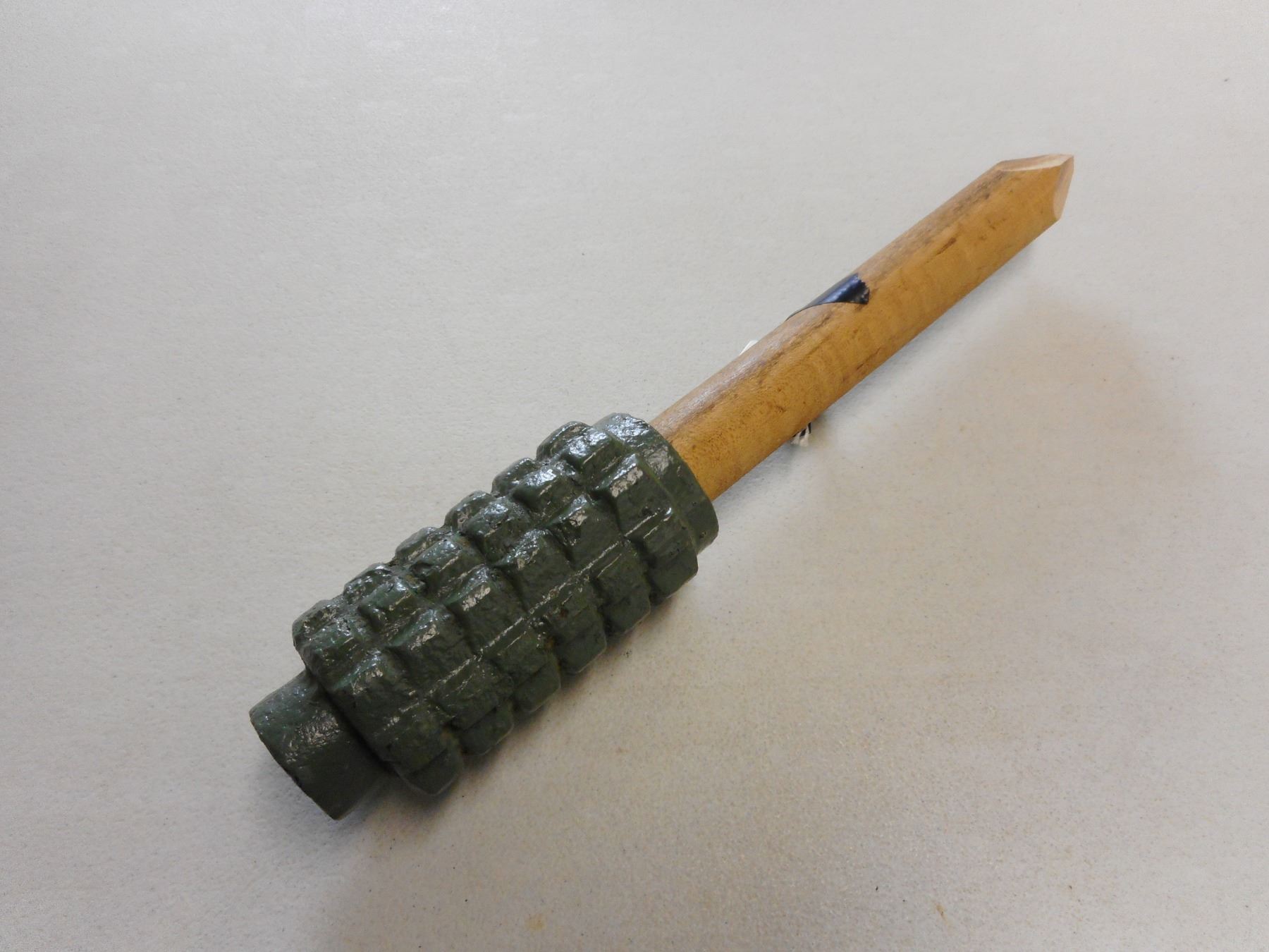 INERT WWII RUSSIAN POMZ/FRAG GRENADE, WITH WOODEN STAKE