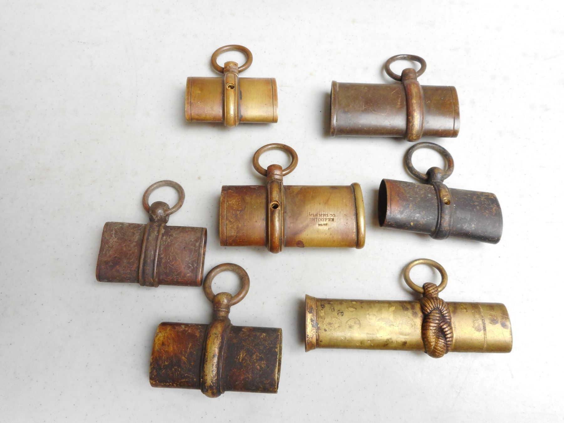 CIVIL WAR ERA BRASS RING ATTACHMENTS FOR U.S. SWORDS, INCLUDES AMES, LOT OF 7