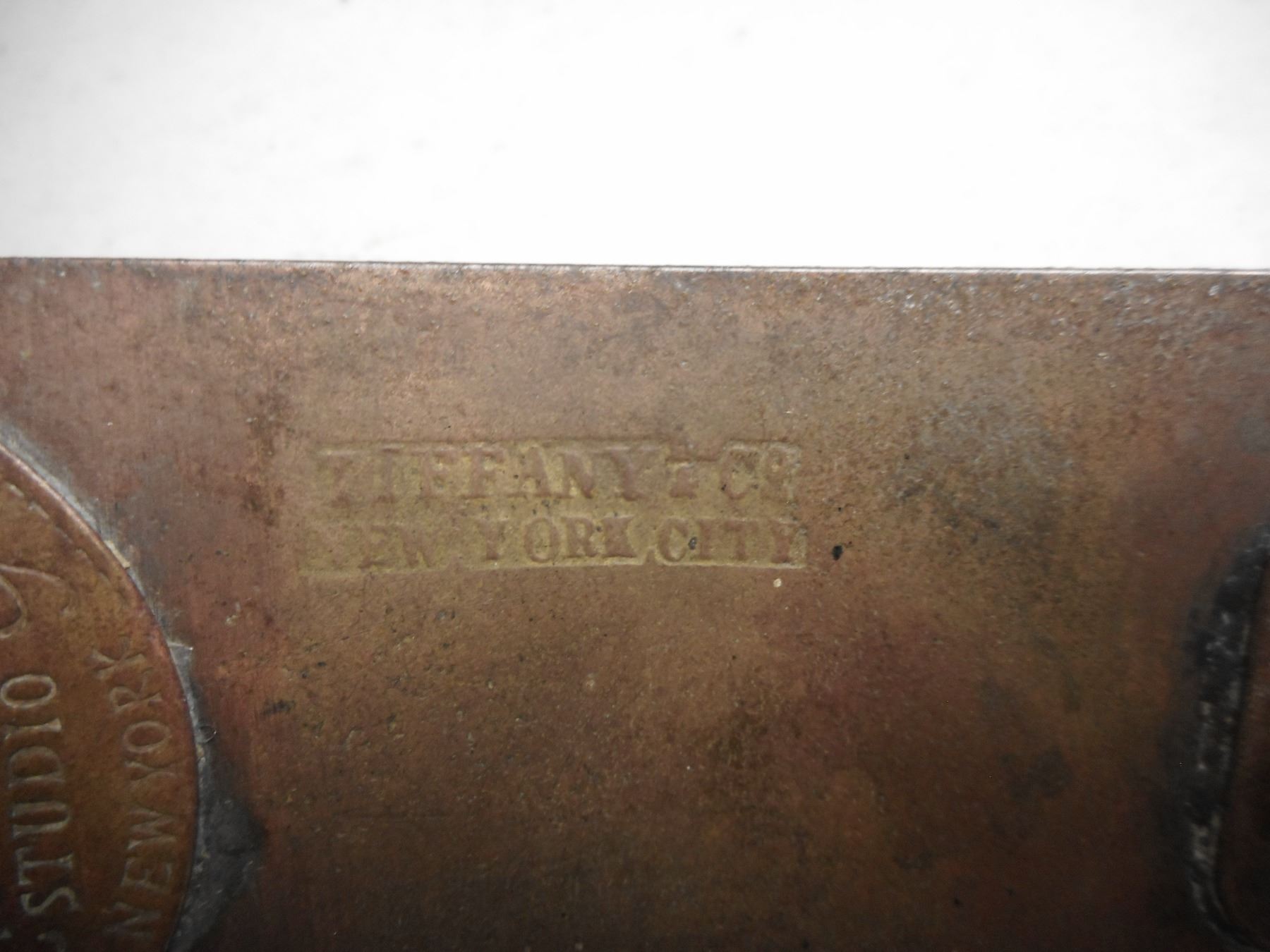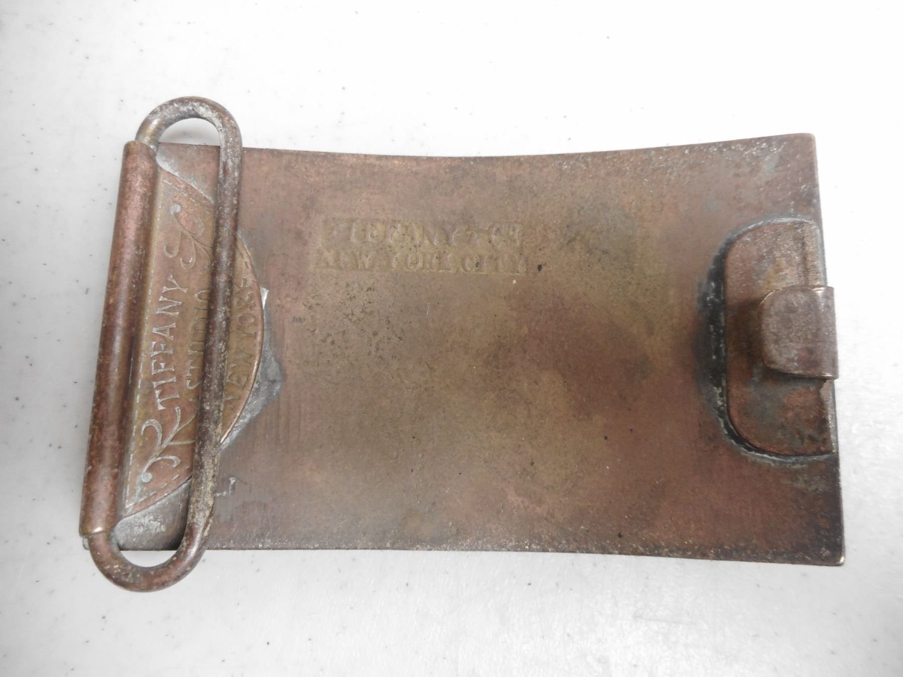BRASS/BRONZE COLT REVOLVERS BELT BUCKLE, REVERSE: TIFFANY STUDIO NEW YORK, 4" LENGTH