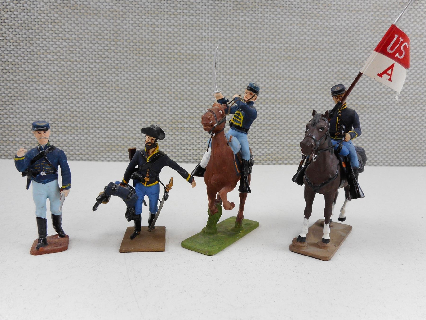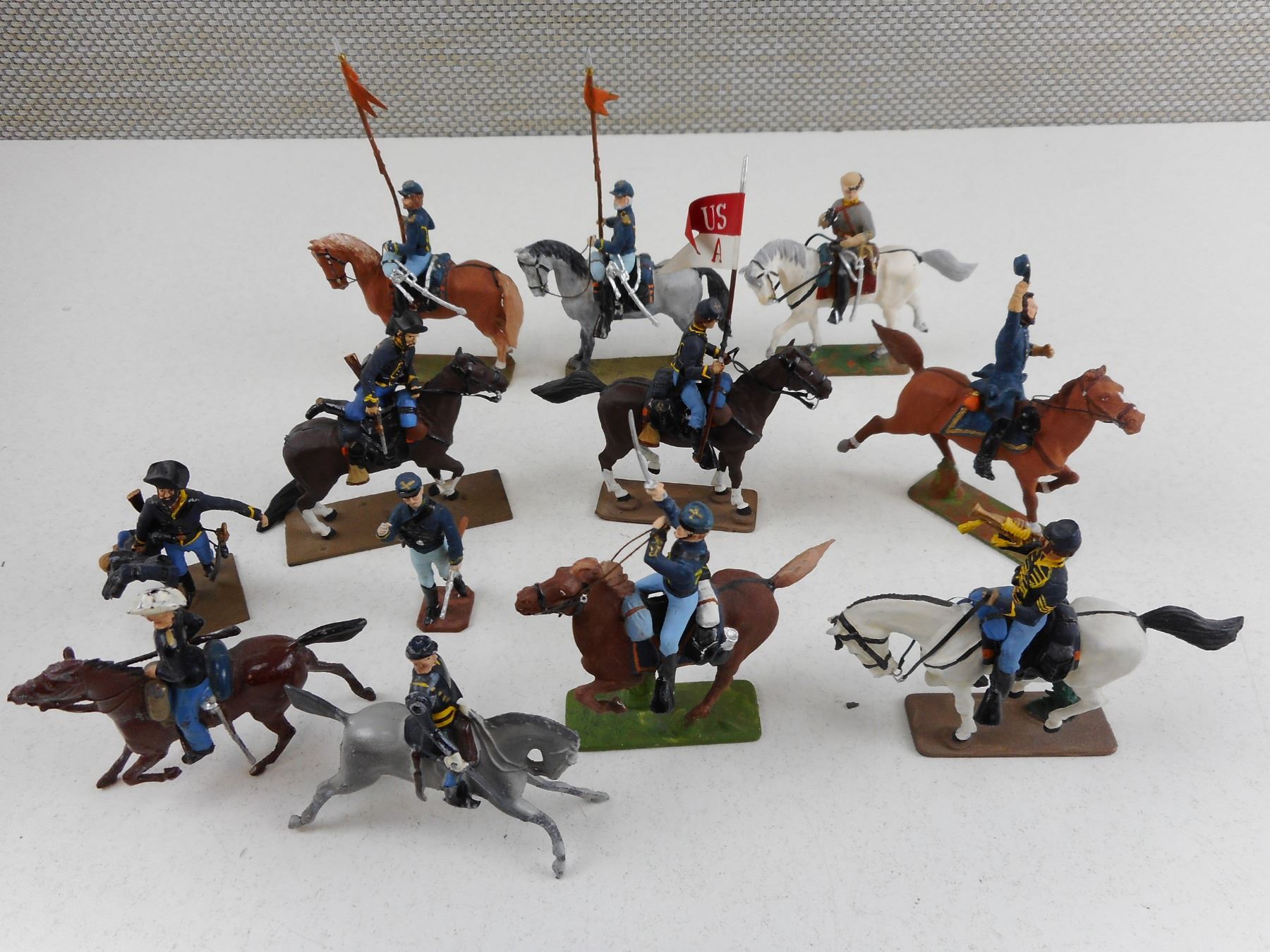 ASSORTED MILITARY CALVARY MINITURES, ASSORTED MOUNTED & UNMOUNTED SOLDIERS IN THE CIVIL WAR ERA, NOTICE SOME ARE VERY FRAGILE & MAY BE DAMAGED