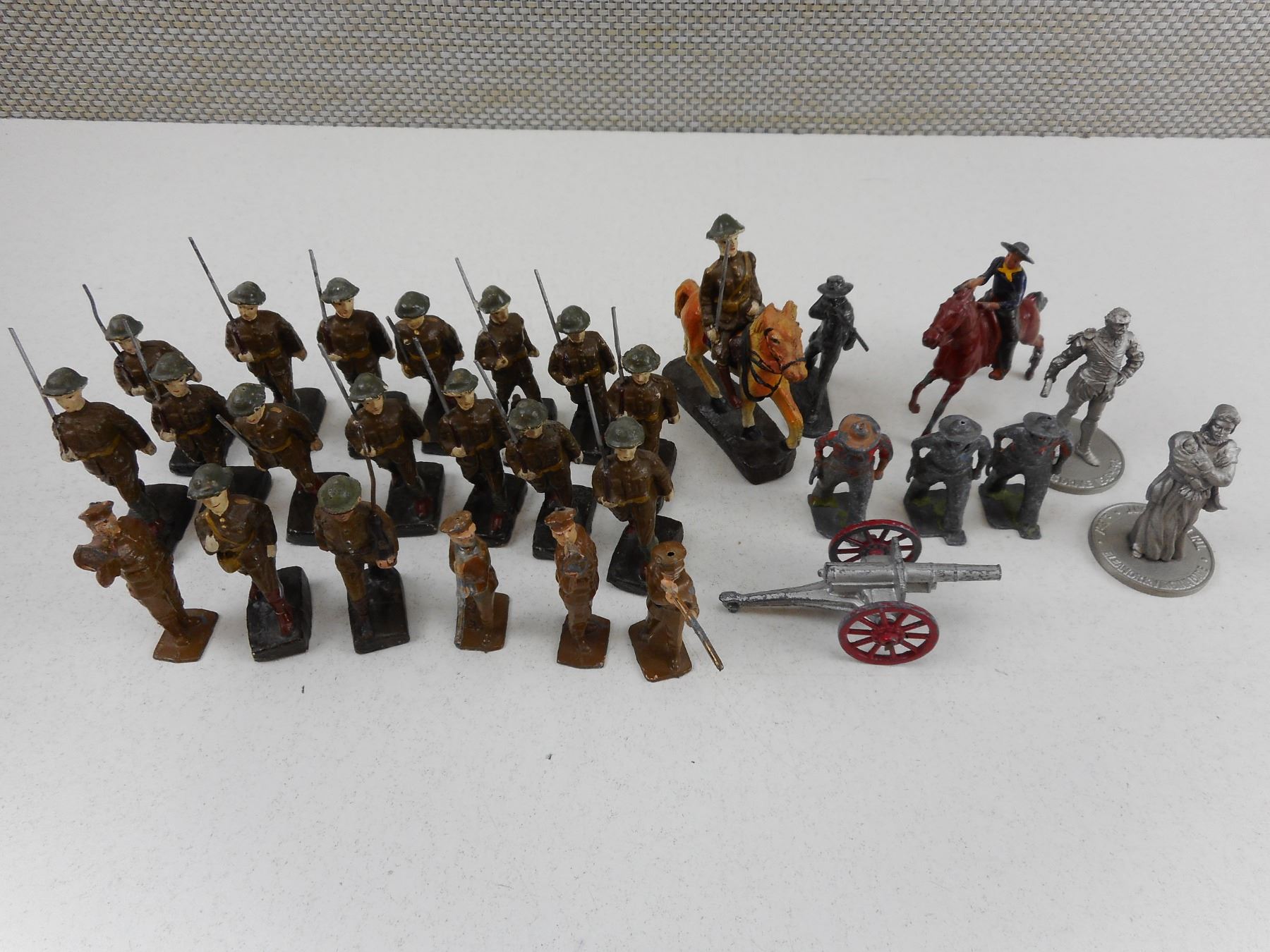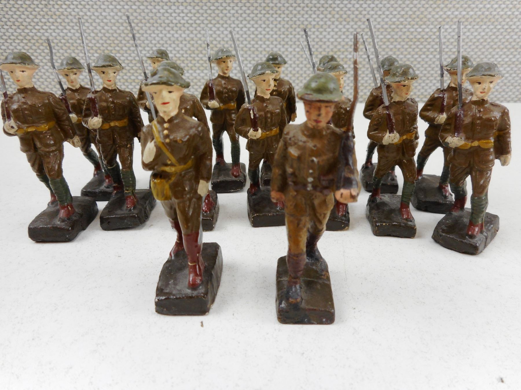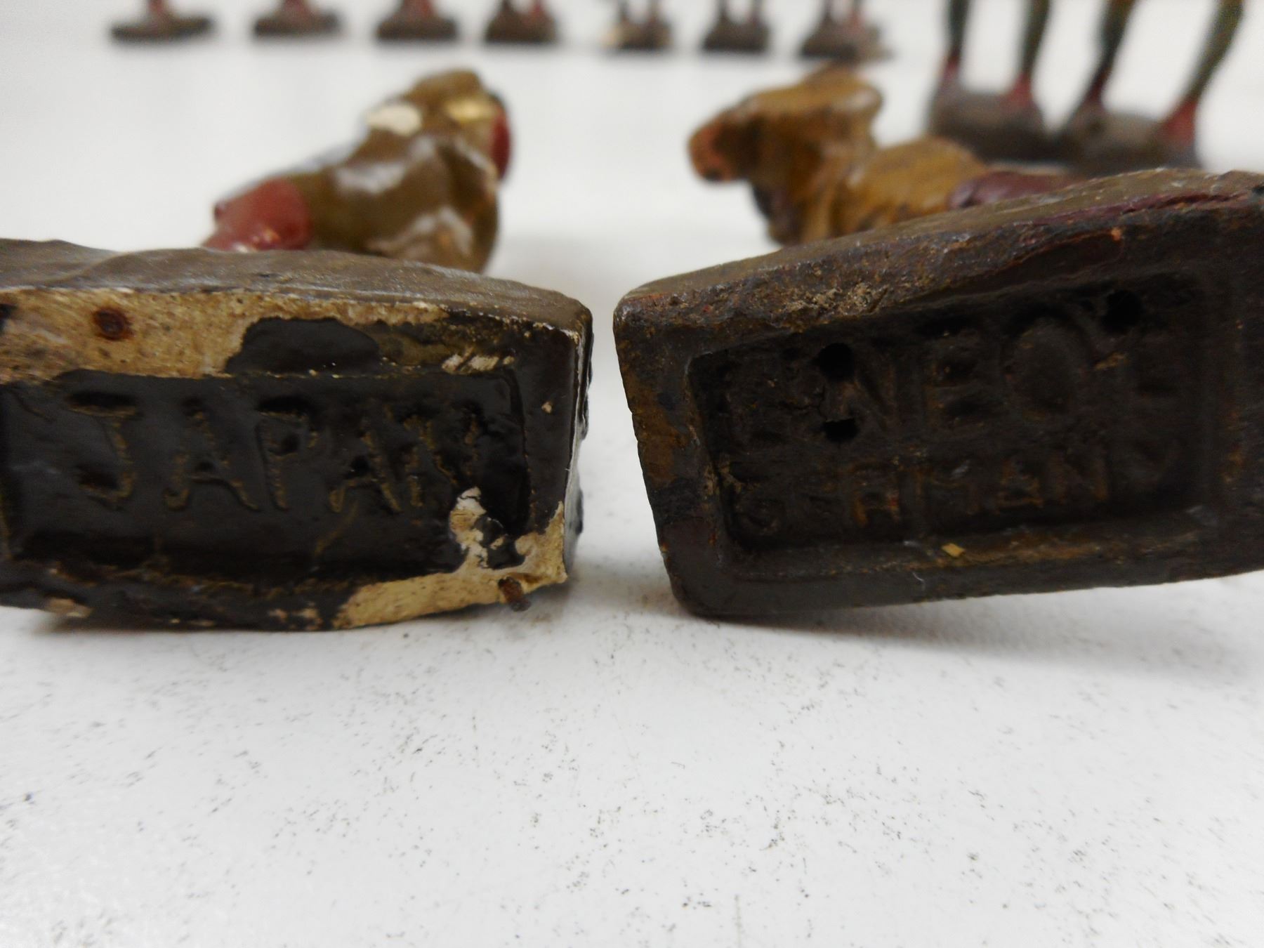 ASSORTED MILITARY MINITURES ACROSS THE ERAS, MOSTLY WWII ERA WITH BOTTOMS MARKED JAPAN, NOTICE SOME ARE VERY FRAGILE & MAY BE DAMAGED