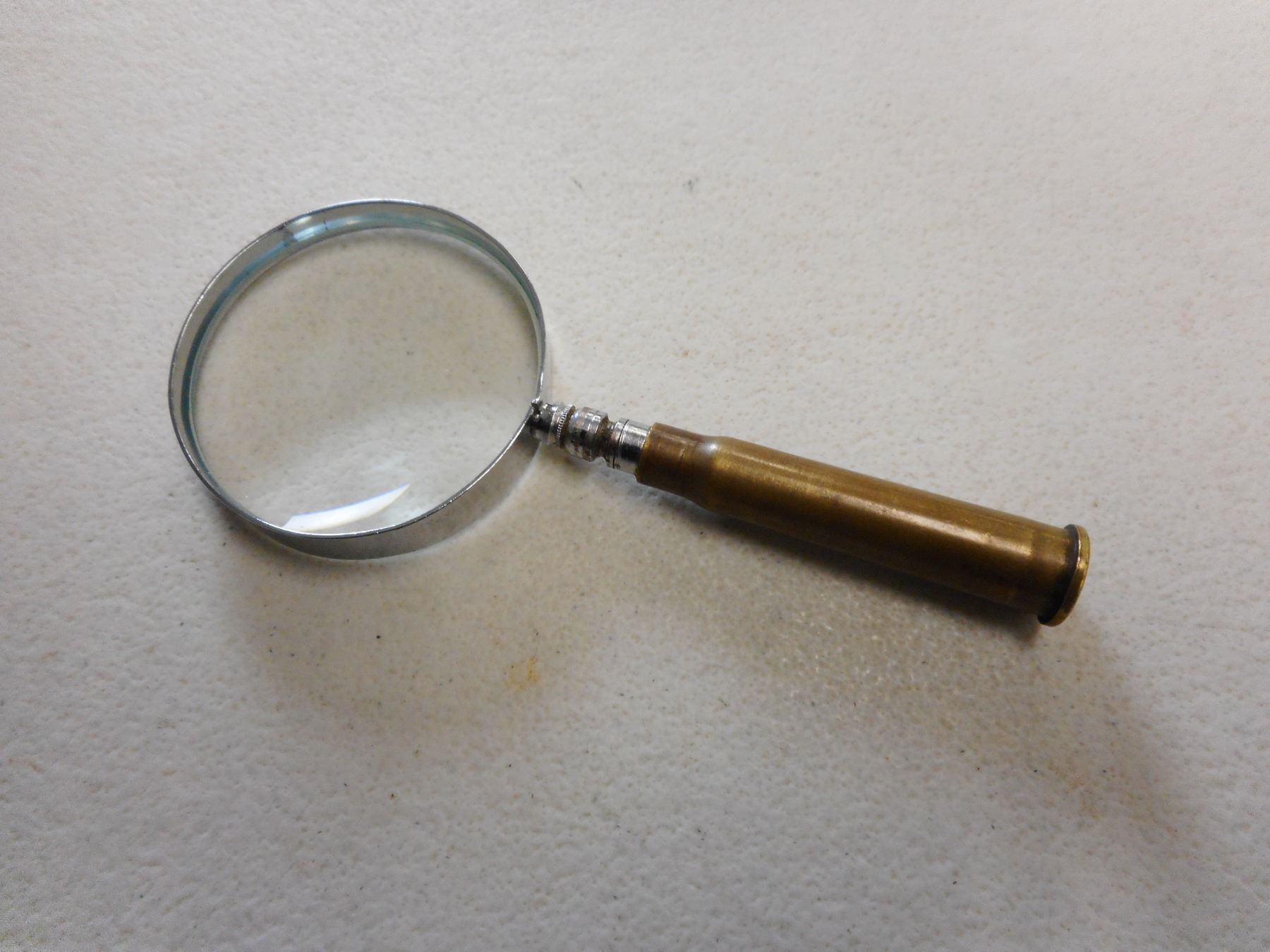 TRENCH ART MAGNIFYING GLASS, 303 BRITISH CASE DATED 1942 WITH MAGNIFYING GLASS ATTACHMENT
