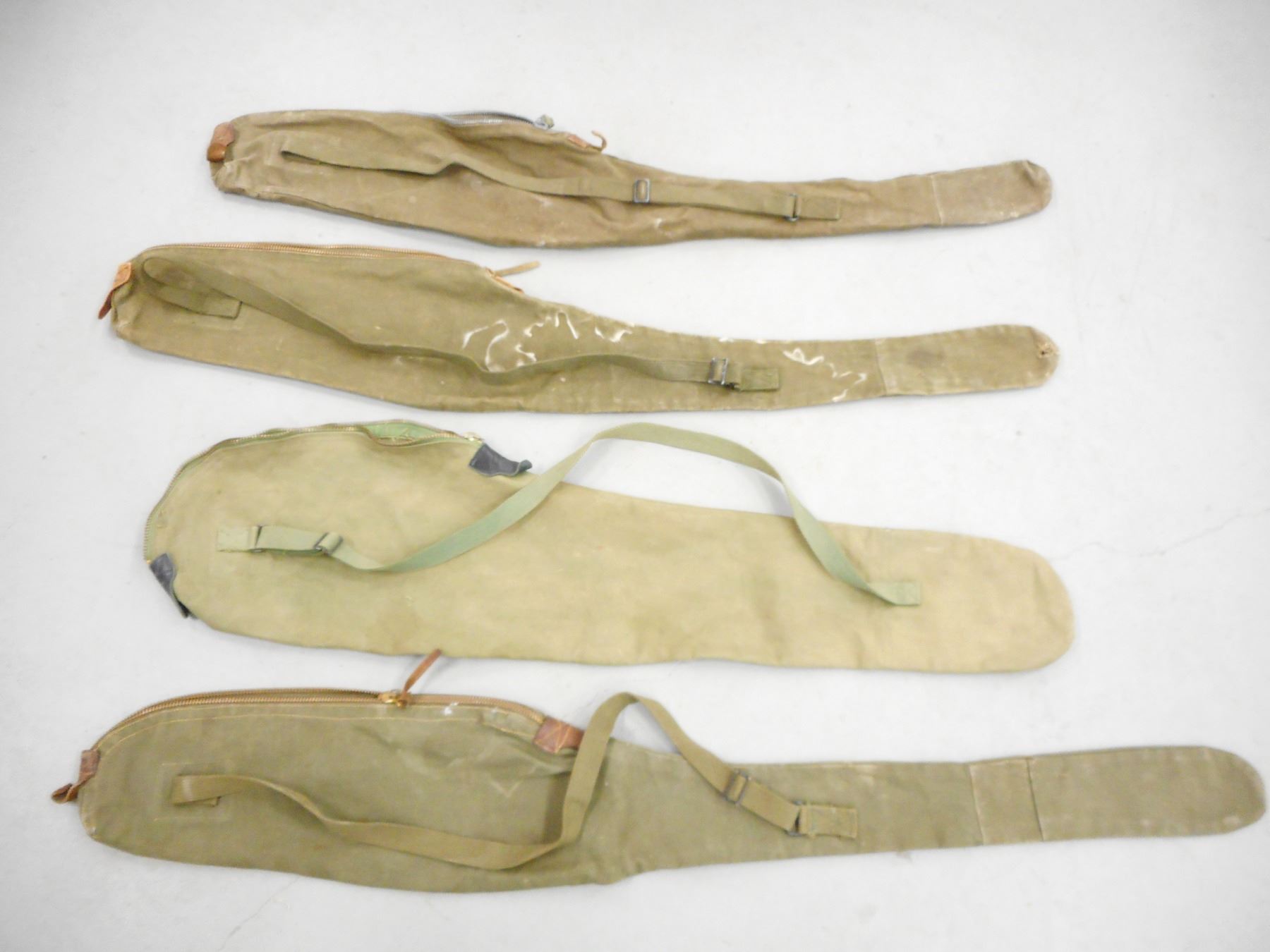 U.S WWII SOFT RIFLE CASES, ALL WITH U.S. STAMP ON OUTSIDE, (2) STAMPED INSIDE M.-D. MFG. CO. 1945, (1) STAMPED INSIDE M.-D. MFG. CO. 1944, LOT OF 4