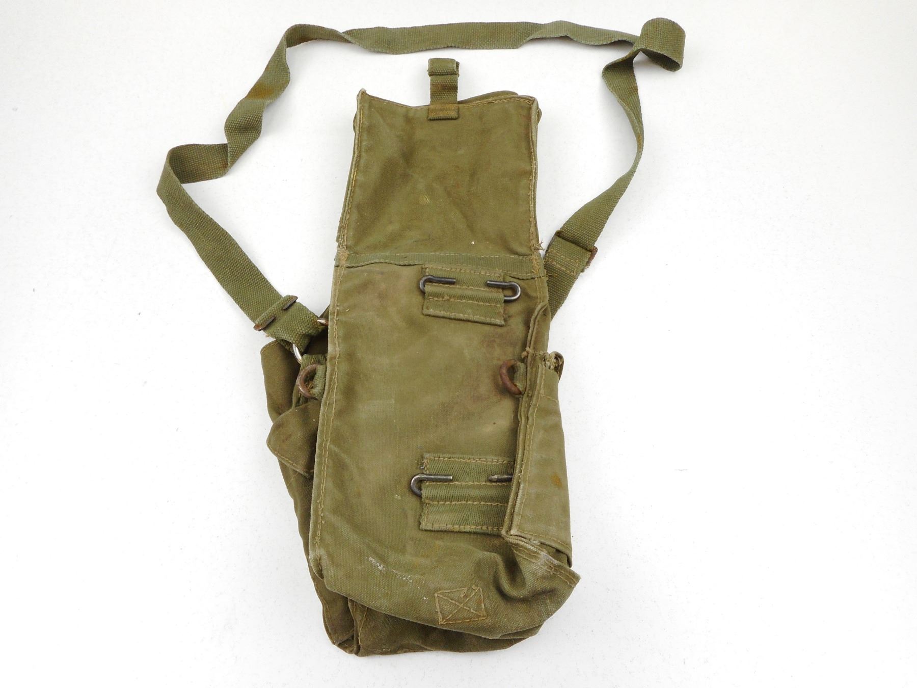 CANADIAN MILITARY RESPIRATOR BAG, 1951 PATTERN "LIGHTWIEGHT PATTERN RESPIRATOR CARRIER" DATED 1956,
