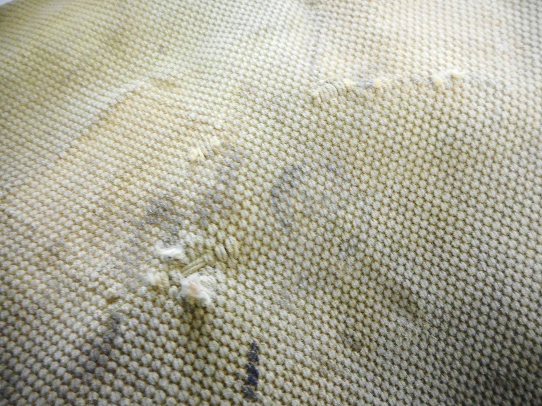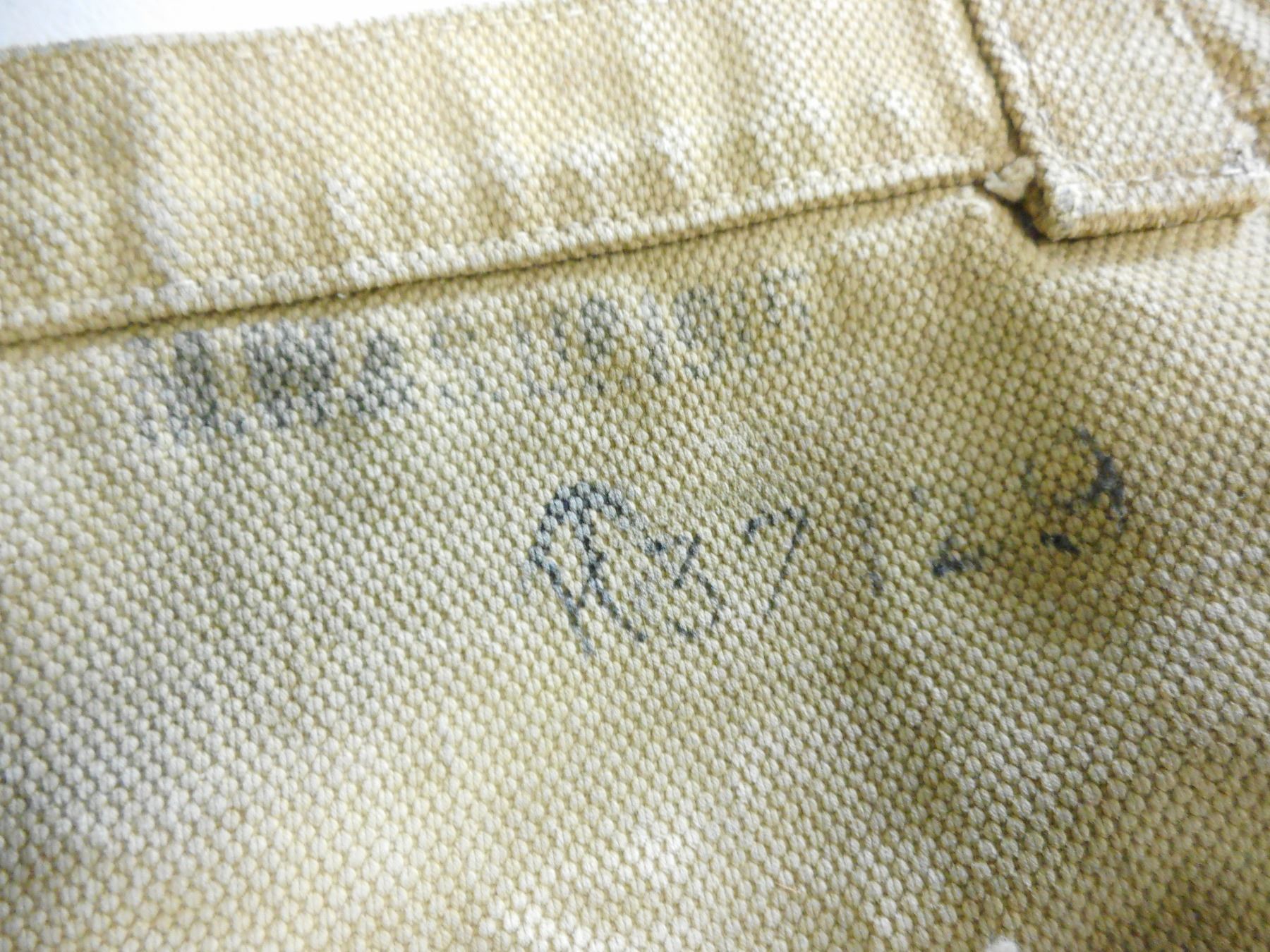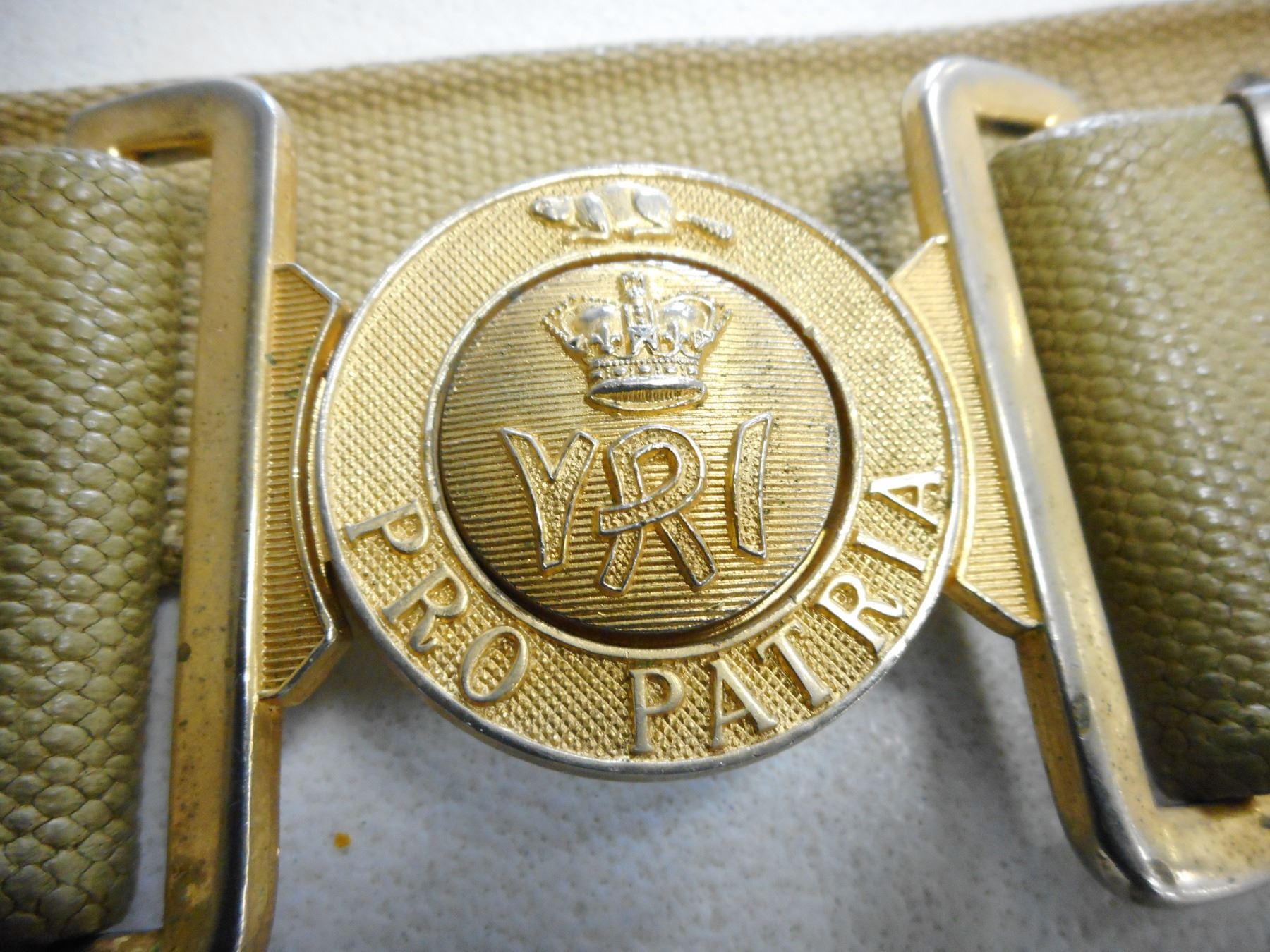 WWI CANVAS SATCHEL & CANADIAN BELT WITH BUCKLE, (1) SATCHEL BROAD ARROW MARKED M W & S LTD 1915 WITH VERY FAINT STAMP ON STRAP M.F.CO, (1) CANADIAN WAXED CANVAS BELT WITH ROYAL CANADIAN REGIMENT BUCKLE
