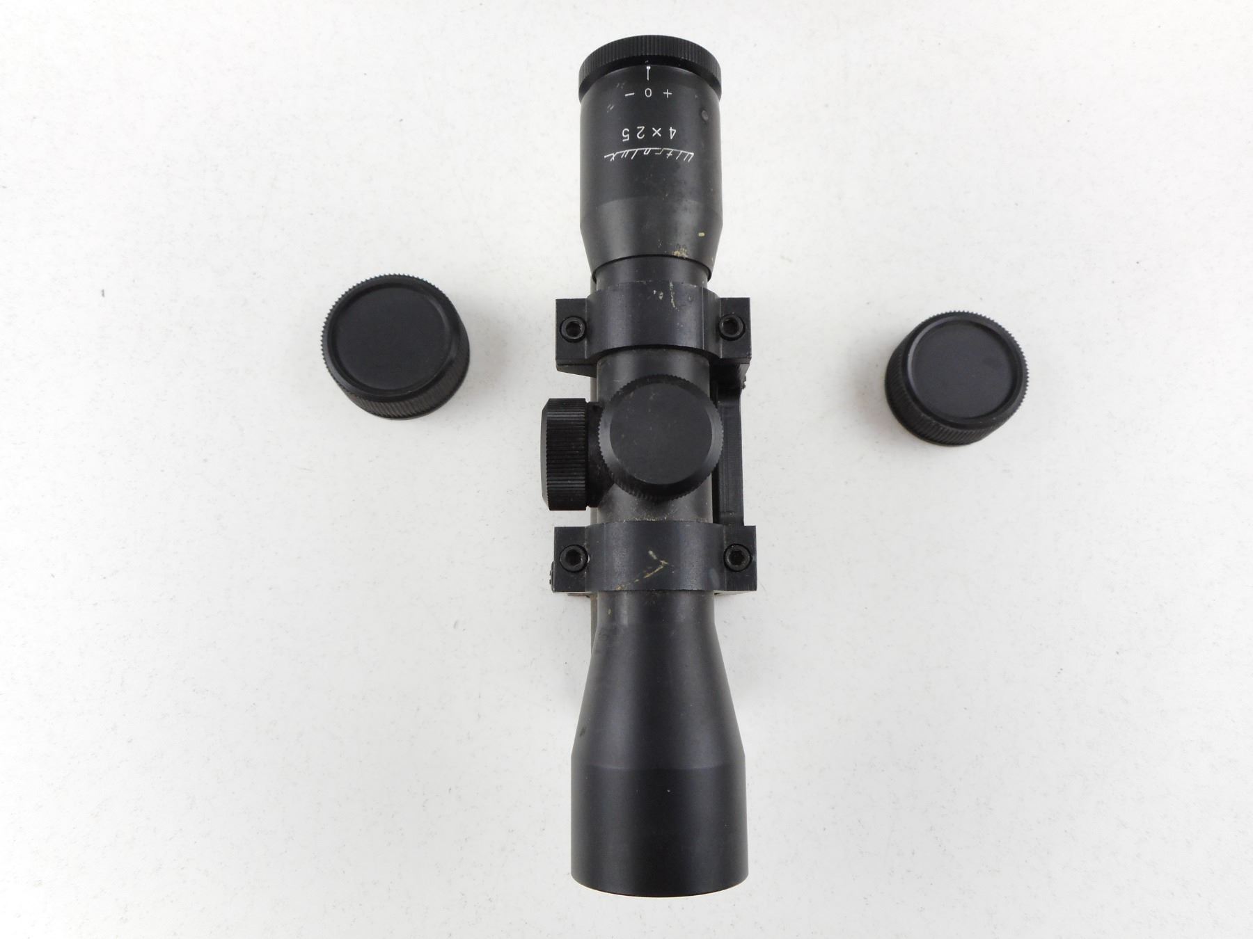 ULTRALUX 4X 25 SCOPE, CLEAR VISIBILITY WITH LENS CAPS AND SCOPE MOUNT