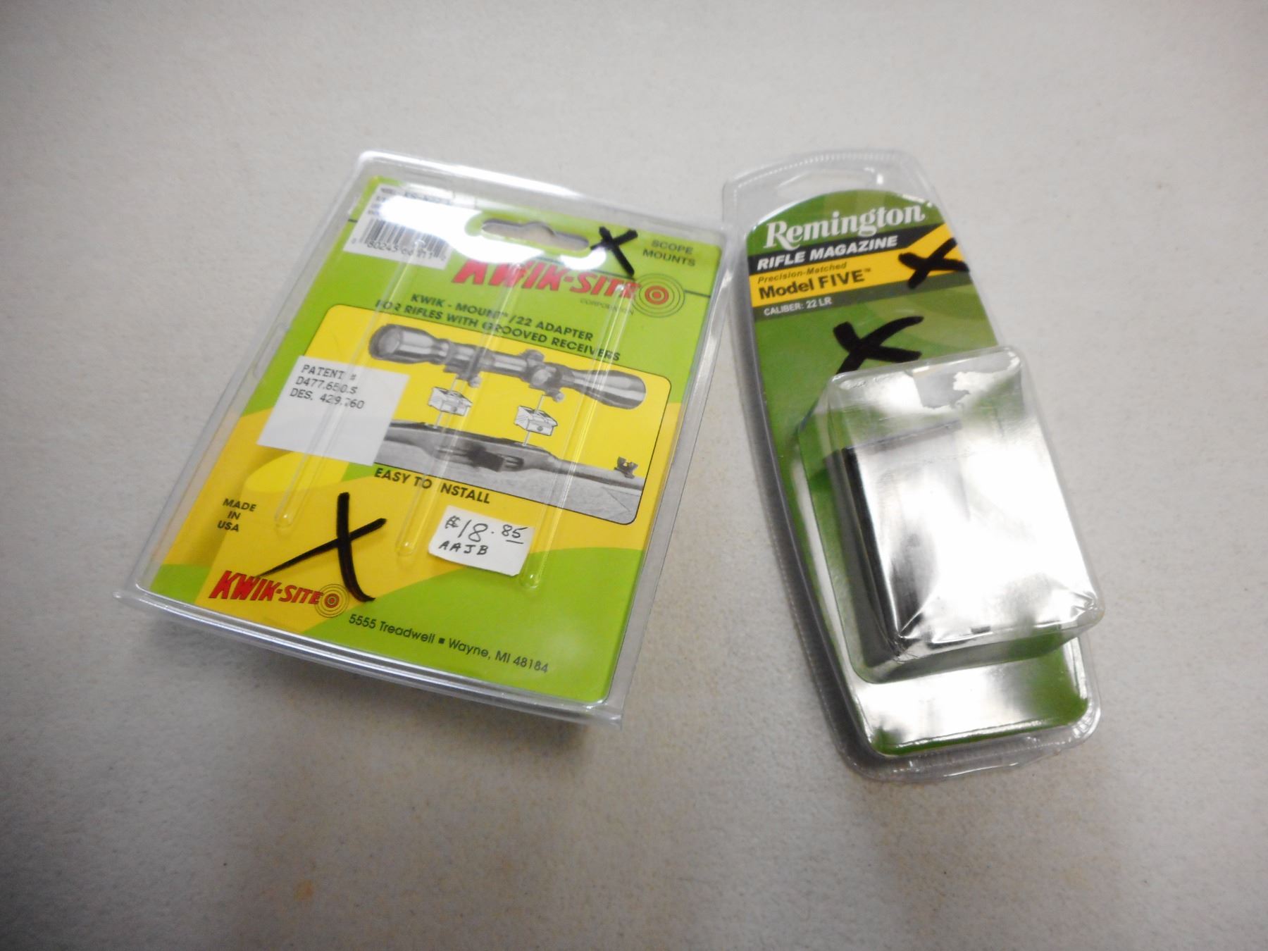 REMINGTON MAGAZINE & KWIK-SITE KWIK MOUNT, (1) REMINGTON 22 LR FOR MODEL FIVE, (1) KWIK-SITE KWIK MOUNT, IN ORIGINAL PACKAGING, LOT OF 2