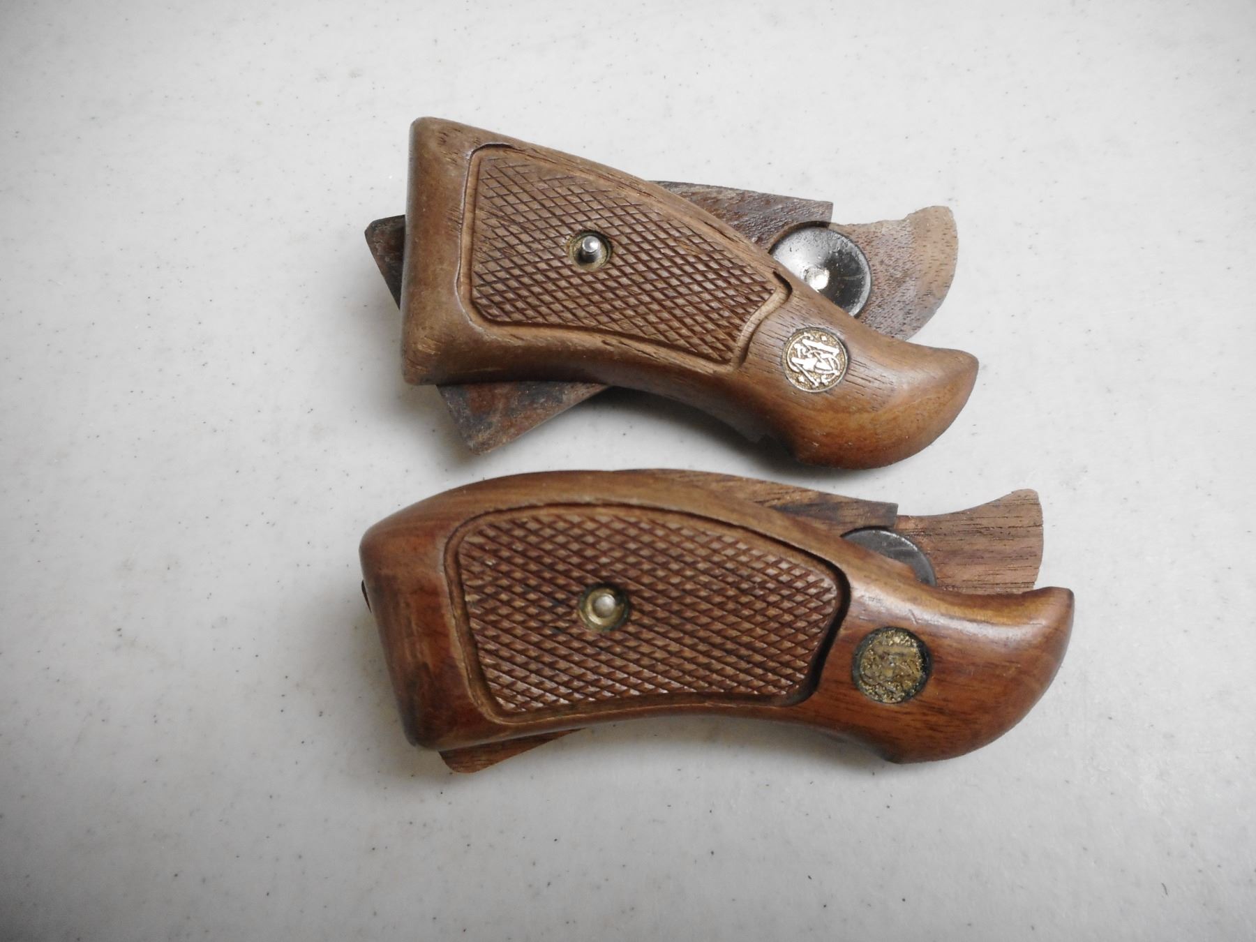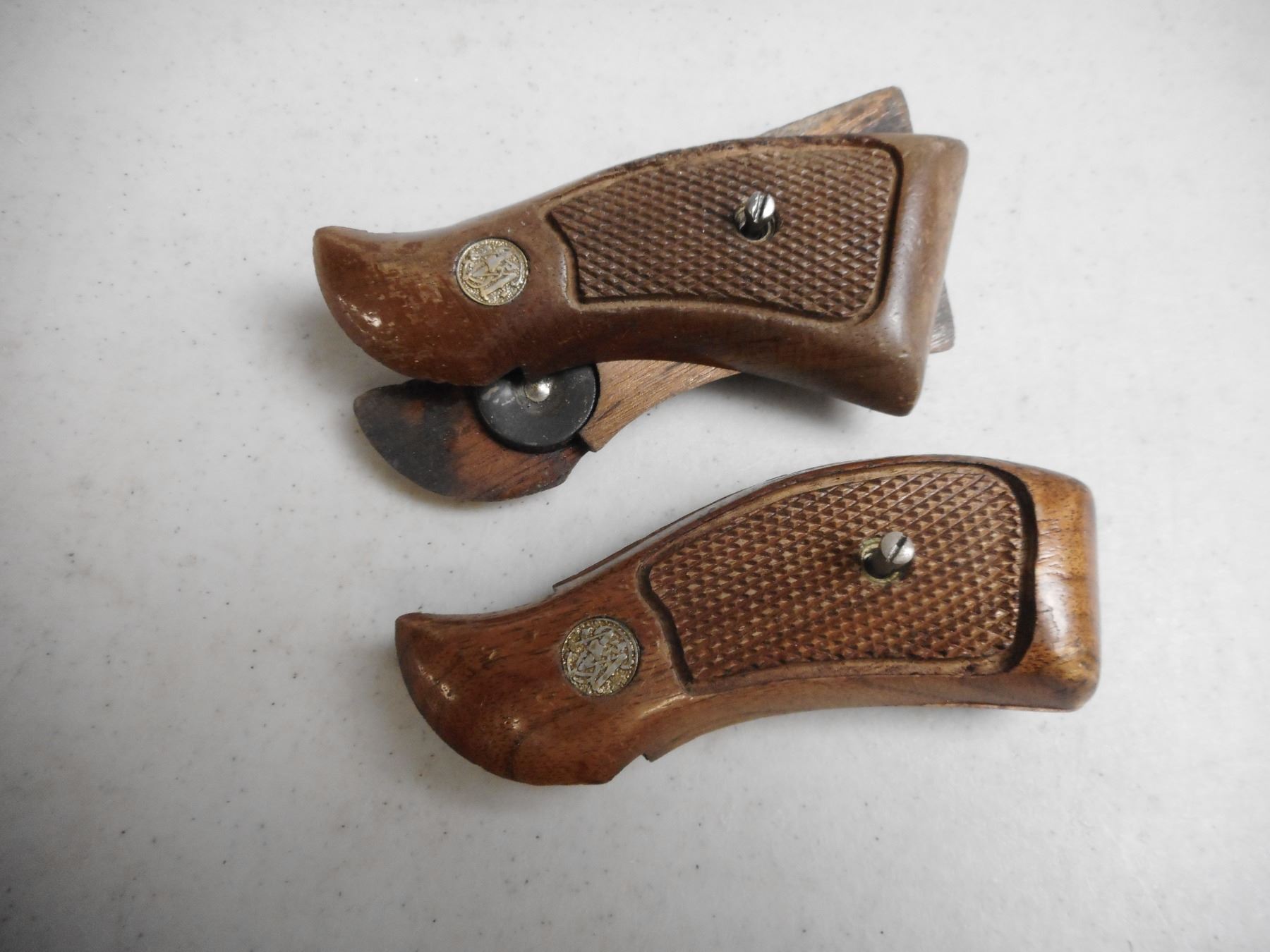 S&W WOODEN HANDGUN GRIPS, (1) ROUND (1) SQUARE FOR MODEL 10'S, LOT OF 2