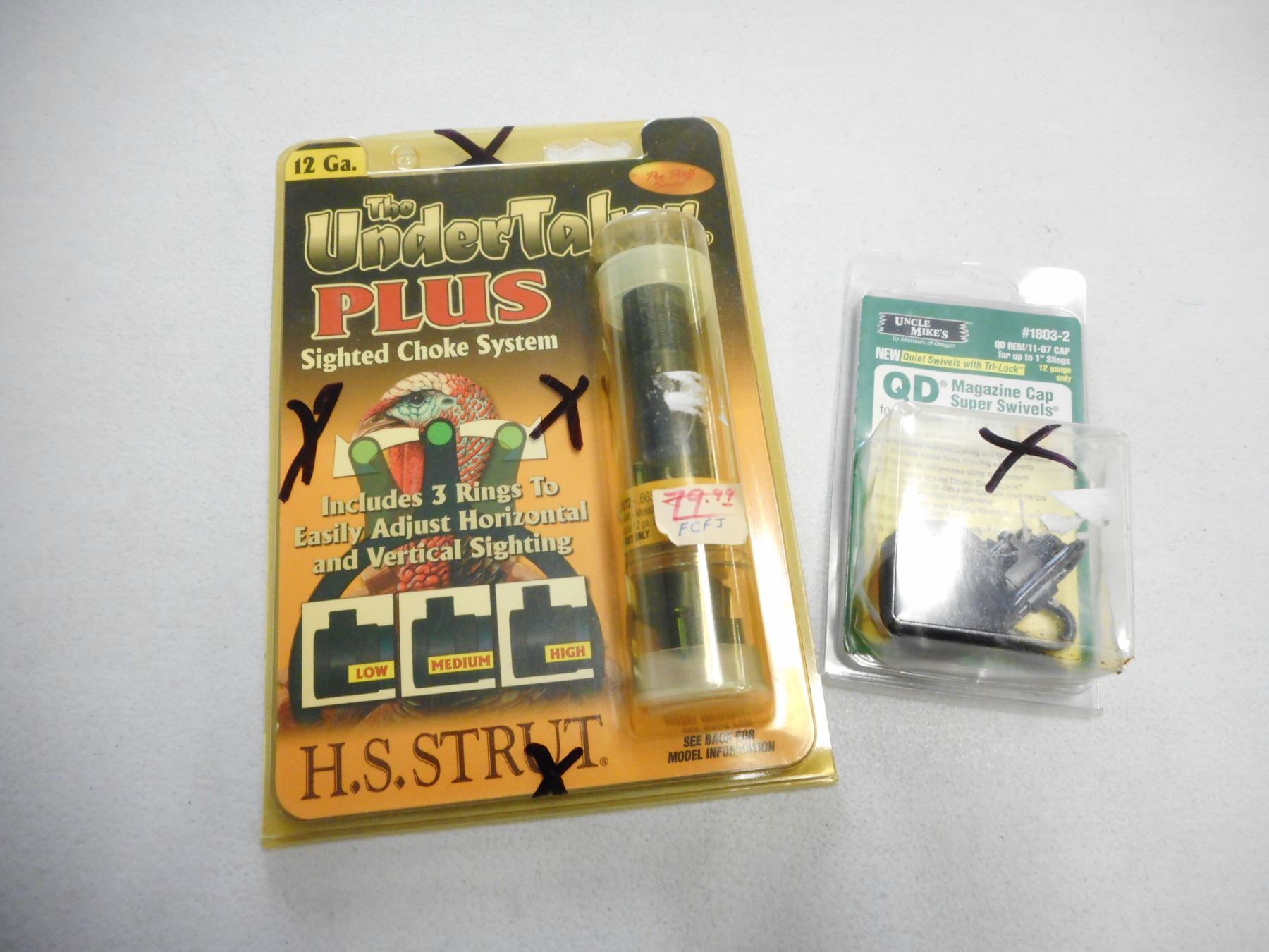 12 GA GUN CHOKE & MAGAZINE CAP SUPER SWIVELS, (1) H.S. STRUT THE UNDERTAKER PLUS SIGHTED CHOKE SYSTEM, (1) UNCLE MIKE'S MAGAZINE CAP SUPER SWIVELS, BOTH IN ORIGINAL PACKAGING, LOT OF 2