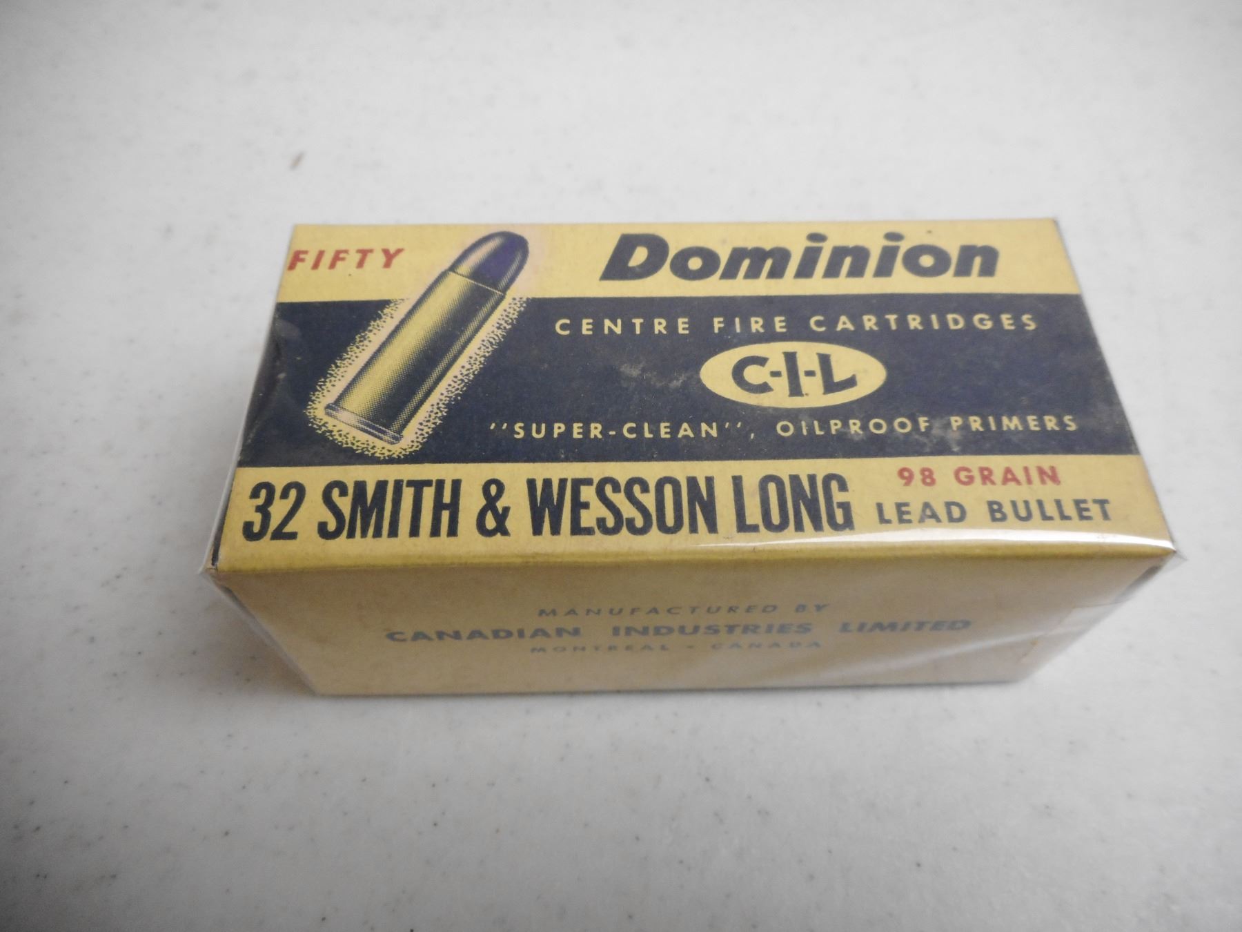 EMPTY ANTIQUE DOMINON/CIL 32 S&W LONG BOX, 1-PIECE BOX