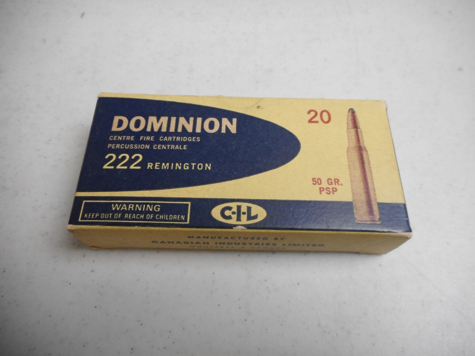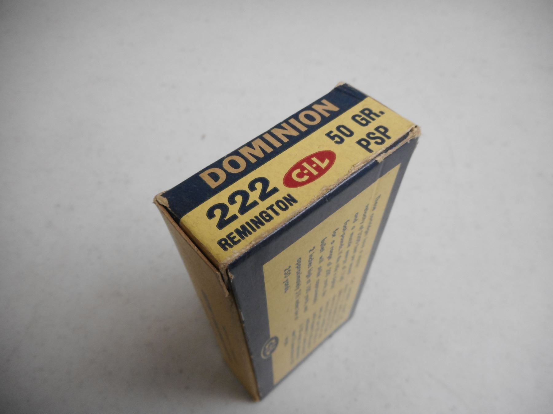 EMPTY ANTIQUE DOMINION/CIL 222 REMINGTON BOX, 1-PIECE BOX