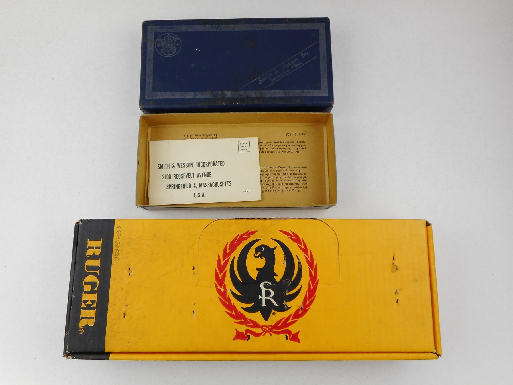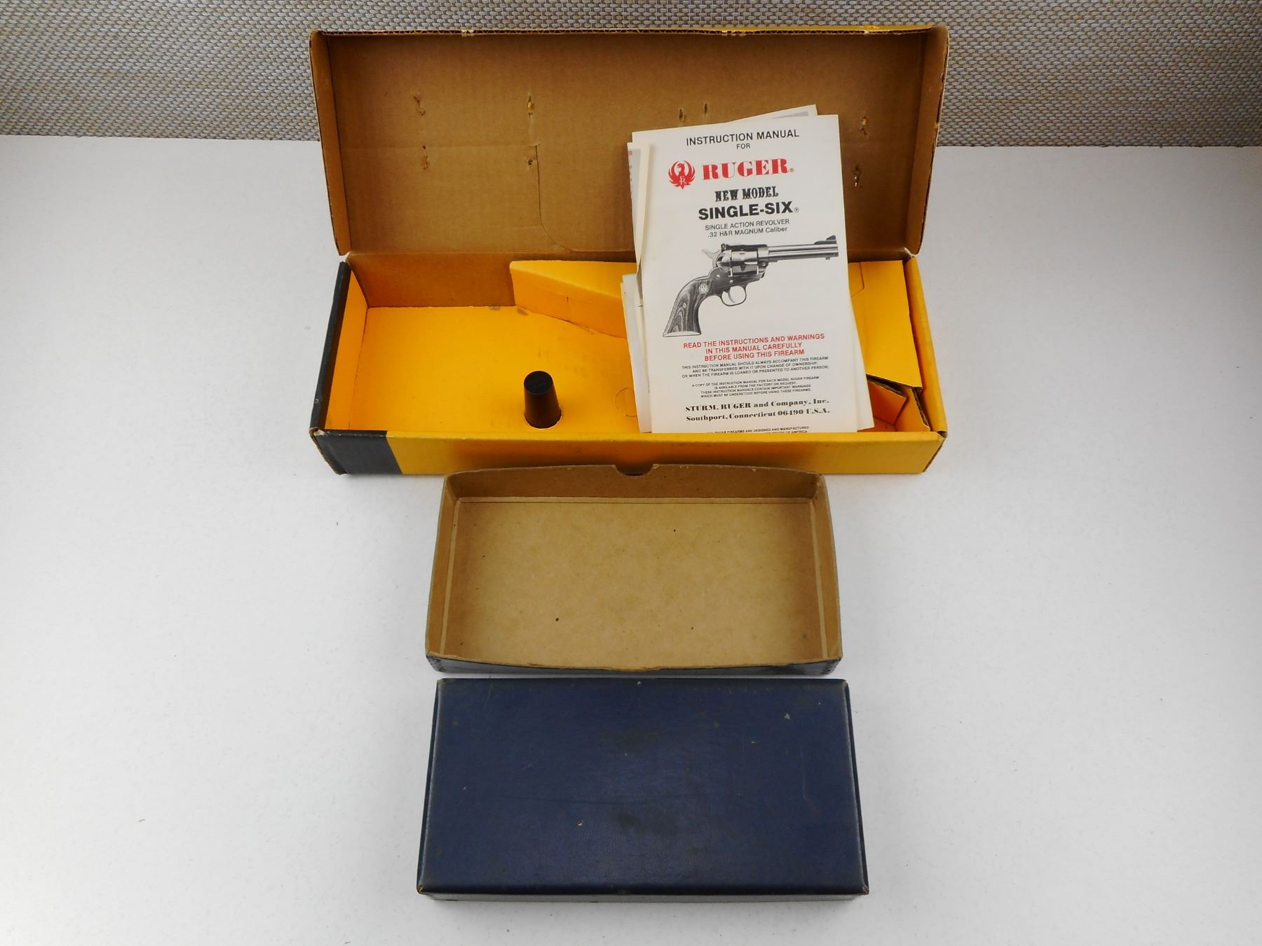 EMPTY RUGER & S&W BOX, (1) FOR RUGER SINGLE SIX 32 H&R WITH MANUAL, (1) FOR S&W MODEL 22/32 KIT GUN MODEL 34, LOT OF 2