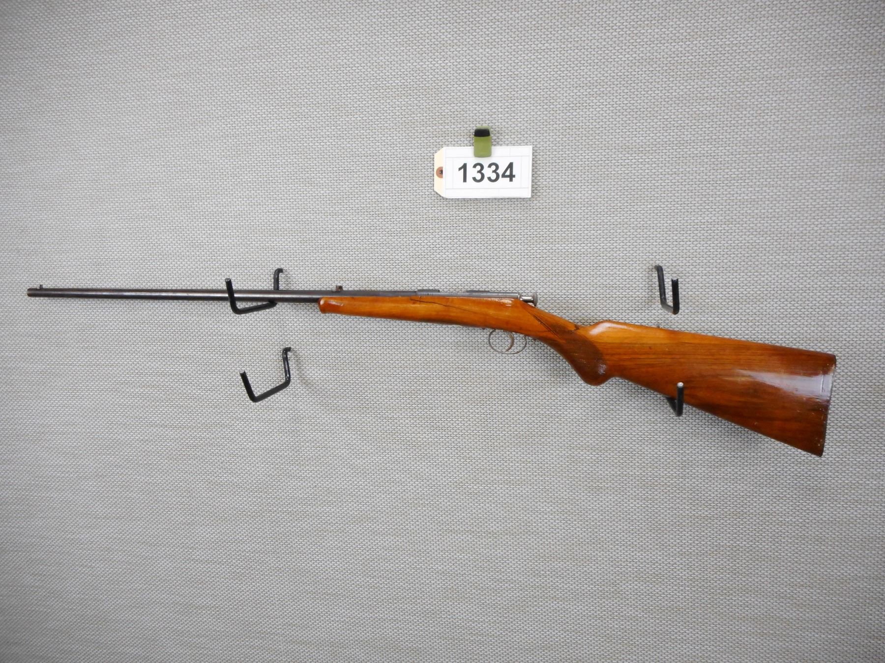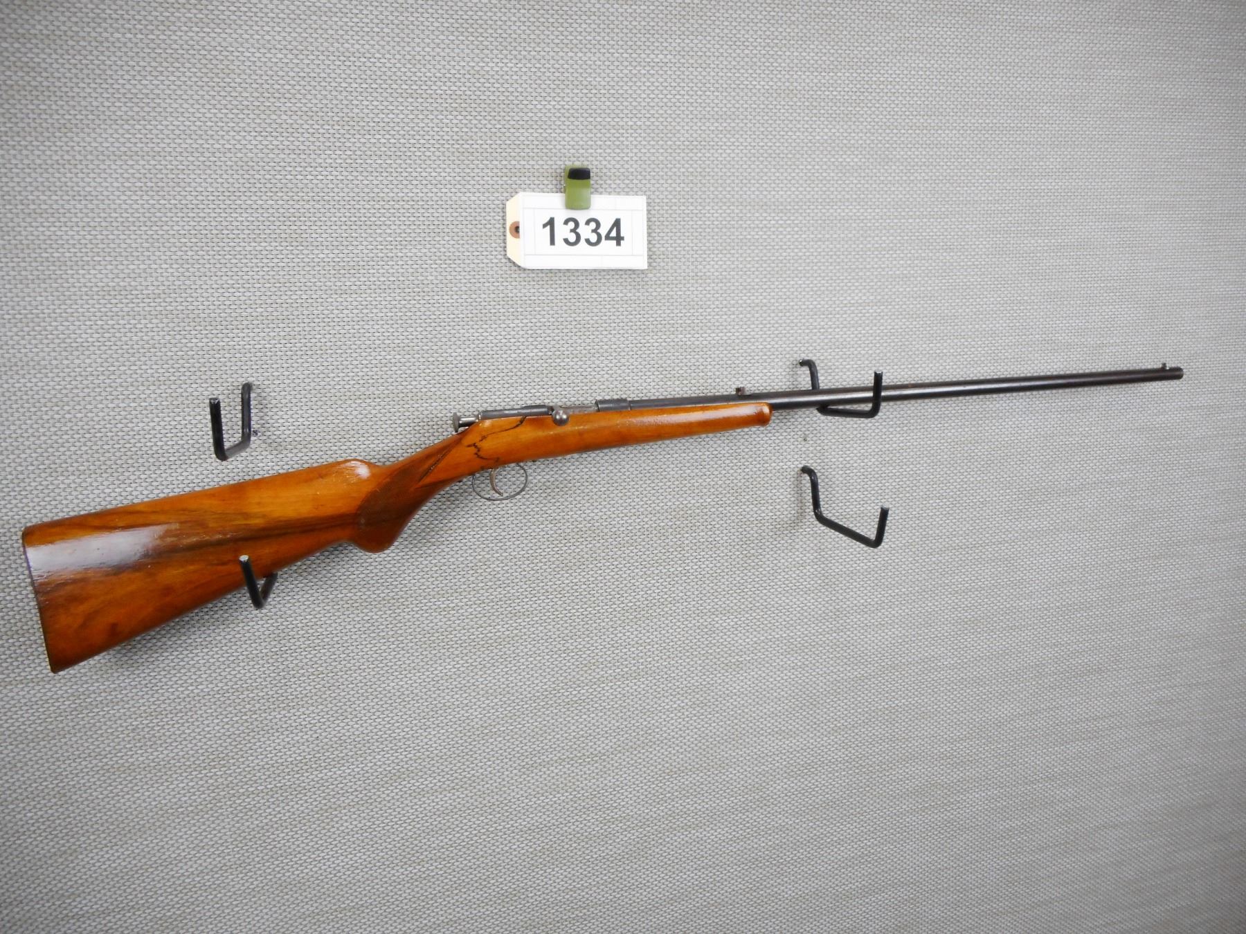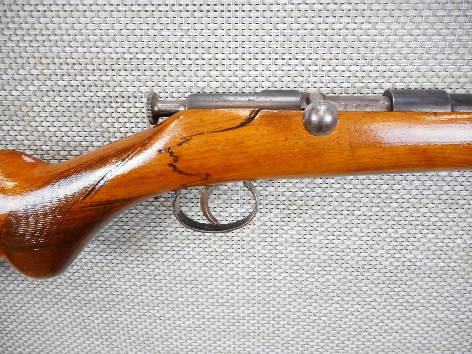 Lot 1334 JG ANSHUTZ , SINGLE SHOT , 22 LR , MISSING THE EXTRACTOR, STOCK IS CRACKED AT THE WRIST AND THE FOR