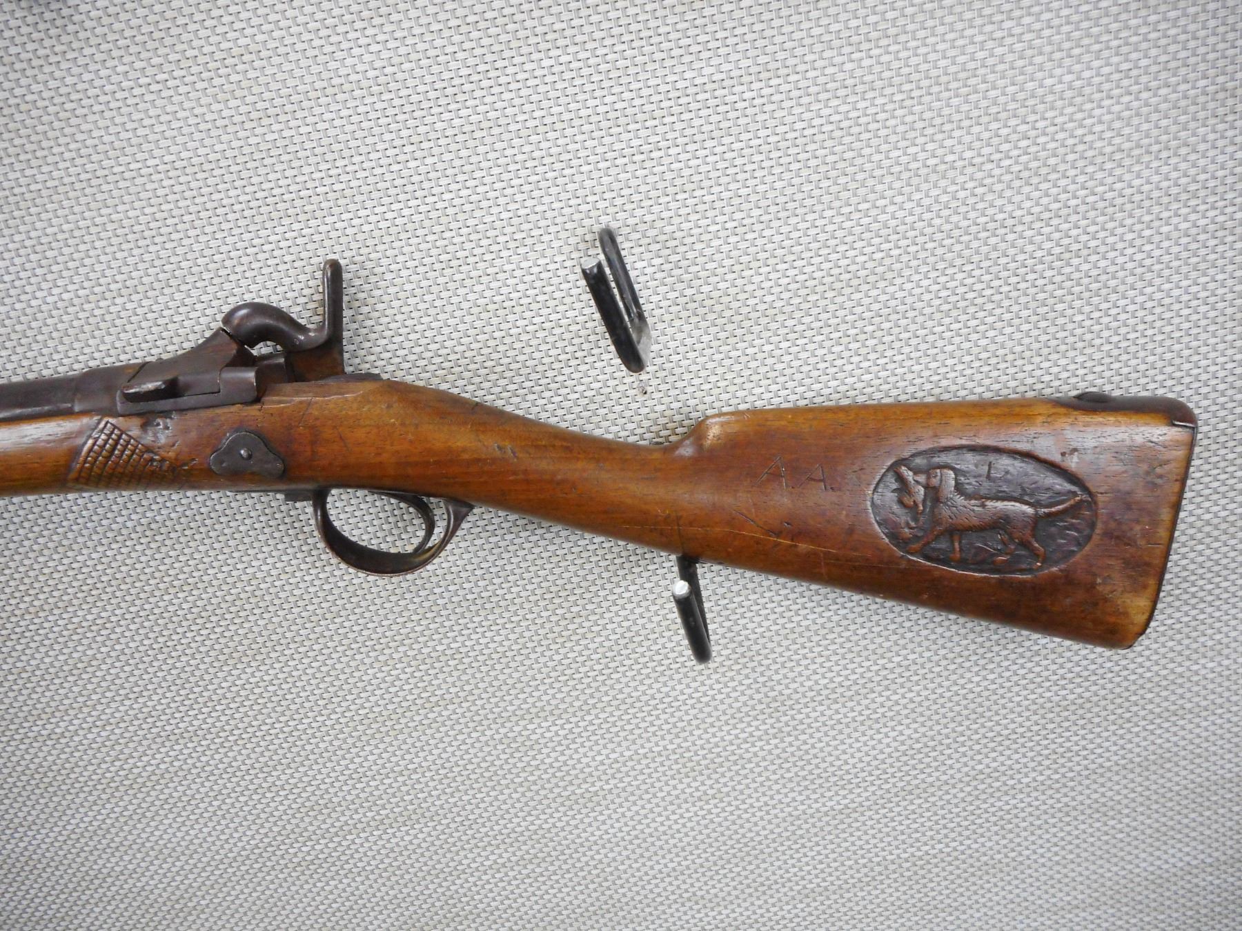 FROM THE ZULU FAMILY, MISSING MAJOR PARTS IN THE STOCK, FIRING PIN HAS BEEN REPLACED WITH A NAIL, HOME CARVED AND CHECKERED STOCK, MISSING THE FRONT SIGHT, RUSTY BOREPARTS GUN BARREL LENGTH: 33"