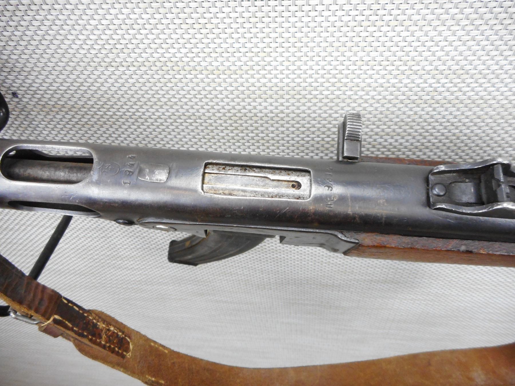 SHPAGIN , MODEL: PPSH41 , CALIBER: 7.62MM TOKAREV , COMES WITH MAGAZINE, THIS IS 12-3 STATUS PROHIB, FLIP REAR FRONT POST SIGHTS, WOODEN STOCK, LEATHER SLING, DATED 1944, 4050 MARKED ON STOCK AND REAR TANG, PITTING IN BORE. , ACTION: CONVERTED AUTO SUBMACHINE GUN , BARREL LENGTH:265MM , CONDITION: 5/10 , SERIAL # AE9314 , CANADIAN CLASS PROHIBITED. This item is subject to a technical inspection. The transfer may take some time.