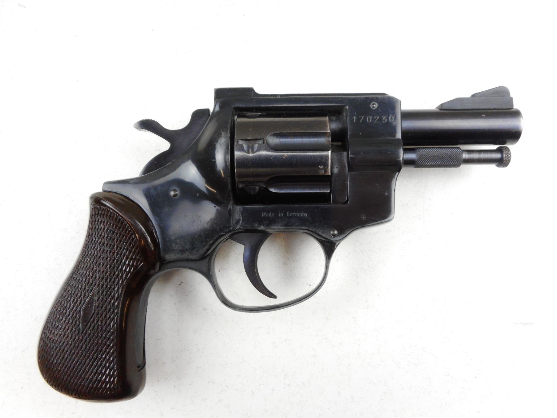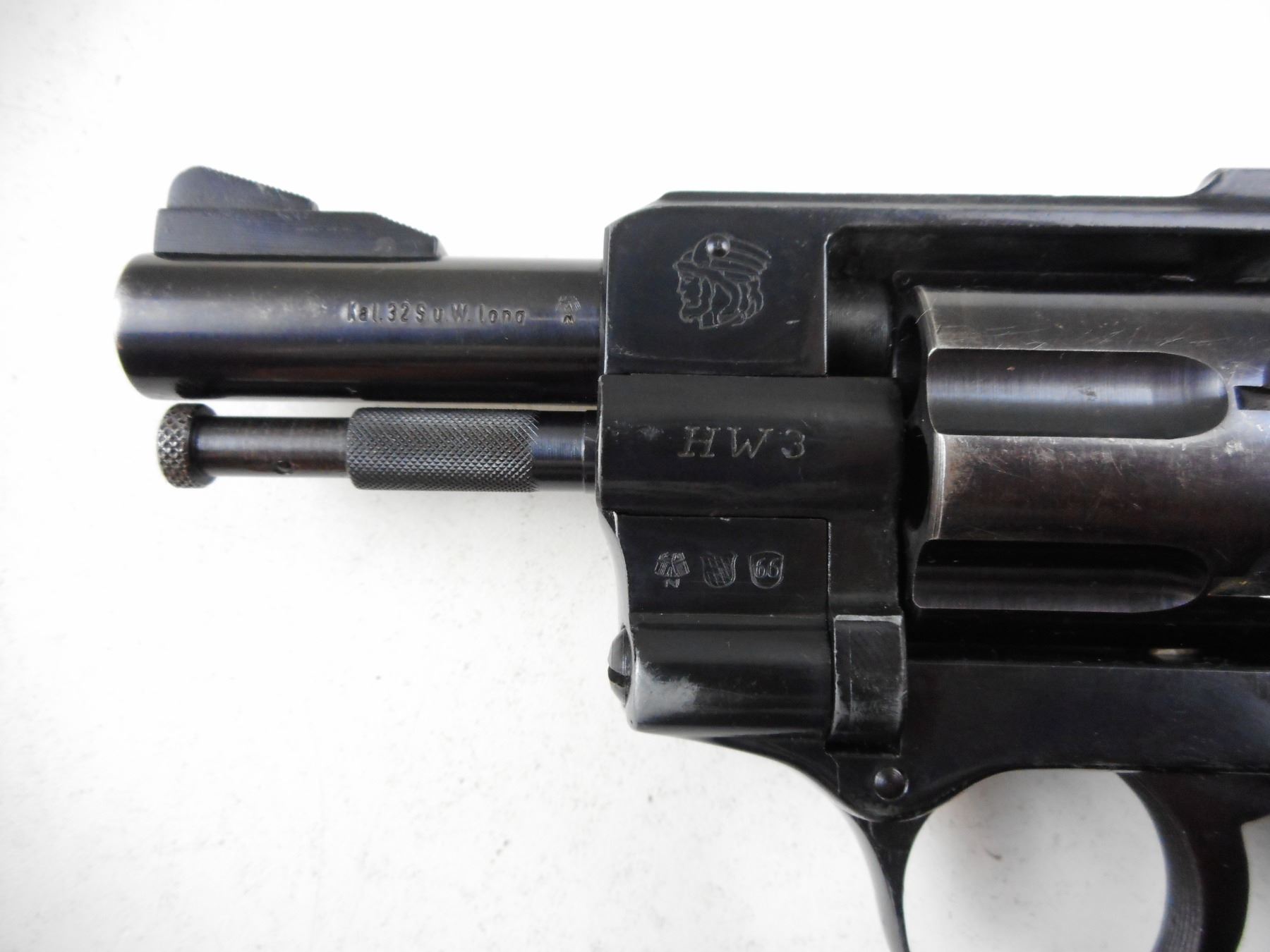 ARMINIUS , MODEL: HW3 , CALIBER: 32 S&W LONG , BLUE FINISH, WRAP AROUND PLASTIC CHECKERED GRIPS, NOTCH & BLADE SIGHTS, EXCELLENT BORE, 7 SHOTS, MINOR HANDLING WEAR AND SCRATCHES , ACTION: REVOLVER , BARREL LENGTH:70MM , CONDITION: 7/10 , SERIAL # 170230 , CANADIAN CLASS PROHIBITED