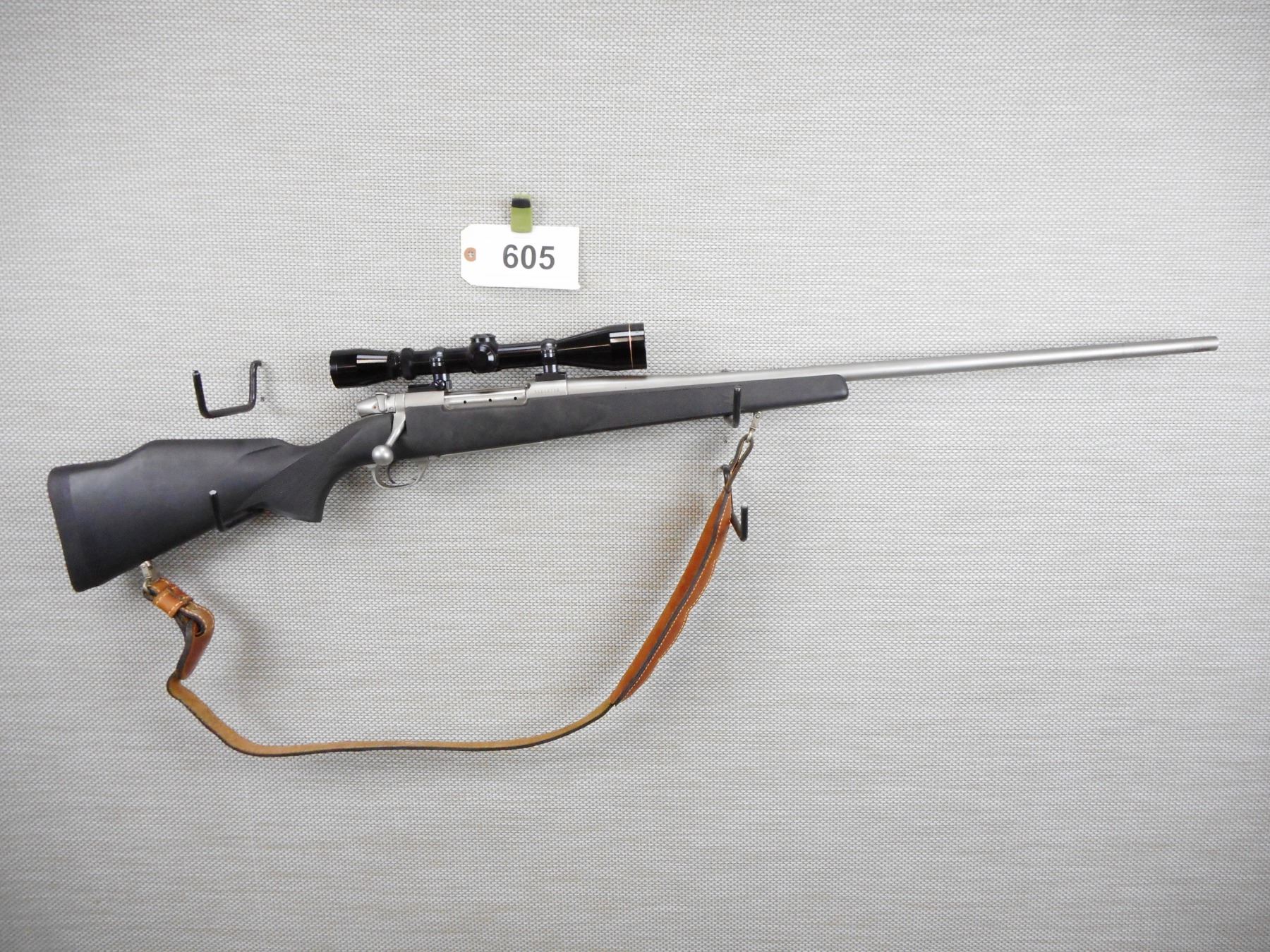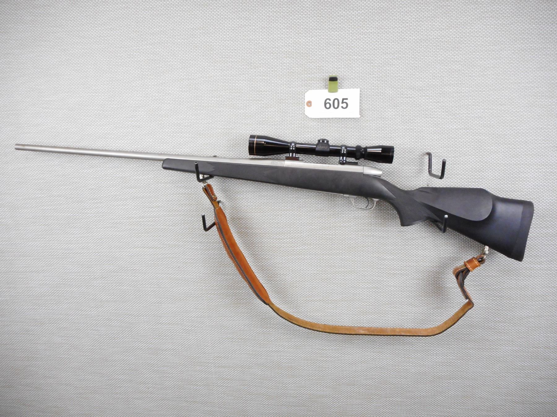 WEATHERBY , MODEL: MKV , CALIBER: 300 WEATHERBY MAGNUM , HAS A HINGED FLOOR PLATE, EXCELLENT BORE, LEUPOLD VARI X II 3-9 SCOPE, SLING SWIVELS WITH LEATHER SLING, MATTE STAINLESS FINISH AND BLACK SYNTHETIC CHECKERED STOCK WITH RAISED CHEEK PIECE, RUBBER BUTT PAD , ACTION: BOLT ACTION RIFLE , BARREL LENGTH:26" , CONDITION: 8/10 , SERIAL # SS014720 , CANADIAN CLASS NON RESTRICTED