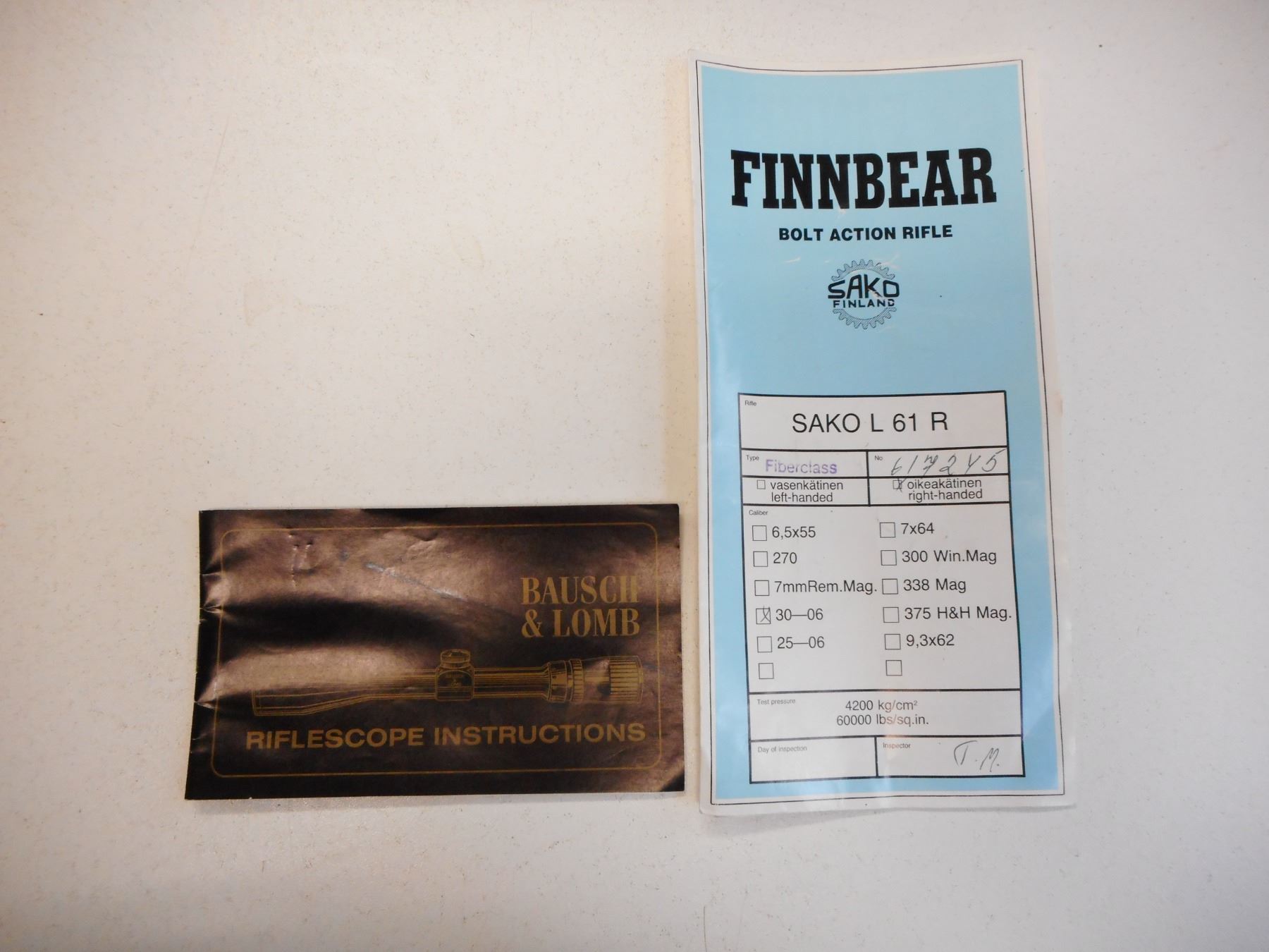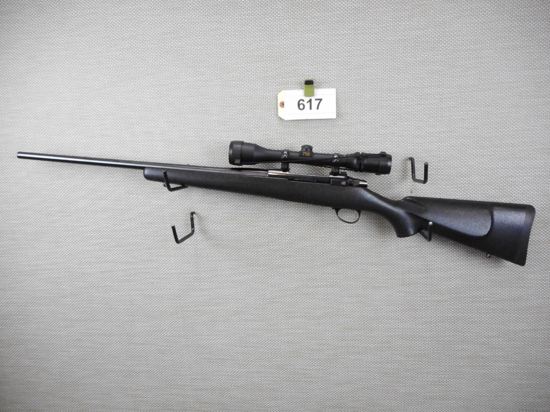 SAKO , MODEL: AV , CALIBER: 30-06 SPRG , COMES WITH MANUAL, BORE IS EXCELLENT, NO SIGHTS, FEATURES A BAUSCH & LOMB, 3 - 9 SCOPECHIEF SCOPE, TEXTURE BLACK SYNTHETIC STOCK WITH FULL PISTOL GRIP AND RAISED CHEEK PIECE, SLING SWIVEL STUDS, RUBBER RECOIL PAD , ACTION: BOLT ACTION RIFLE , BARREL LENGTH:23" , CONDITION: 9/10 , SERIAL # 617245 , CANADIAN CLASS NON RESTRICTED