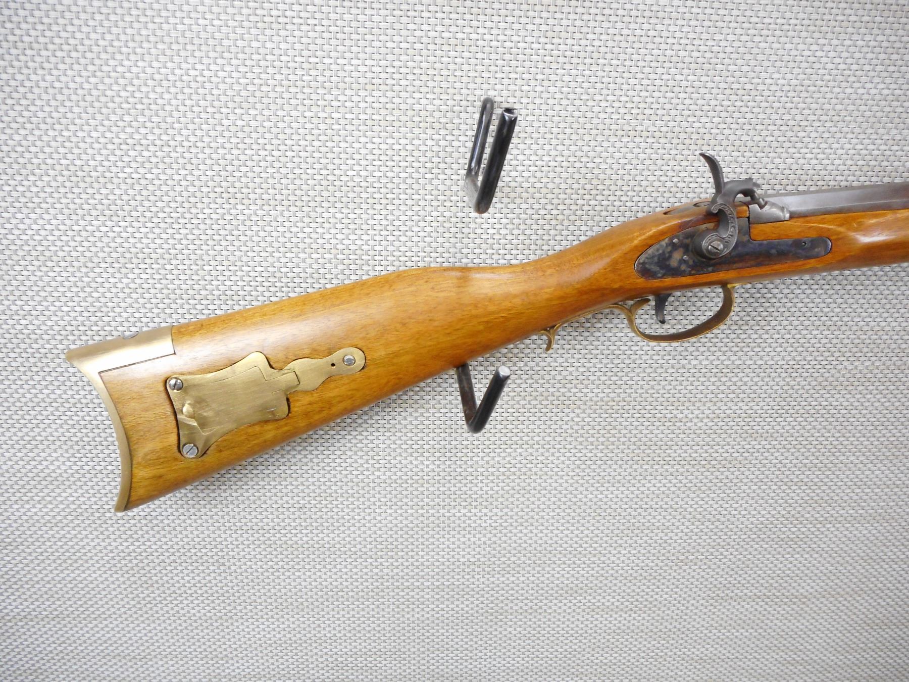 FALCON , MODEL: SINGLE SHOT PERCUSION , CALIBER: 45 PERC , BORE IS GOOD, COMES WITH RAM ROD, BLADE FRONT AND FIXED REAR SIGHT ON FULLY OCTAGONAL BARRREL, BRASS FURNITURE INCLUDING PATCH BOX, CRESCENT BUTT PLATE, HARDWOOD STOCK THAT SHOWS SOME HANDLING MARKS, FINGER GRIP TRIGGER GUARD , ACTION: SINGLE SHOT , BARREL LENGTH:33" , CONDITION: 6/10 , SERIAL # B3276 , CANADIAN CLASS NON RESTRICTED
