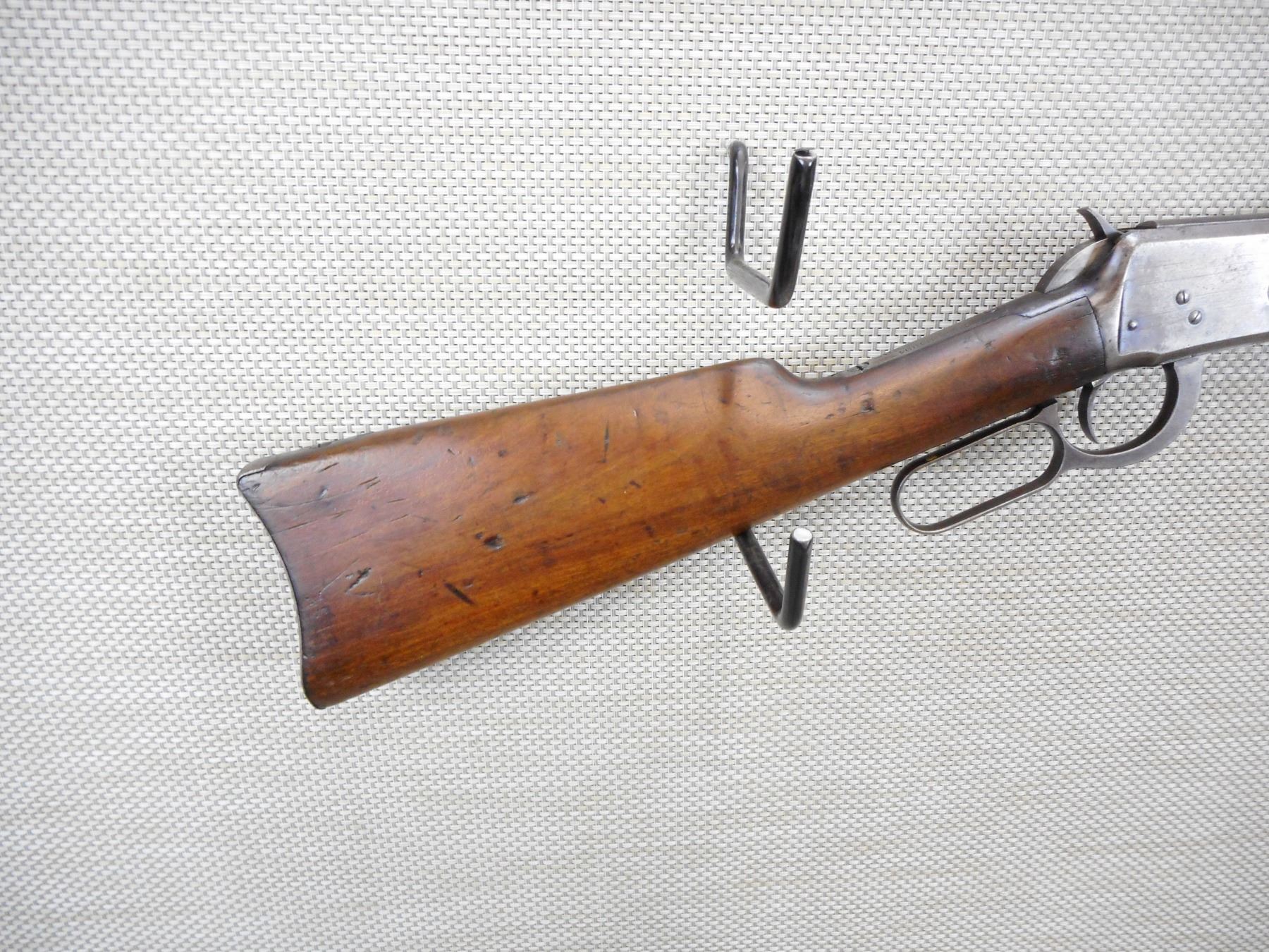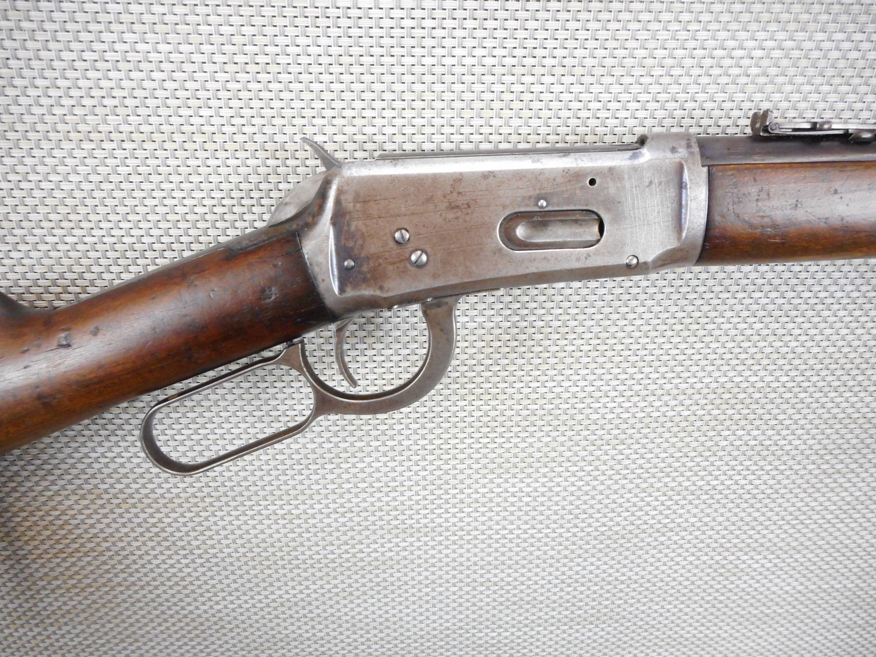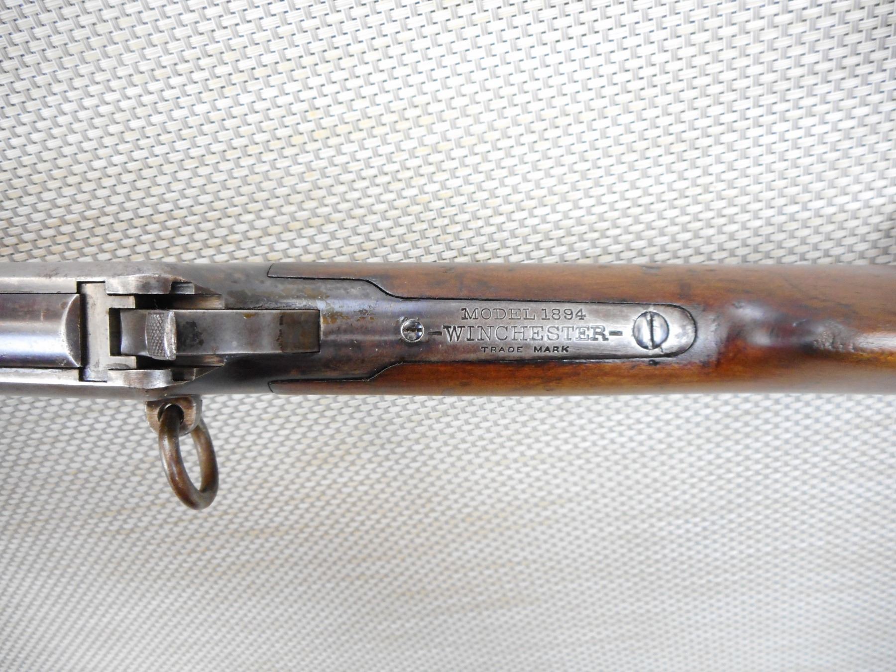 WINCHESTER , MODEL: 1894 SADDLE RING CARBINE , CALIBER: 32-40 WIN , MANUFACTURED IN 1901, VERY RARE CALIBER FOR THE SADDLE RING CARBINE , GOOD BORE, BLADE FRONT AND ADJUSTABLE REAR SIGHT, SHOWS SOME HANDLING MARKS, STEEL BUTT PLATE , ACTION: LEVER ACTION RIFLE , BARREL LENGTH:20" , CONDITION: 5/10 , SERIAL # 251000 , CANADIAN CLASS NON RESTRICTED
