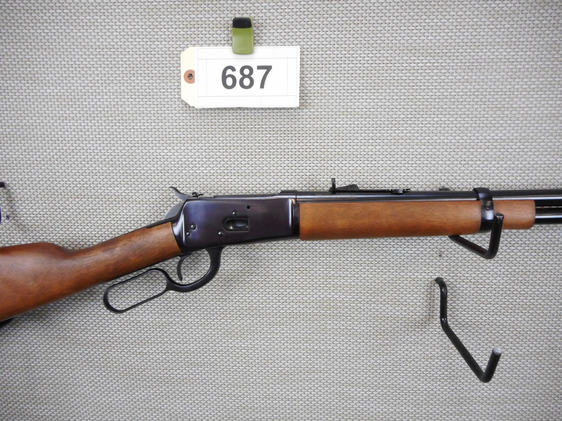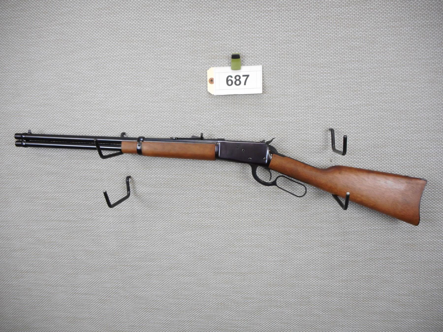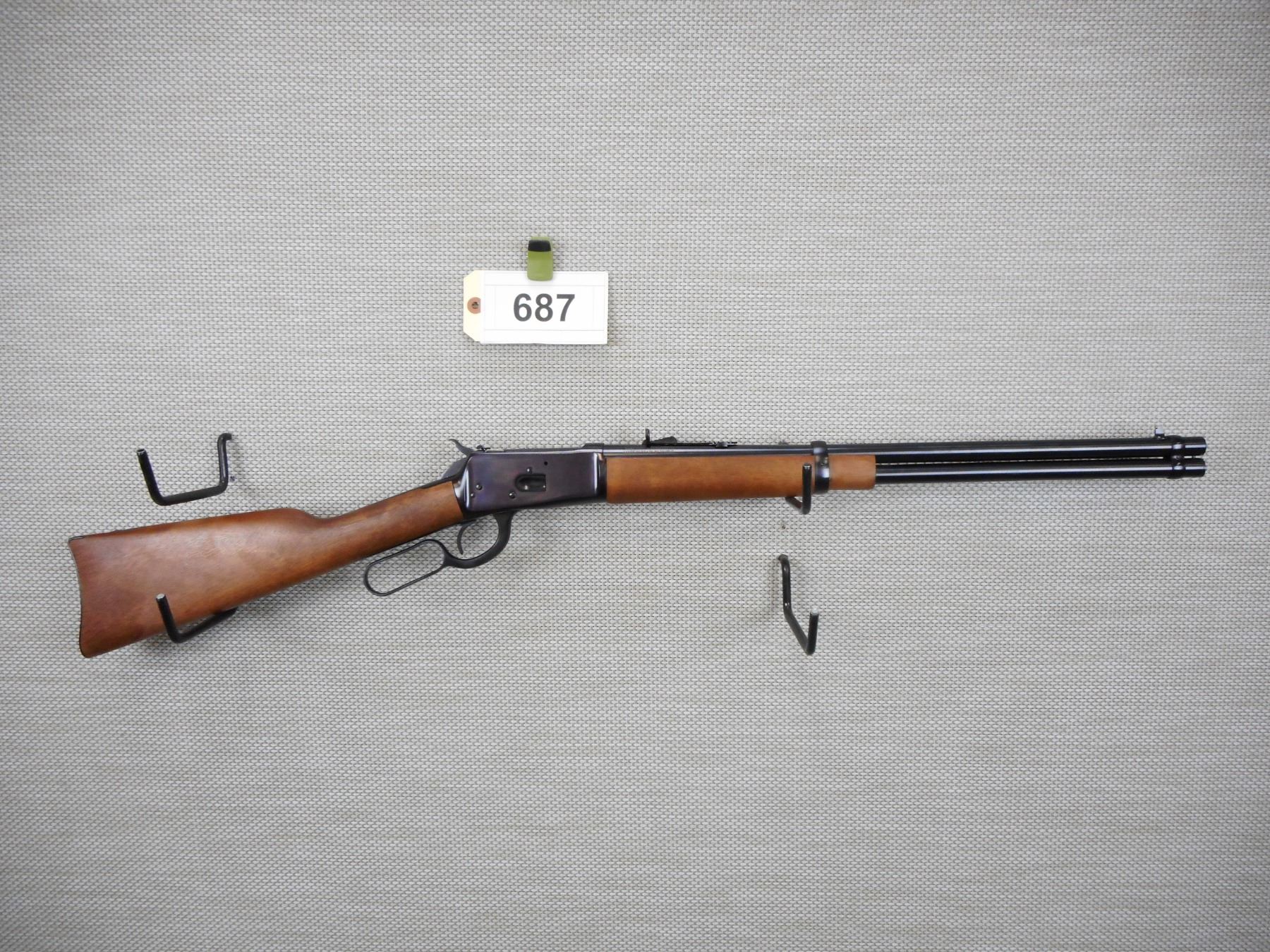 ROSSI , MODEL: R-92 , CALIBER: 44 MAGNUM , EXCELLENT BORE, BLADE FRONT AND ADJUSTABLE REAR SIGHTS, SHOWS VERY LITTLE HANDLING MARKS, STEEL BUTT PLATE, WALNUT STRAIGHT GRIP STOCK , ACTION: LEVER ACTION RIFLE , BARREL LENGTH:20" , CONDITION: 7/10 , SERIAL # 5H0151257 , CANADIAN CLASS NON RESTRICTED
