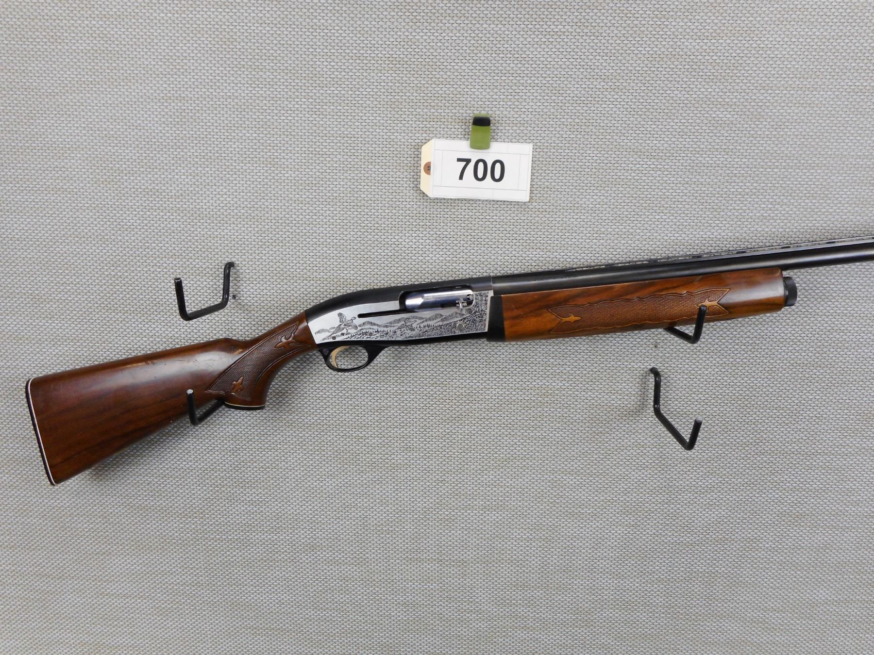 ITHACA , MODEL: SKB XL900 , CALIBER: 12GA X 2 3/4" , FIXED FULL CHOKE, FIBEROPTIC FRONT AND BRASS MID BEAD SIGHTS, VENTED RIB BARREL, BORE IS VERY GOOD, CHECKERED FOREND AND CAPPED PISTOL GRIP BUTT STOCK, PLASTIC BUTT PLATE, GAME SCENE ENGRAVED RECEIVER, SHOWS SOME HANDLING MARKS , ACTION: SEMI AUTOMATIC SHOTGUN , BARREL LENGTH:30" , CONDITION: 6/10 , SERIAL # S1966066 , CANADIAN CLASS NON RESTRICTED