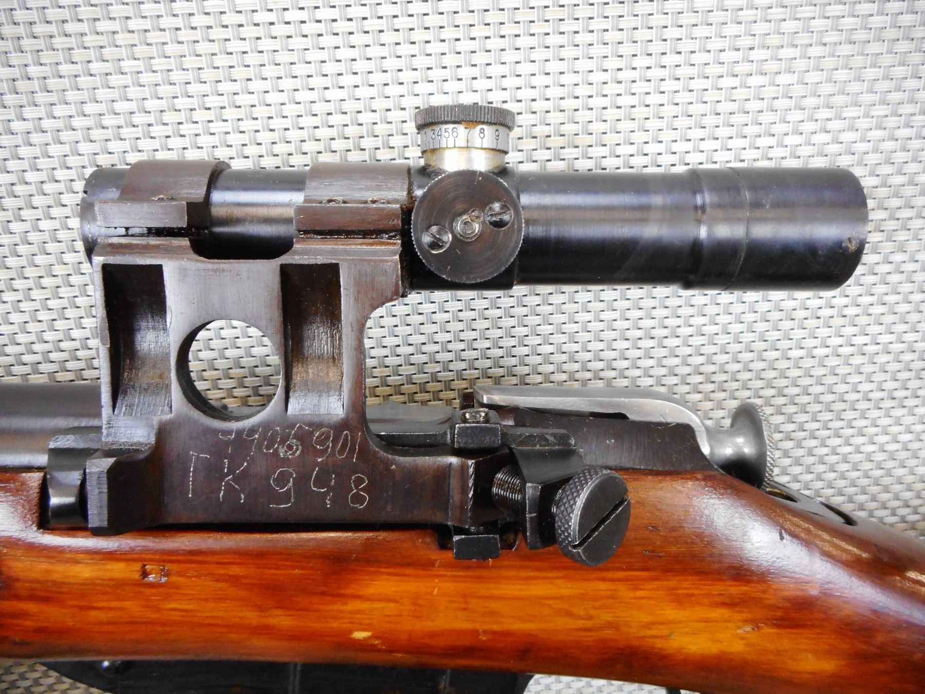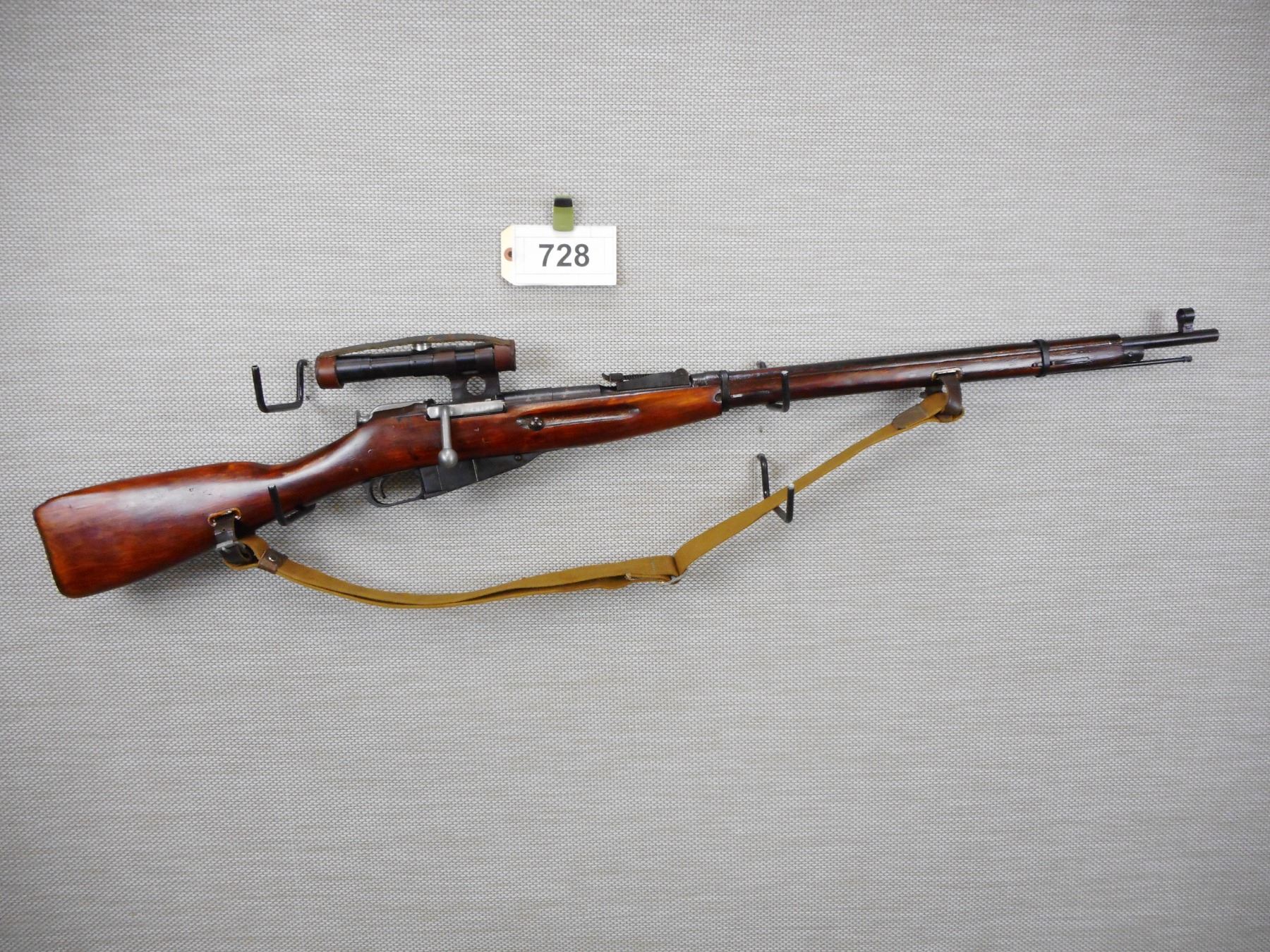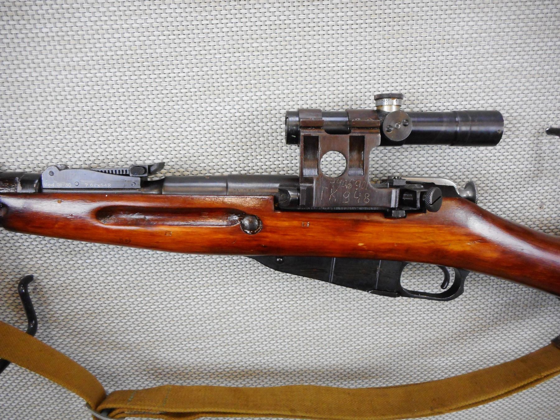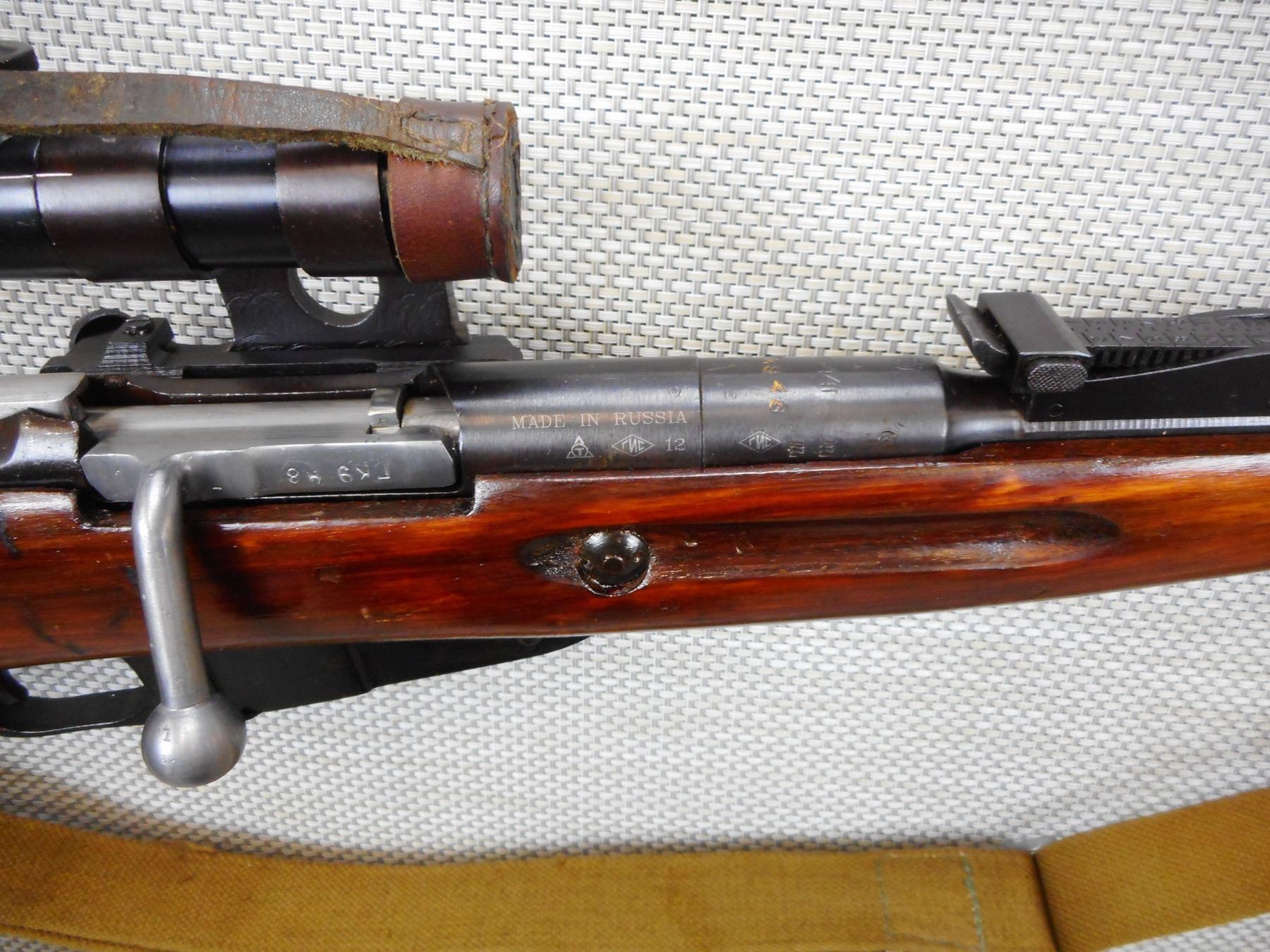 WWII ERA, MOSIN NAGANT , MODEL: 91/30 SNIPER , CALIBER: 7.62 X 54R , DATED 1944, BORE IS VERY BORE, BOLT AND RECEIVER MATCH BY SERIAL # , TULA ARSENAL, HAS ORIGNAL MILITARY SCOPE, HOODED FRONT AND ADJUSTABLE REAR SIGHTS, ORIGINAL CANVAS AND LEATHER SLING, STEEL BUTT PLATE, SHOWS SOME HANDLING MARKS , ACTION: BOLT ACTION RIFLE , BARREL LENGTH:29" , CONDITION: 7/10 , SERIAL # RK948 , CANADIAN CLASS NON RESTRICTED