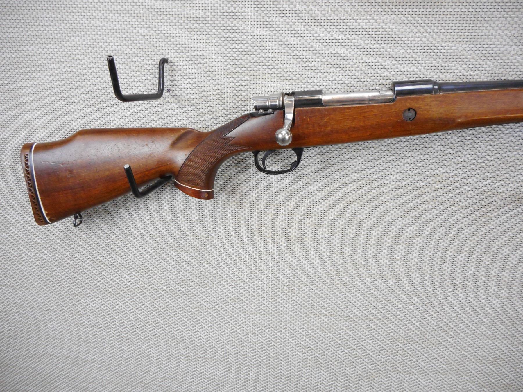 PARKER HALE , MODEL: M98 COMMERCIAL , CALIBER: 30-06 SPRG , VERY GOOD BORE, BLADE FRONT AND ADJUSTABLE REAR SIGHTS, DRILLED AND TAPPED FOR SCOPE MOUNTS, CHECKERED CAPPED PISTOL GRIP BUTT STOCK WITH RAISED CHEEK PIECE, VENTED RUBBER RECOIL PAD, SHOWS SOME HANDLING MARKS , ACTION: BOLT ACTION RIFLE , BARREL LENGTH:24" , CONDITION: 5/10 , SERIAL # S03952 , CANADIAN CLASS NON RESTRICTED