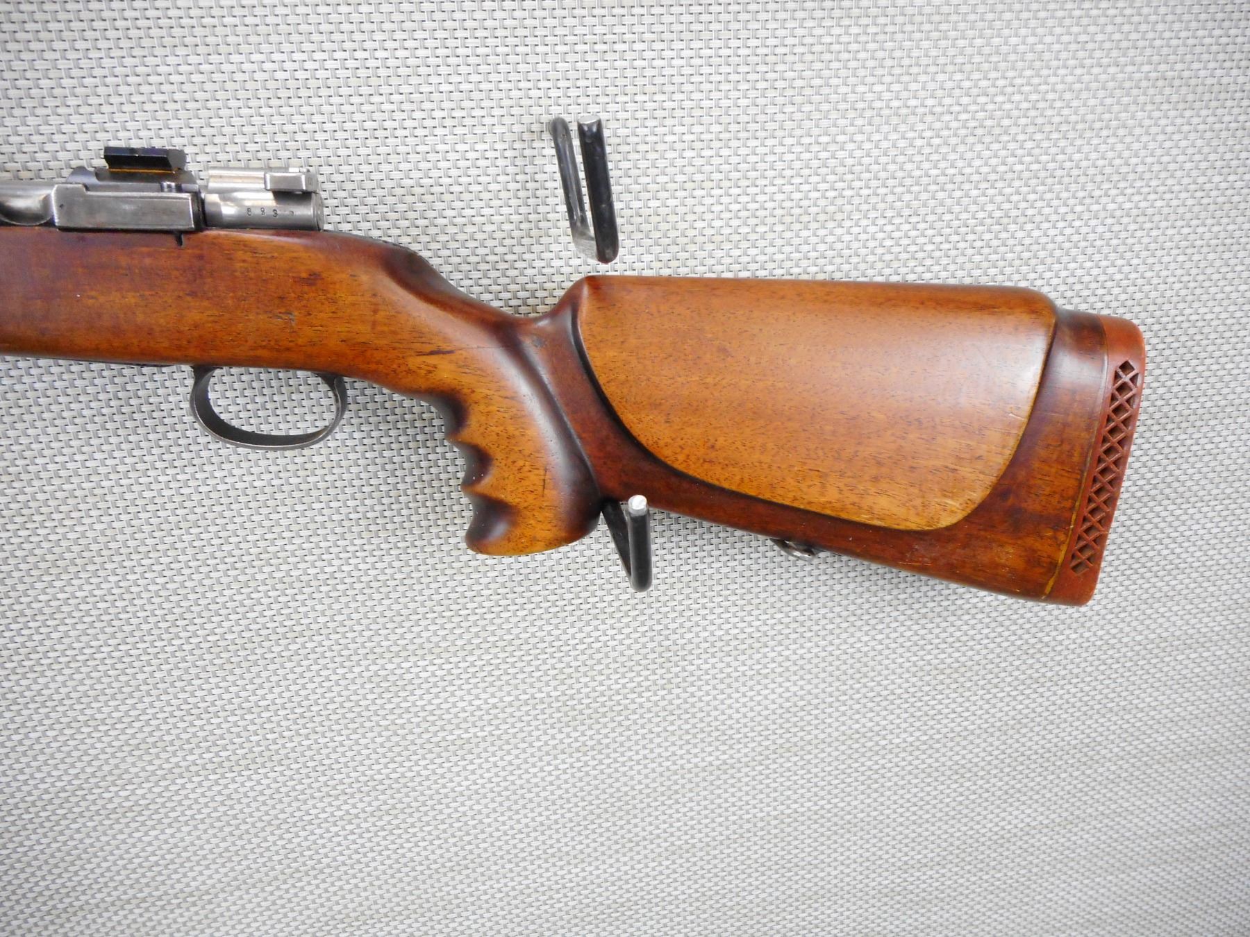 MAUSER , MODEL: M96 , CALIBER: 6.5 X 55 SWEDISH MAUSER , DOES NOT HAVE A TRIGGER, MATCHING BOLT AND RECEIVER BY SERIAL #, GOOD BORE, SLING SWIVEL STUDS, FULL PISTOL GRIP BUTT STOCK WITH VENTED RUBBER RECOIL PAD, CRACK IN THE WRIST , ACTION: BOLT ACTION RIFLE , BARREL LENGTH:24" , CONDITION: 4/10 , SERIAL # 300823 , CANADIAN CLASS NON RESTRICTED