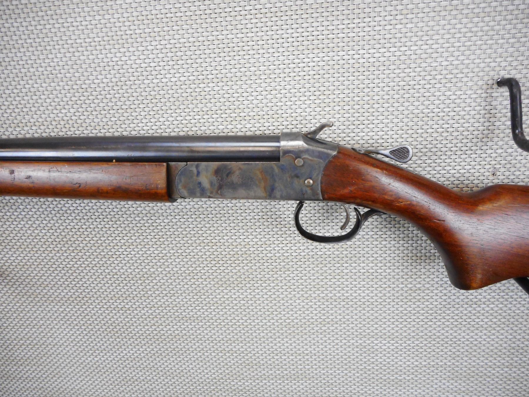 RANGER , MODEL: RANGER , CALIBER: 12GA X 3" , FIXED FULL CHOKE, BORE IS VERY GOOD, BEAD FRONT SIGHT, PLAIN WOOD STOCK, PLASTIC BUTT PLATE, SHOWS SOME HANDLING MARKS, CASE HARDENED RECEIVER FRAME , ACTION: SINGLE SHOT BREAK ACTION SHOTGUN , BARREL LENGTH:30" , CONDITION: 6/10 , SERIAL # 21554 , CANADIAN CLASS NON RESTRICTED