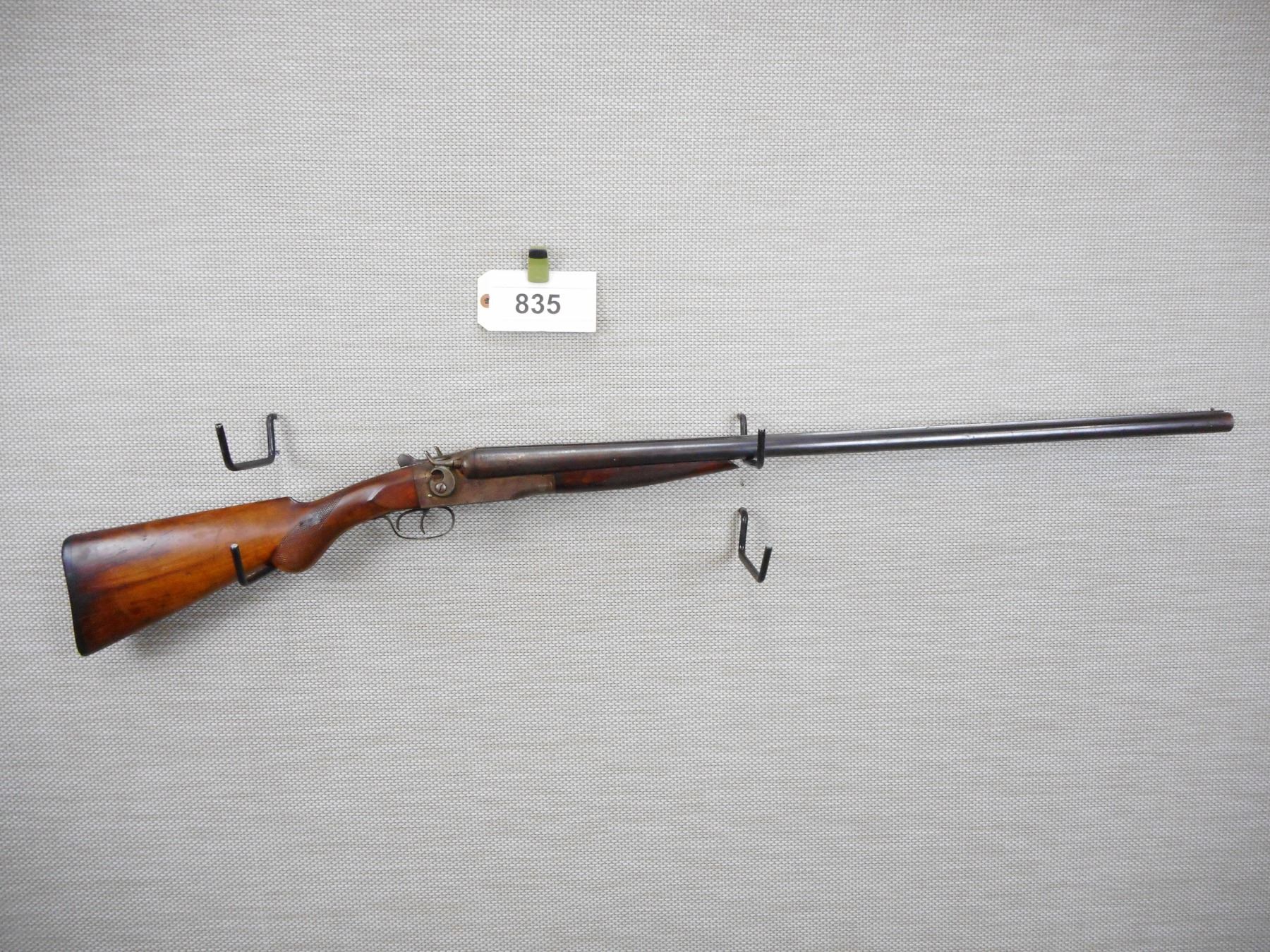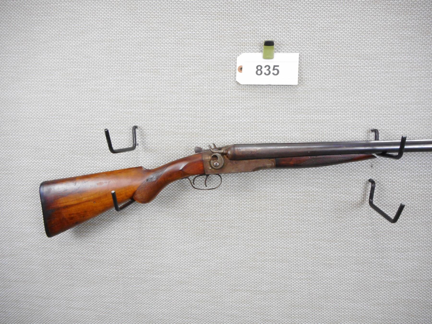 STEVENS , MODEL: 235 , CALIBER: 12GA X 2 3/4" , FIXED FULL AND MODIFIED CHOKES, BORES ARE GOOD, EXTERNAL HAMMERS, BEAD FRONT SIGHT ON A SOLID RIB BARREL, CHECKERED FOREND AND SEMI PISTOL GRIP BUTT STOCK WITH PLASTIC BUTT PLATE, STOCK IS CRACKED AT THE TOE, SHOWS EXTENSIVE HANDLING MARKS , ACTION: SIDE BY SIDE BREAK ACTION SHOTGUN , BARREL LENGTH:30" , CONDITION: 4/10 , SERIAL # 69846 , CANADIAN CLASS NON RESTRICTED