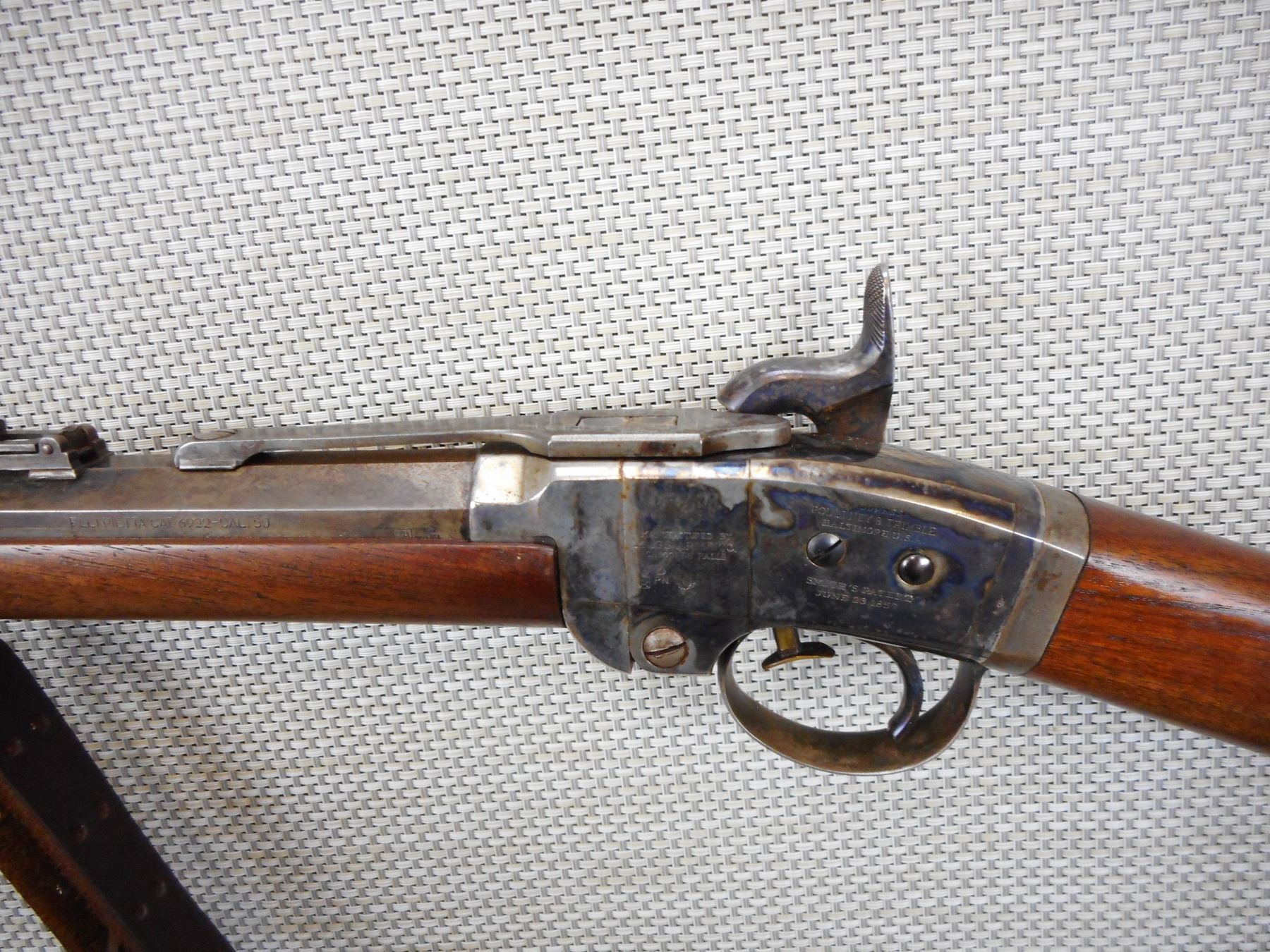 PIETTA , MODEL: SMITH CARBINE , CALIBER: 50 CAL PERC , EXCELLENT BORE, BLADE FRONT AND ADJUSTABLE REAR SIGHTS, COLOUR CASE HARDENED RECEIVER AND HAMMER, STRAIGHT GRIP BUTT STOCK WITH STEEL BUTT PLATE, SLING SWIVELS WITH LEATHER SLING, SHOWS VERY LITTLE HANDLING MARKS , ACTION: BREAK ACTION , BARREL LENGTH:21 1/2" , CONDITION: 7/10 , SERIAL # 6922 , CANADIAN CLASS NON RESTRICTED