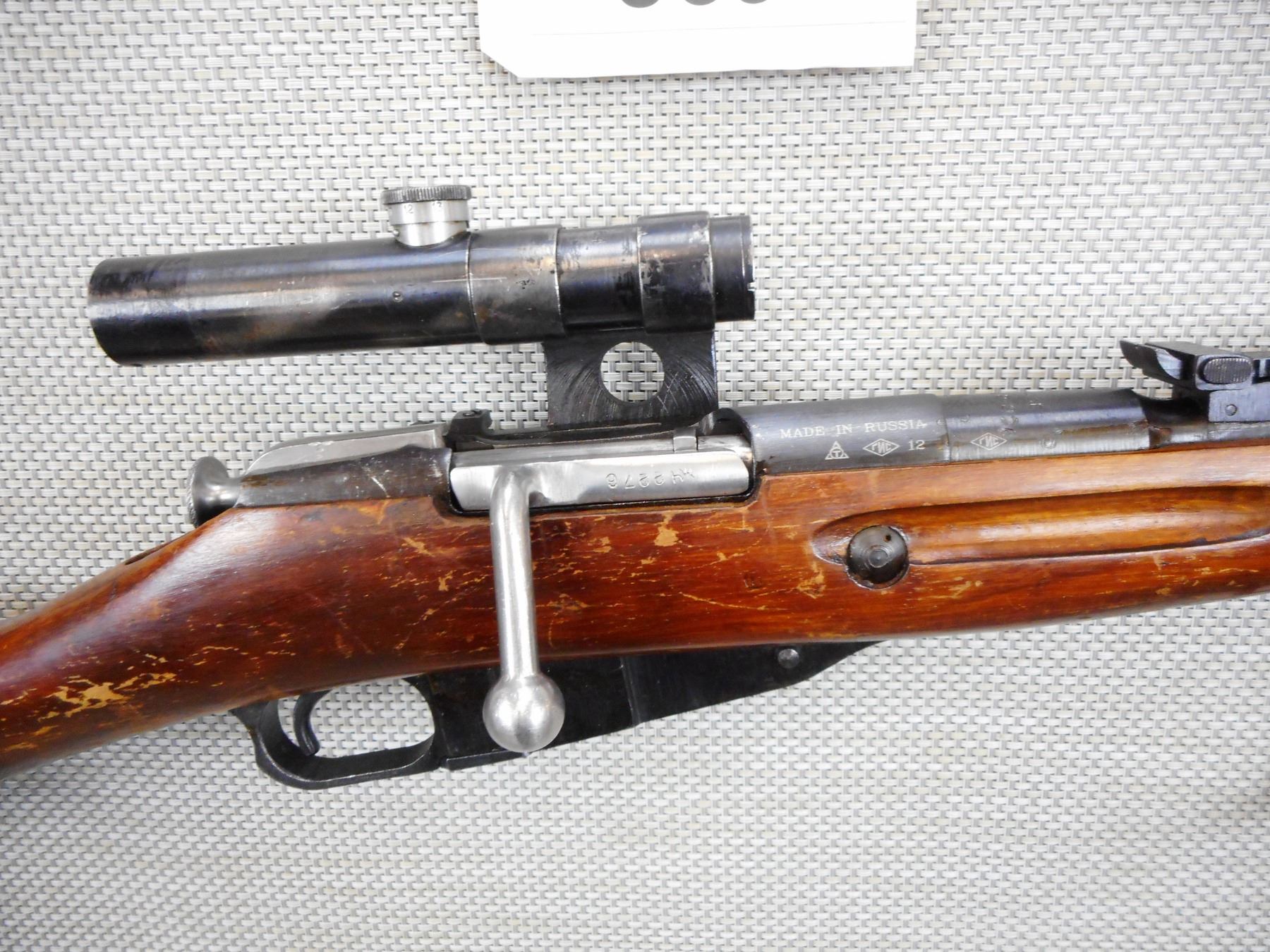 WWII ERA, MOSIN NAGANT , MODEL: 91/30 SNIPER , CALIBER: 7.62 X 54R , DATED 1943, IZSVESK ARESENAL, BOLT AND RECEIVER DON'T MATCH BY SERIAL #, BORE IS GOOD, HOODED FRONT AND ADJUSTABLE REAR SIGHT, FEATURES AN ORIGINAL PU SNIPER SCOPE, SHOWS SOME HANDLING MARKS, STEEL BUTT PLATE , ACTION: BOLT ACTION RIFLE , BARREL LENGTH:29" , CONDITION: 6/10 , SERIAL # 42276 , CANADIAN CLASS NON RESTRICTED