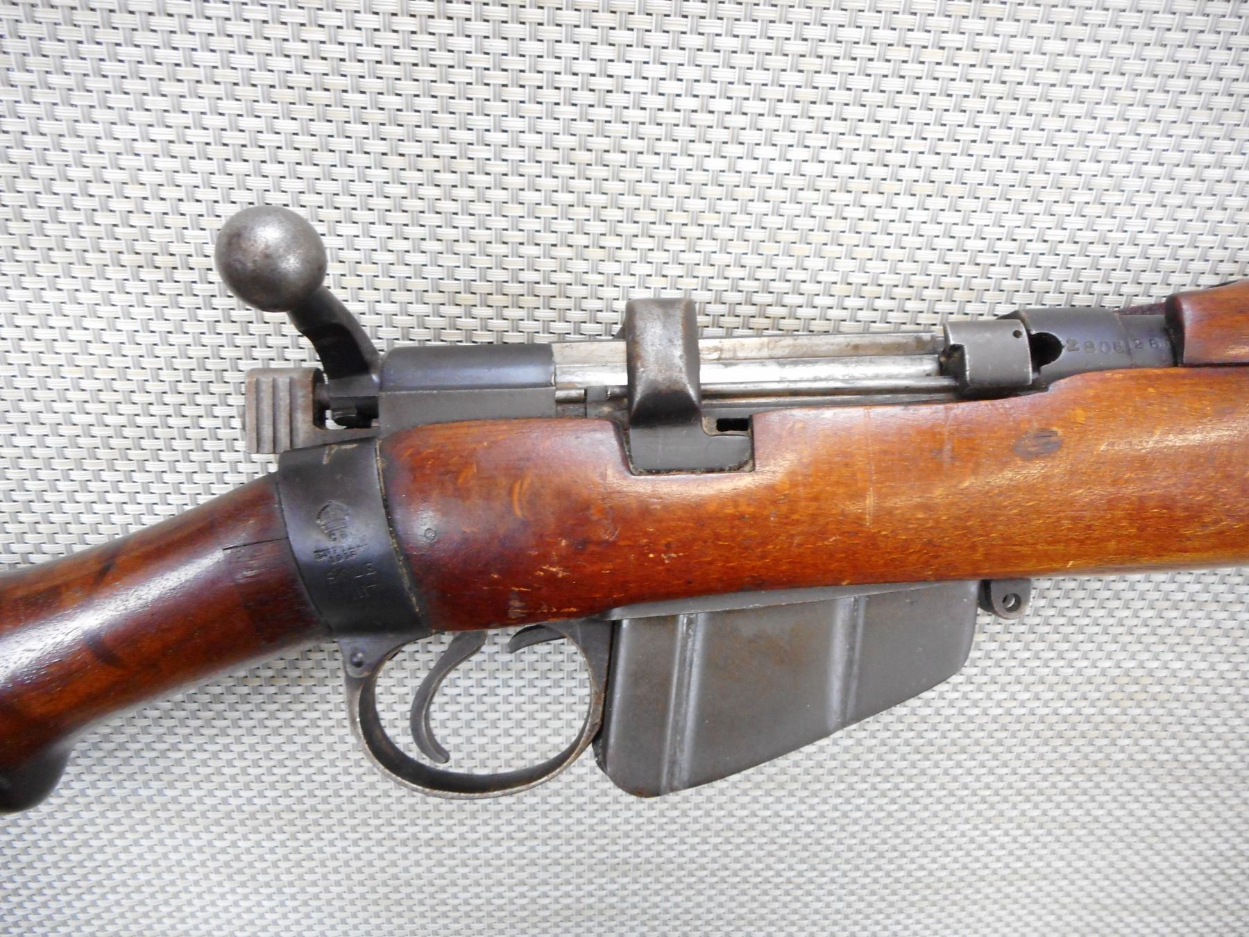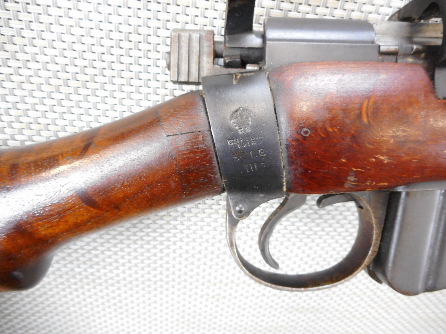 WWI ERA, LEE ENFIELD , MODEL: MKIII* SPORTER , CALIBER: 303 BR , COMES WITH MAGAZINE, VERY GOOD BORE, BOLT AND RECEIVER MATCH BY SERIAL #, DATED 1918, MADE BY ENFIELD, RAMP FRONT AND ADJUSTABLE REAR SIGHT, SLING SWIVEL LOOPS, BRASS BUTT PLATE, SHOWS SOME HANDLING MARKS, STOCK HAS BEEN REPAIRED AT THE WRIST AND THE HEEL, MISSING THE BRASS DISK ON THE BUTT , ACTION: BOLT ACTION RIFLE , BARREL LENGTH:25" , CONDITION: 5/10 , SERIAL # 2806 , CANADIAN CLASS NON RESTRICTED