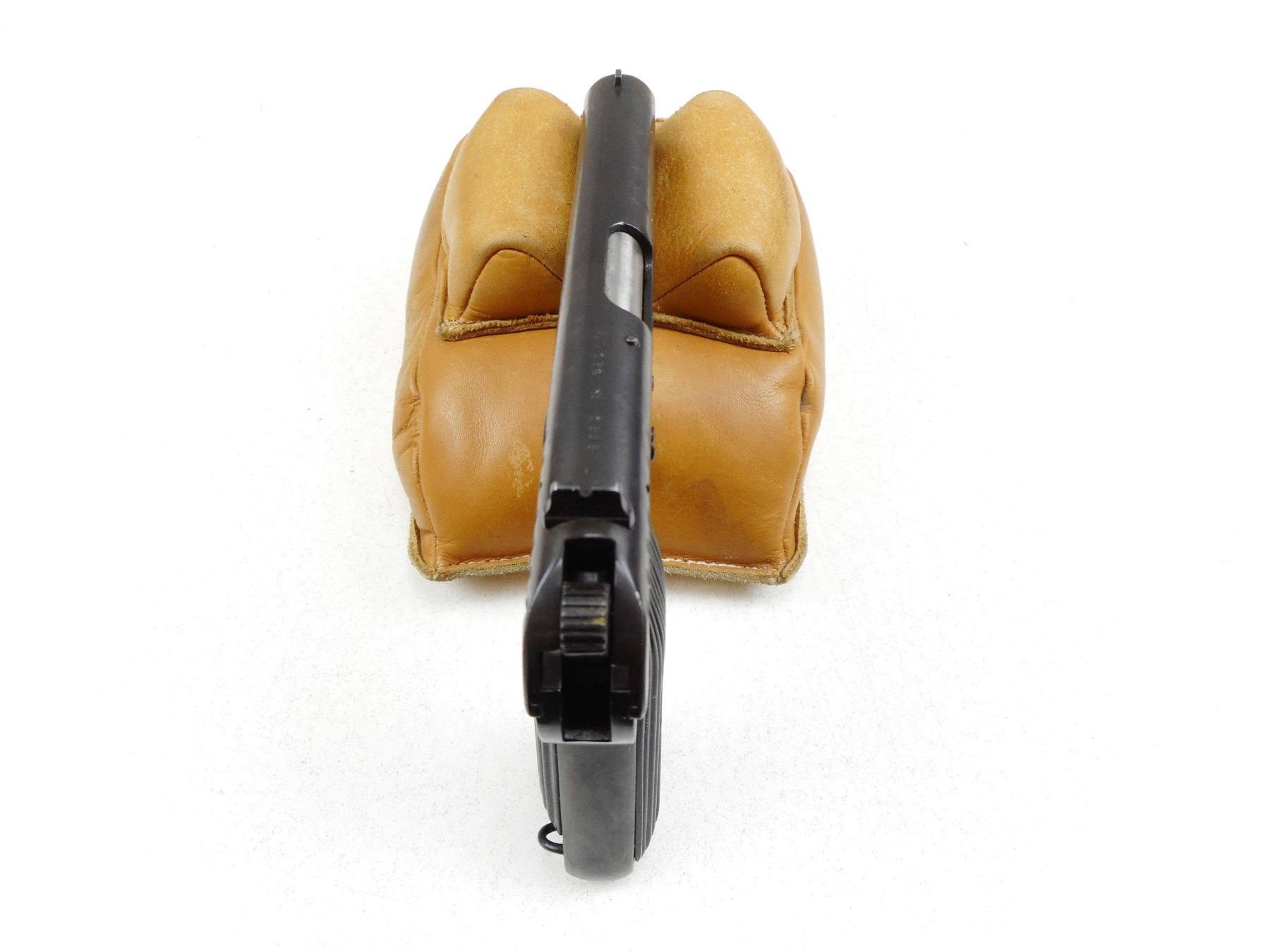 TOKAREV , MODEL: TT33 , CALIBER: 7.62MM TOKAREV , COMES WITH MAGAZINE AND HOLSTER WITH CLEANING TOOL, RSA TULA, DATED 1938, MATCHING SLIDE AND RECEIVER BY SERIAL #, PLASTIC GRIPS WITH CCCP MARKINGS, BLADE FRONT AND FIXED REAR SIGHTS, SHOWS SOME HANDLING MARKS, BORE IS GOOD , ACTION: SEMI-AUTOMATIC HANDGUN , BARREL LENGTH: 115MM , CONDITION: 8/10 , STOCK # R2922 , SERIAL # T174 , CLASS: CANADIAN RESTRICTED CLASS