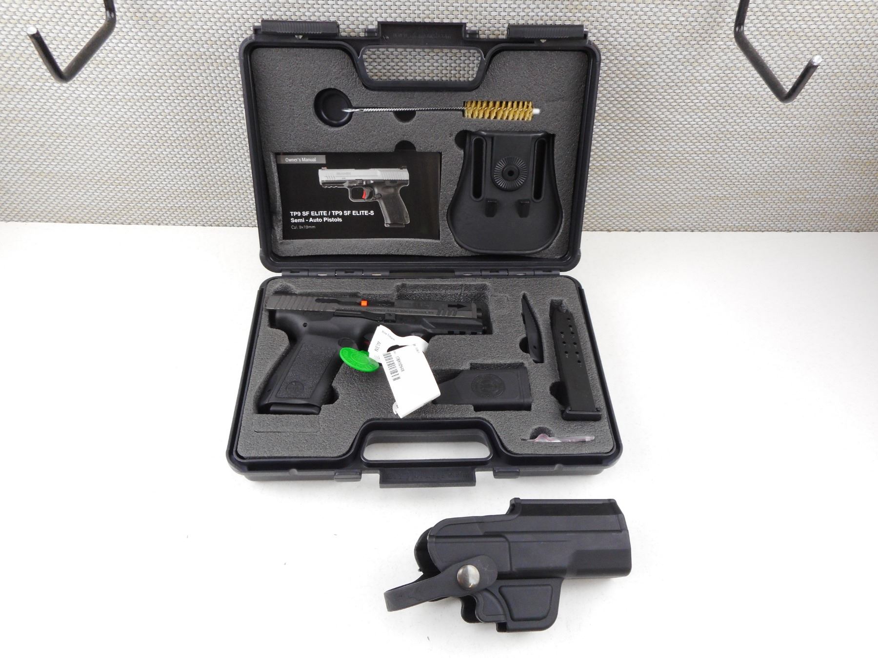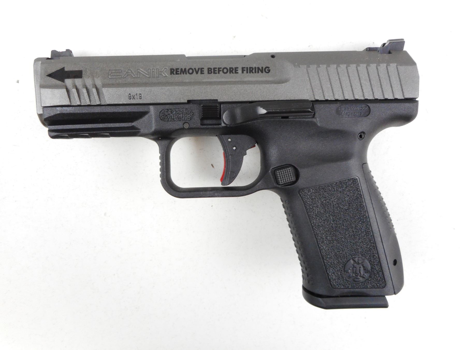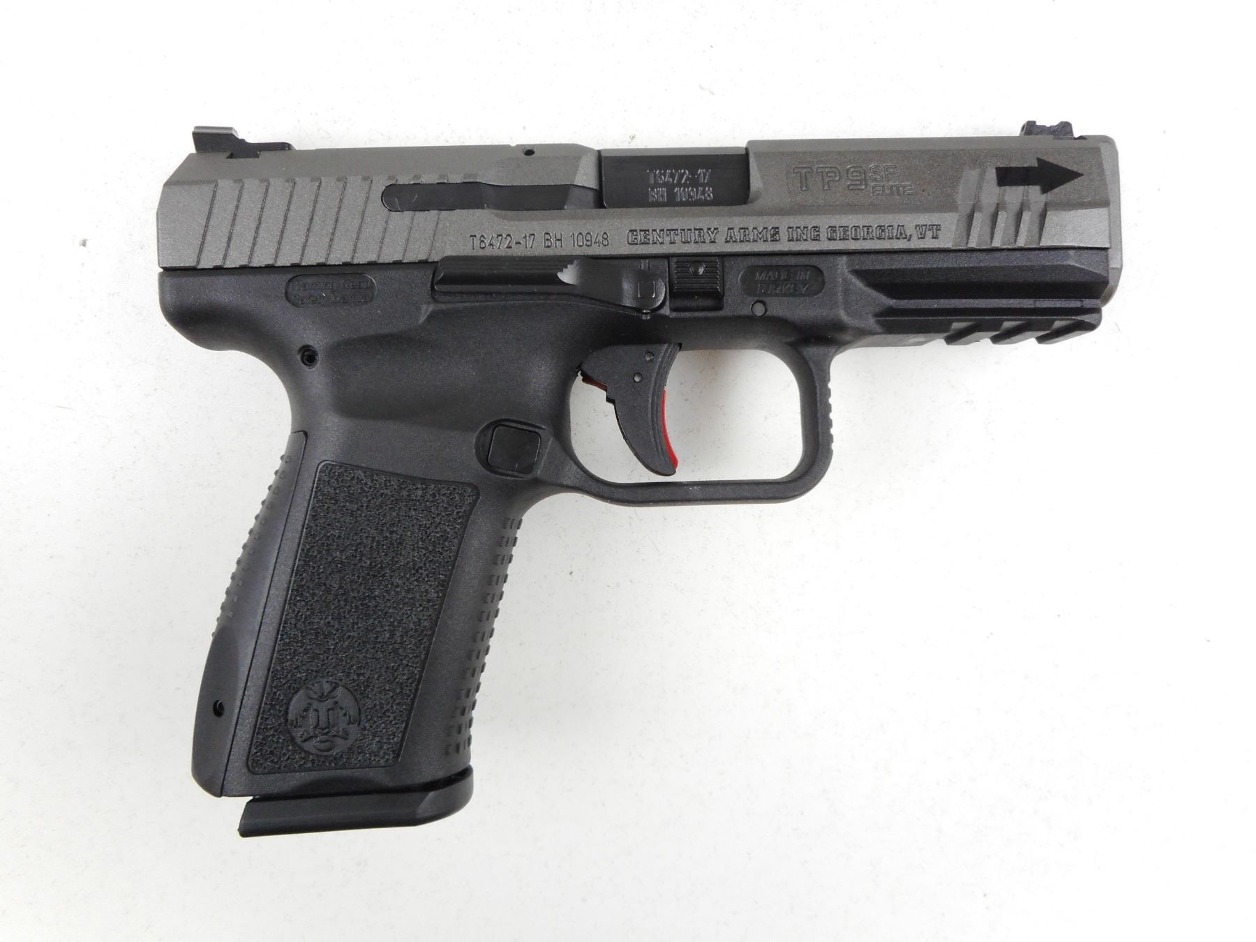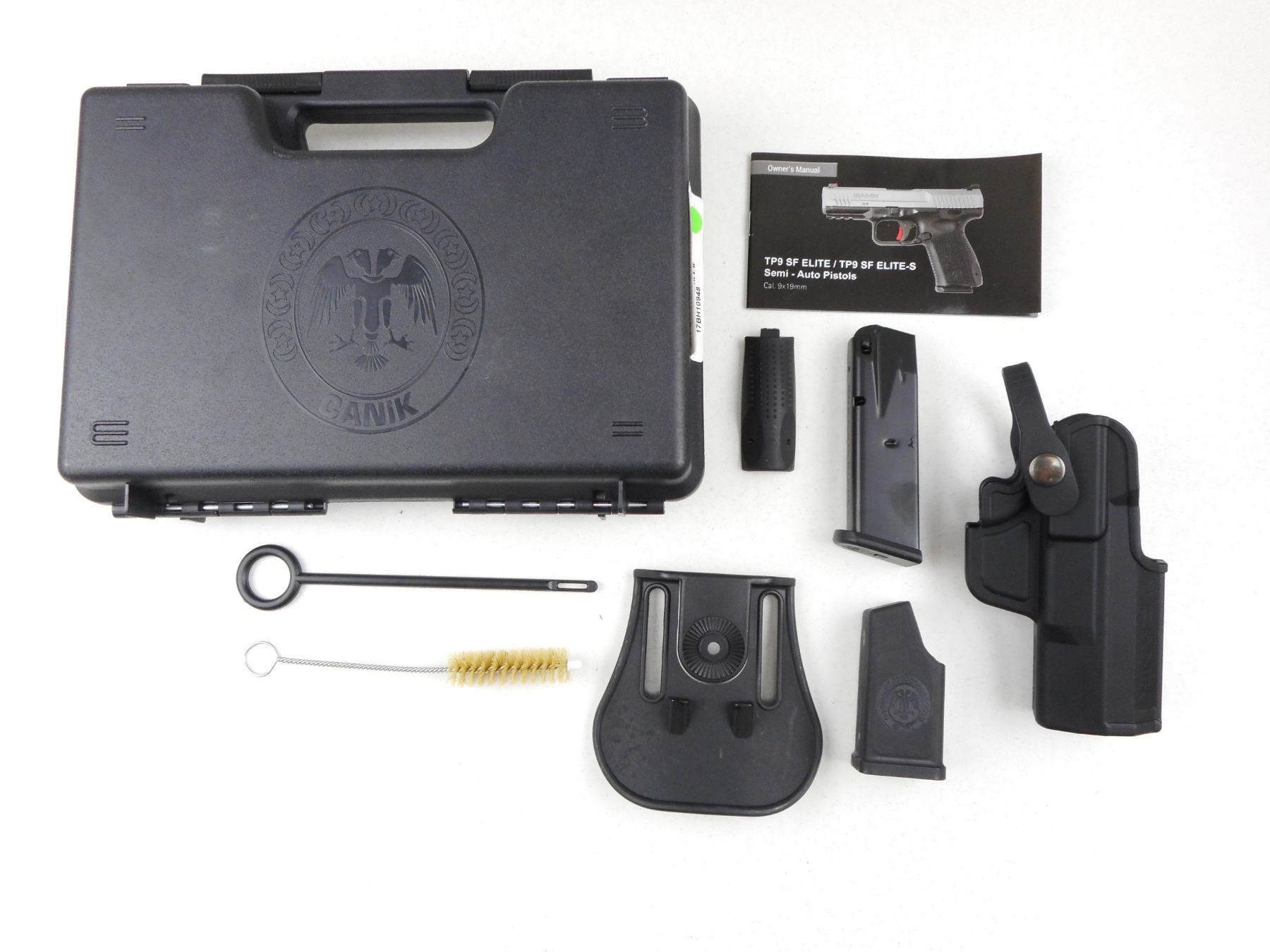 CANIK , MODEL: TP9 SF ELITE , CALIBER: 9MM LUGER , COMES WITH CASE, 2 MAGAZINES, MANUAL, AND ACCESSORY, 10 SHOT CAPACITY, FIBER OPTIC FRONT AND ADJUSTABLE REAR SIGHTS, TEXTURED SYNTHETIC GRIPS, AMBI SLIDE RELEASE, AS NEW , ACTION: SEMI AUTOMATIC HANDGUN , BARREL LENGTH: 114MM , CONDITION: 9/10 , STOCK # R3008 , SERIAL # 17BH10948 , CLASS: CANADIAN RESTRICTED CLASS