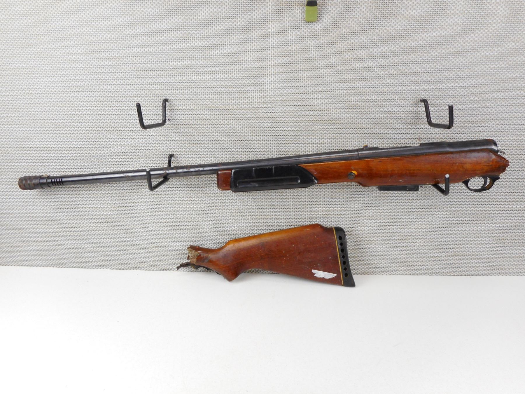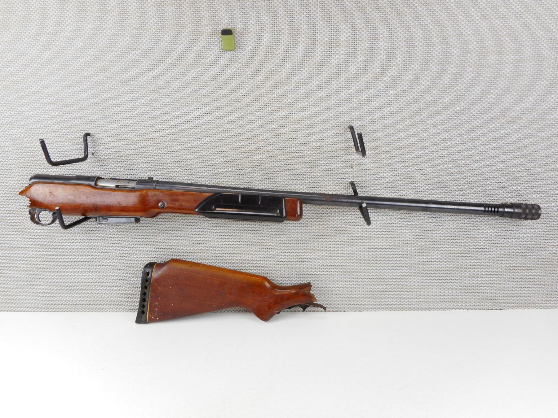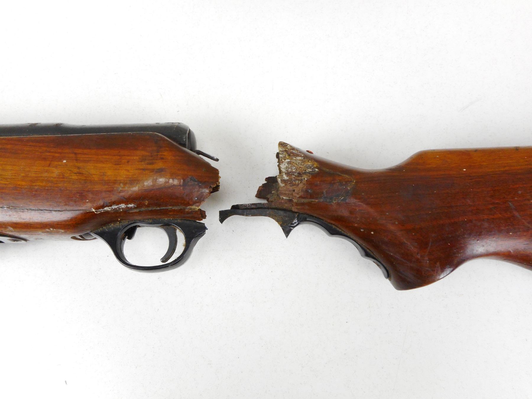 MOSSBERG, MODEL 200K 12GA X 2 3/4", THIS IS COMPTLEY BROKEN AT THE WRIST, COMES WITH MAGAIZNE, PUMP ACTION SHOTGUN, VENTRED RUBBER RECOIL PAD, C-LECT MODEL 12 CHOKE WITH A BEAD FRONT SIGHT, RUSTY FINISH, BORE IS DIRTY, UNSURE IF MISSING OTHER PARTS, CONDITION: PARTS GUN