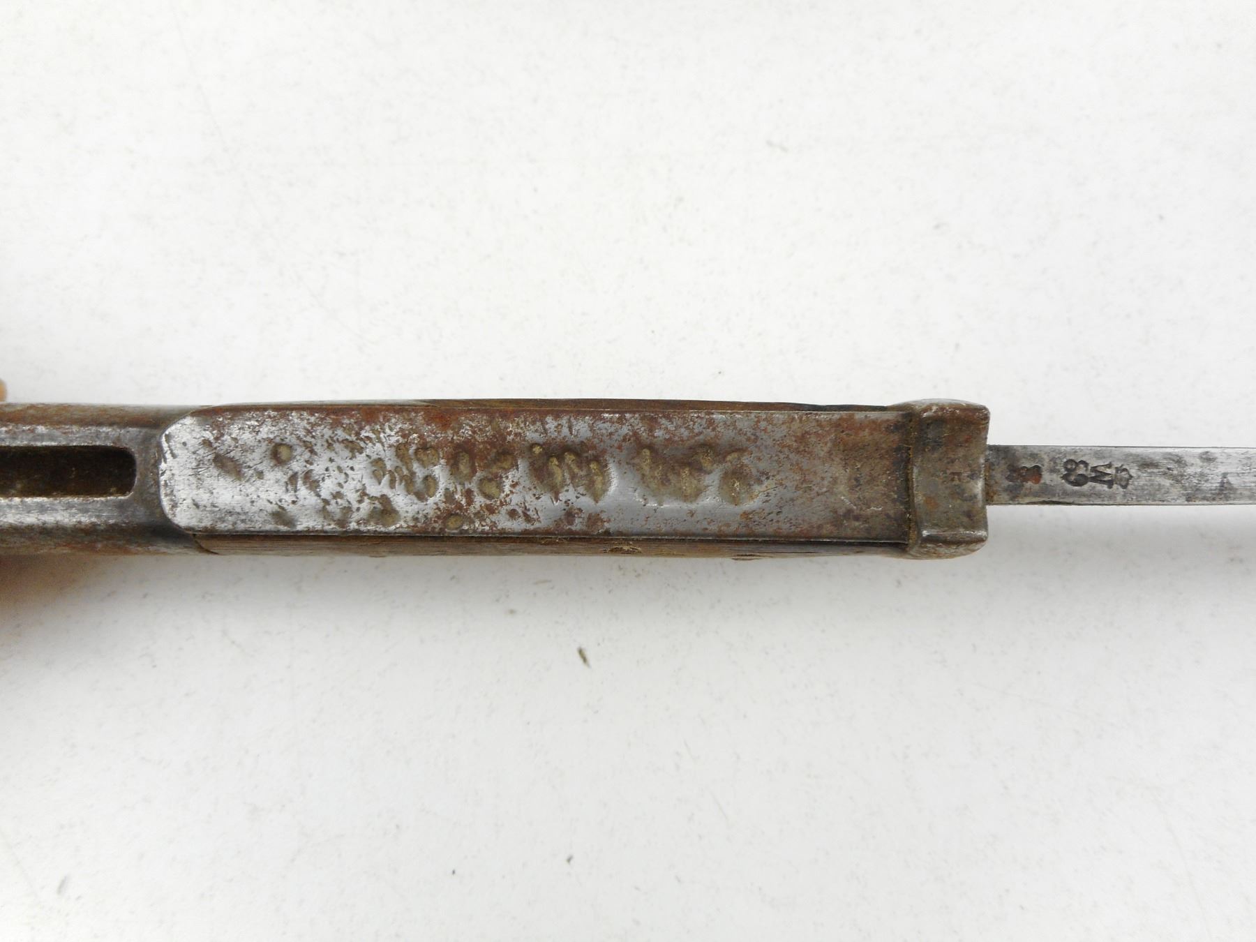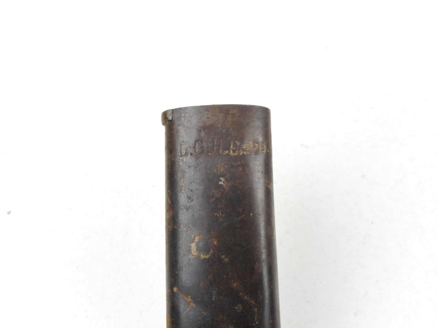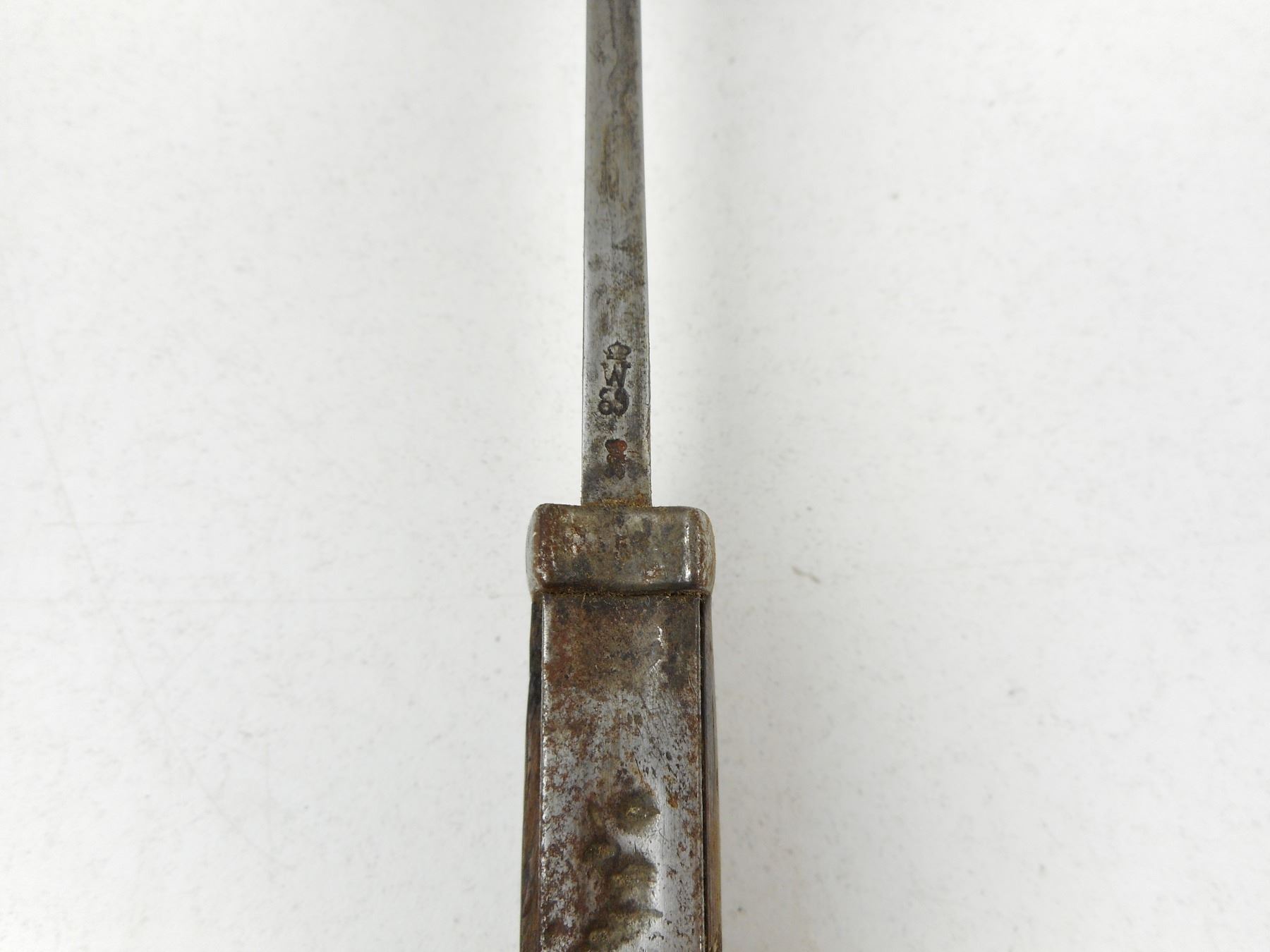GERMAN BAYONET WITH SCABBARD , RICASSO MARKED WEYERSBERG KIRSCHBAUM & CO SOLINGEN, CROSSGUARD & SCABBARD MARKED L.G.H. E.183