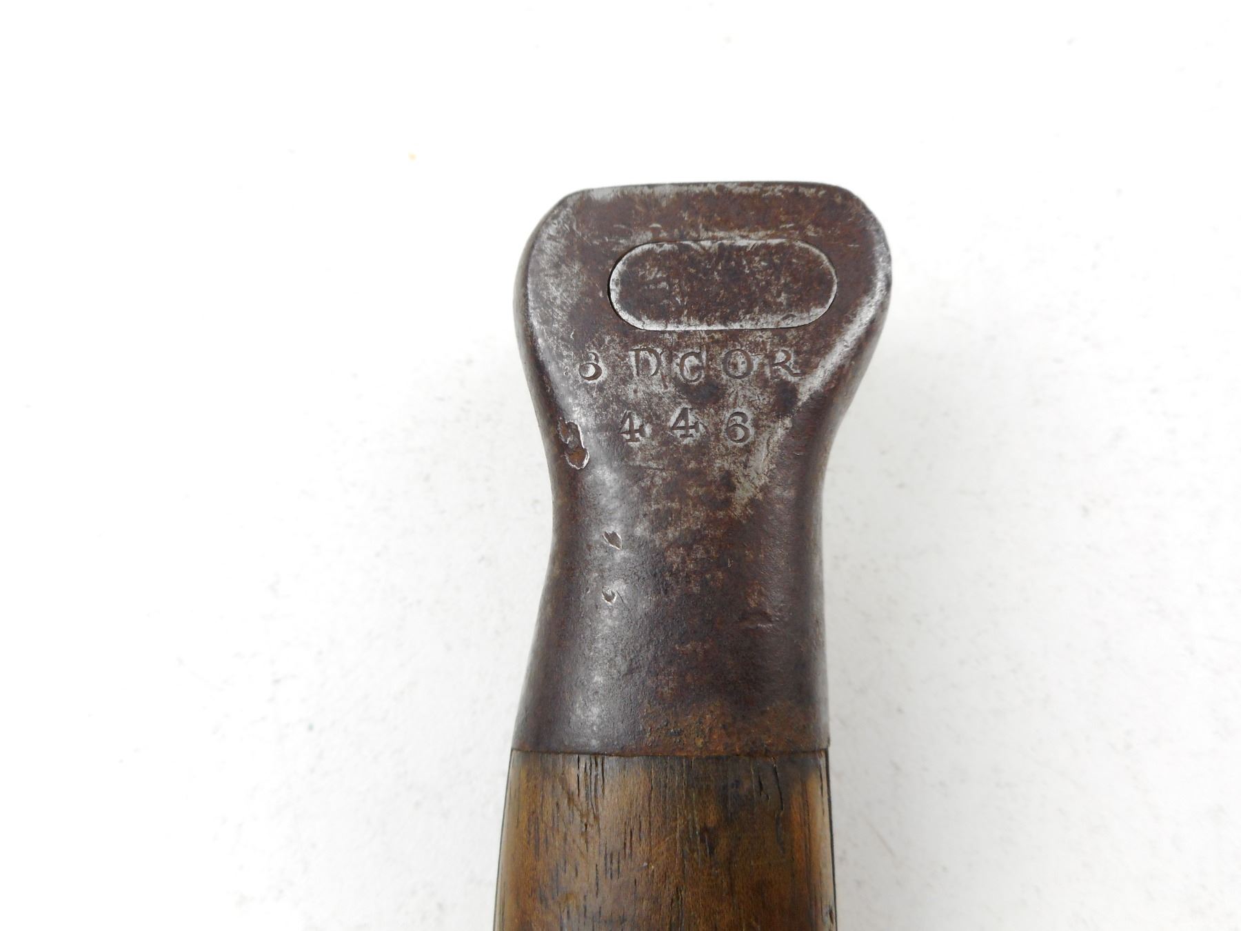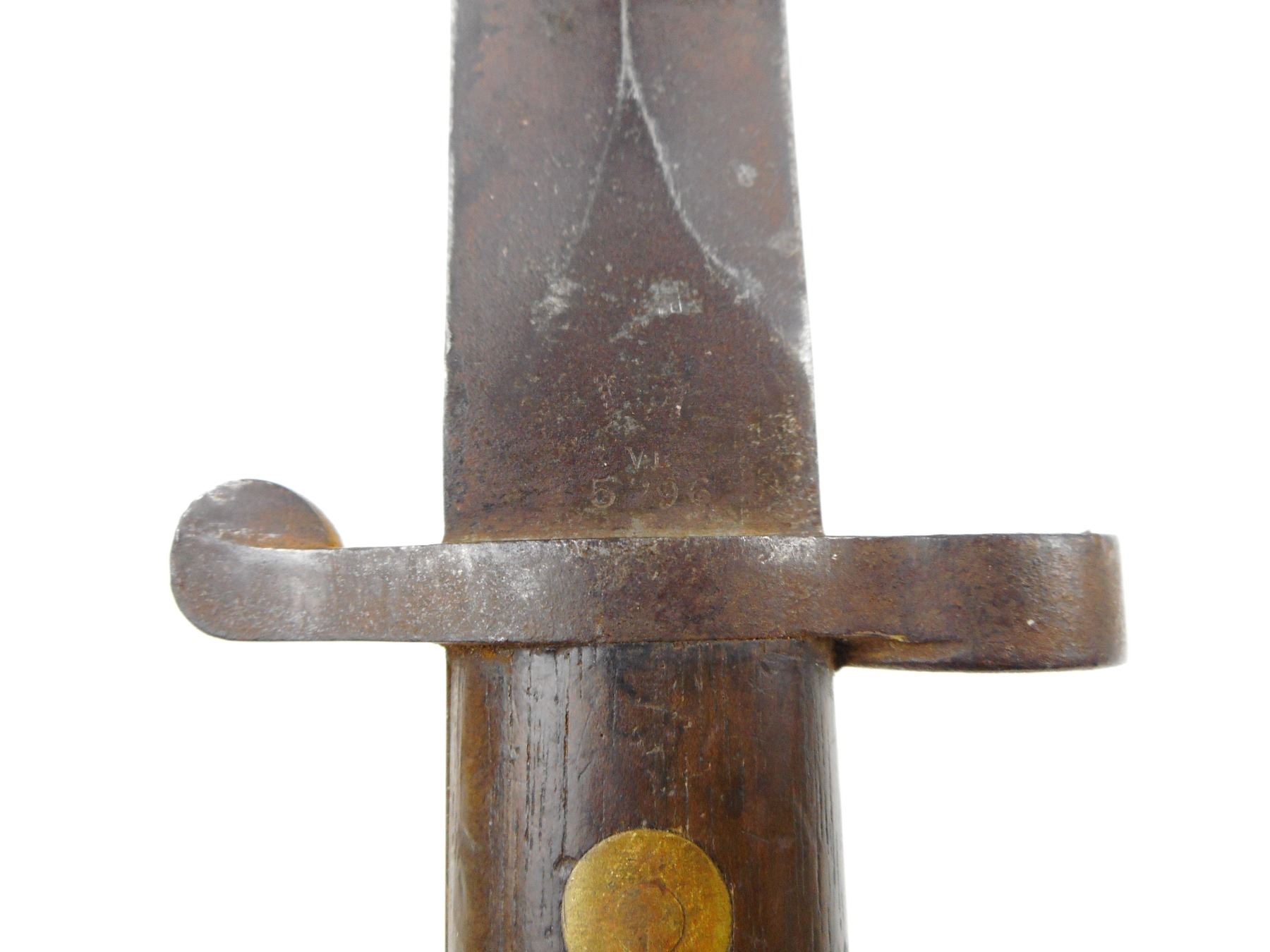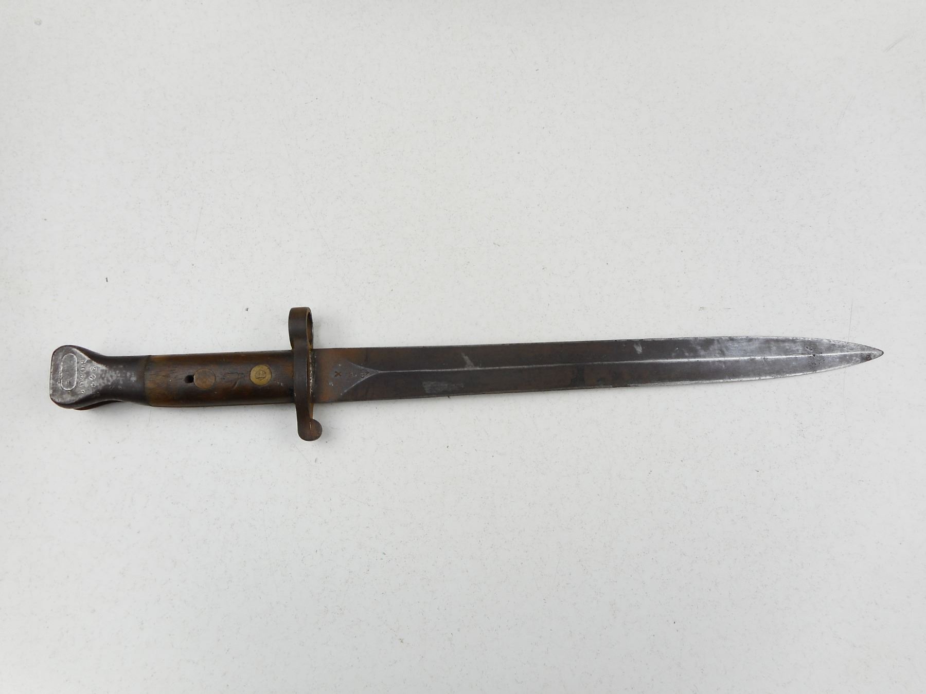 CANADIAN/BRITISH BAYONET , RICASSO MARKED W?D WITH PROOF MARKS, POMMEL IS REGIMENT MARKED 6 D.C.O.R. (DUKE OF CONNAUGHT'S OWN RIFLES, WOODEN GRIPS NO SCABBARD