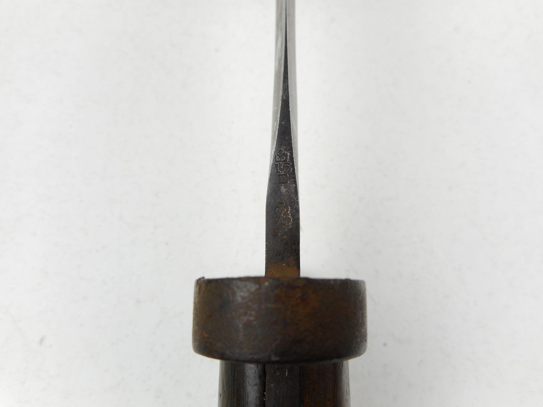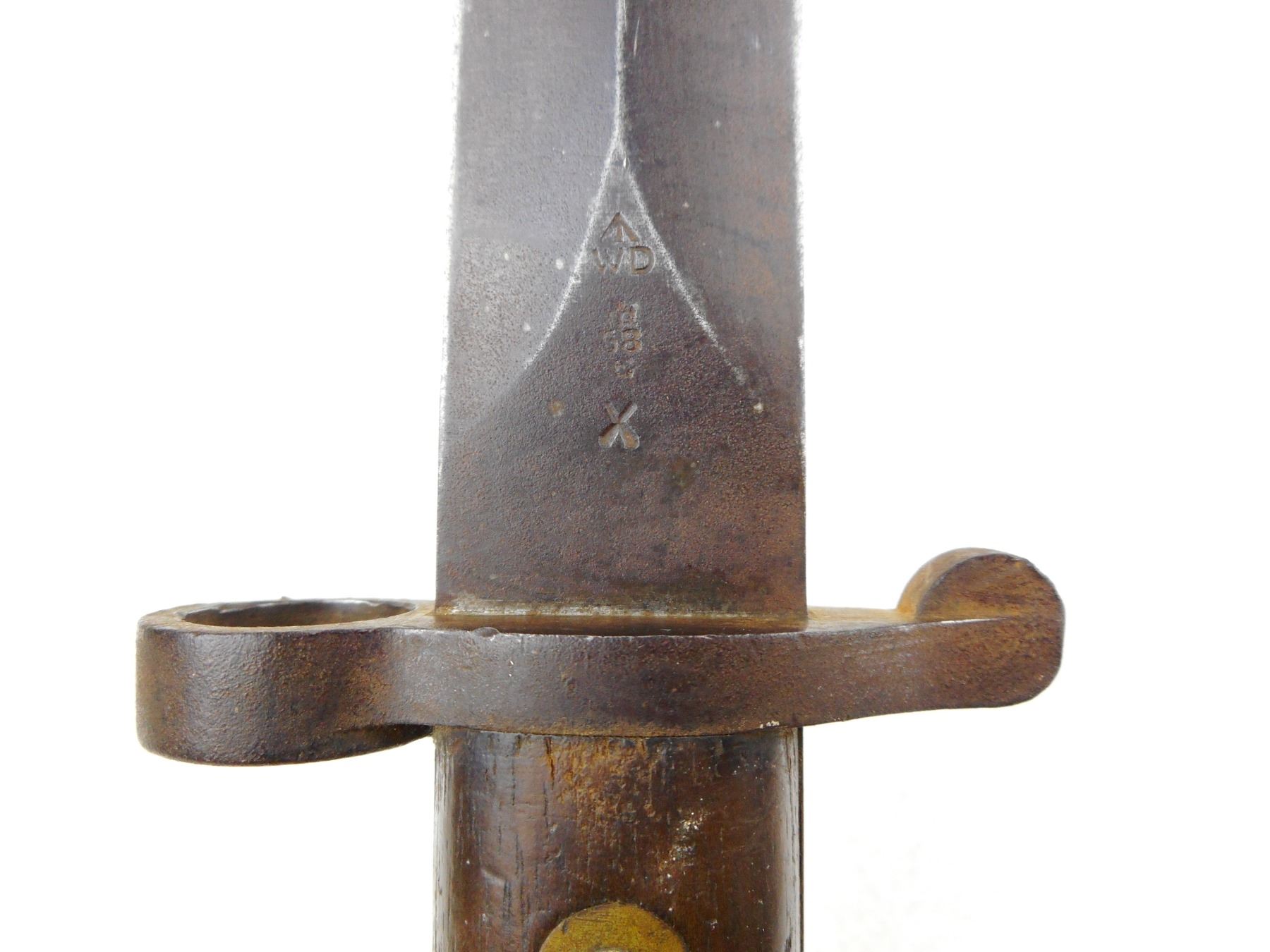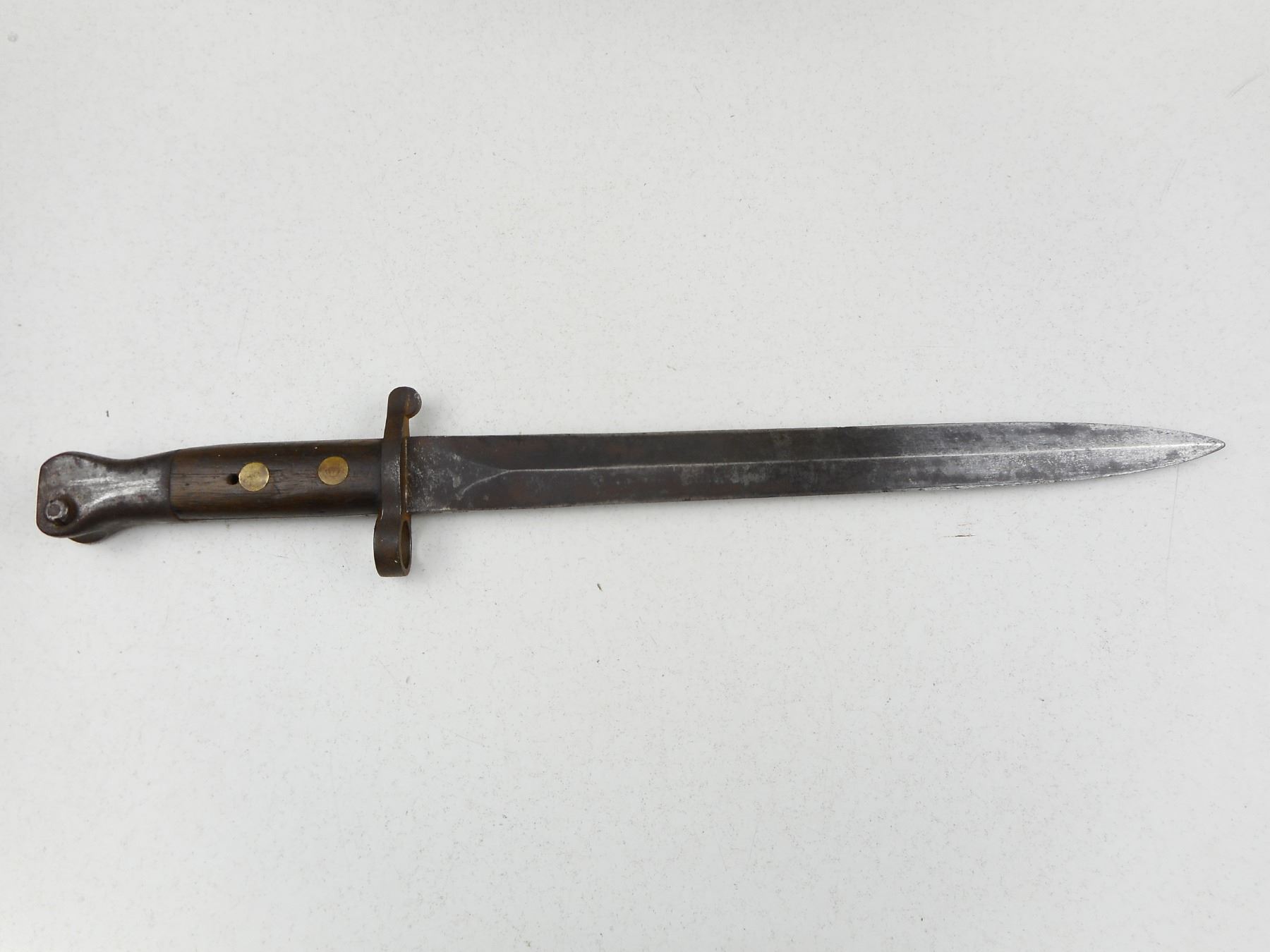 CANADIAN/BRITISH BAYONET , RICASSO MARKED W?D WITH PROOF MARKS, POMMEL IS REGIMENT MARKED 6 D.C.O.R. (DUKE OF CONNAUGHT'S OWN RIFLES, WOODEN GRIPS NO SCABBARD