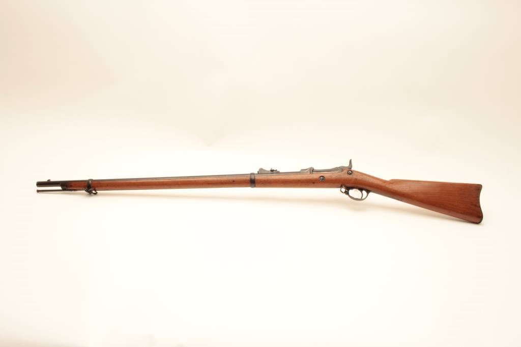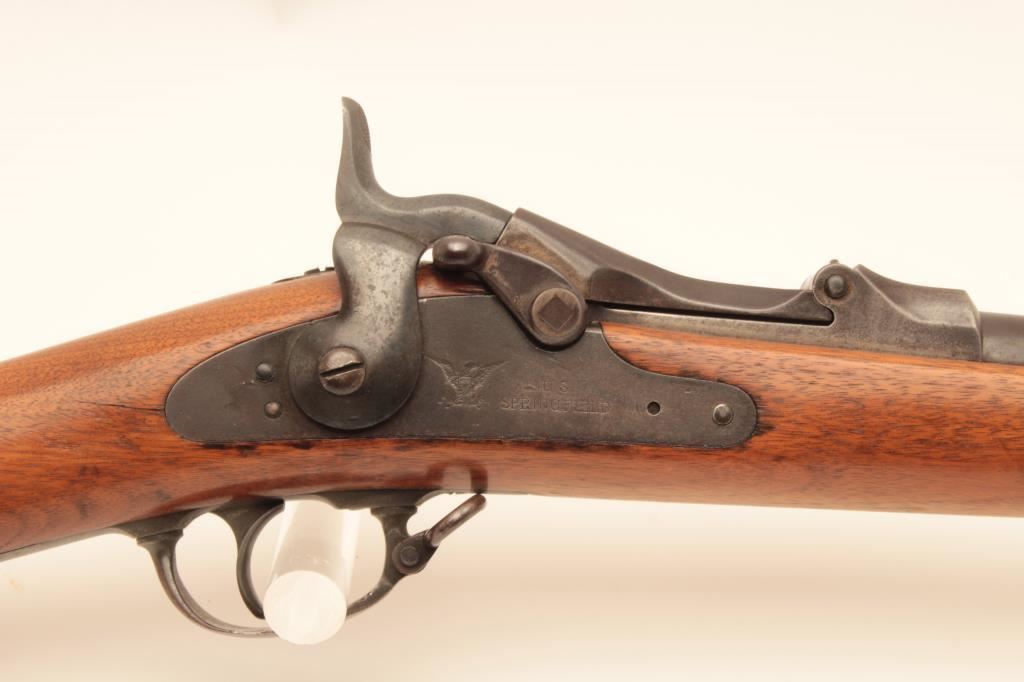 U.S. Springfield Trapdoor rifle, .45-70 caliber, 32.5” barrel, blued finish, sling swivels, iron cleaning rod, wood stock, S/N 150790*; overall very good condition with a very good bore, crisp action, sharp markings and good to very good wood. (Antique). Est.: $500-$1,000.