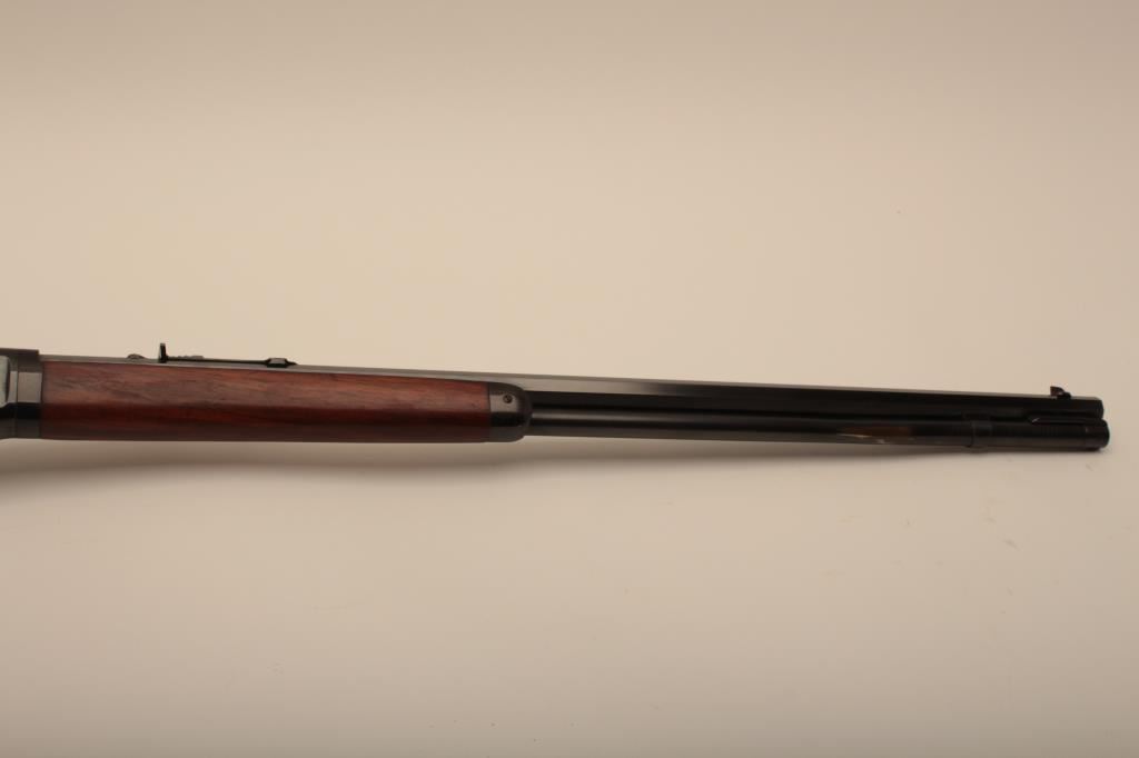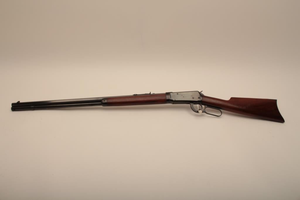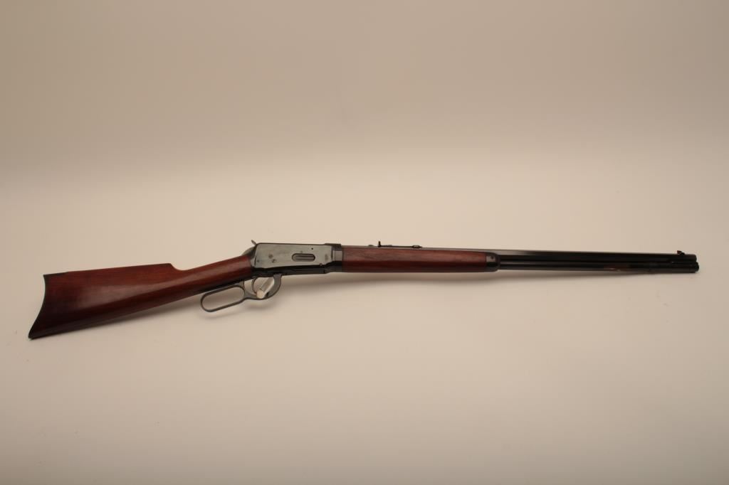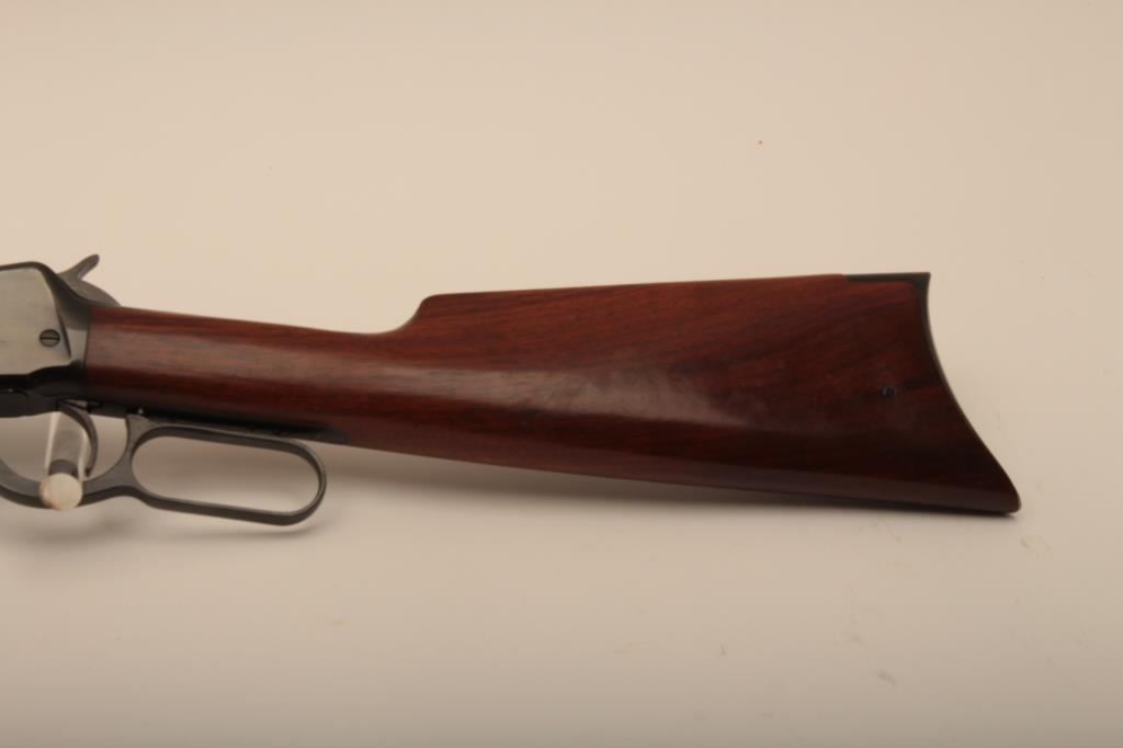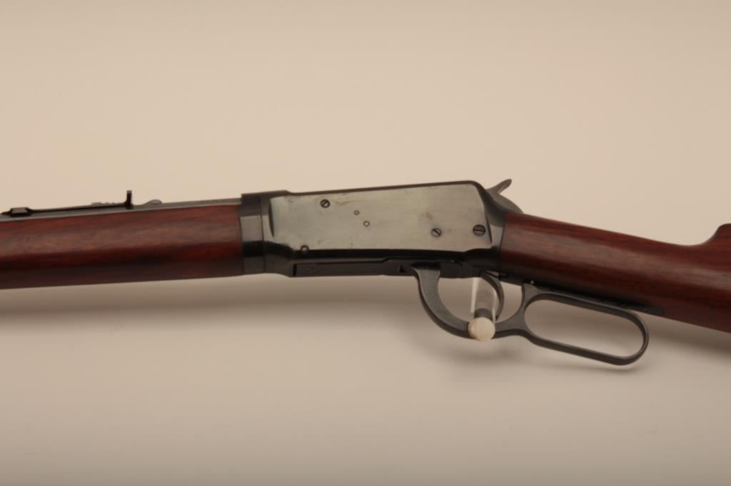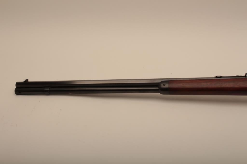 Winchester Model 94 Special Order Takedown rifle in .32 W.S. caliber with 26” octagon barrel, full mag, crescent butt, S/N 750913. The rifle remains in very good plus to almost fine condition with approximately 90%-95% original finish. The magazine tube was dented and restored. The stock has been cleaned but not sanded. The frame on the right side shows minor spots and losses of finish. The fore end cap and some small parts finish has been restored. The interior of the action shows very little use and the bore is bright. A high finish 94 with some “Help” (C&R) Est.: $1500-$3000